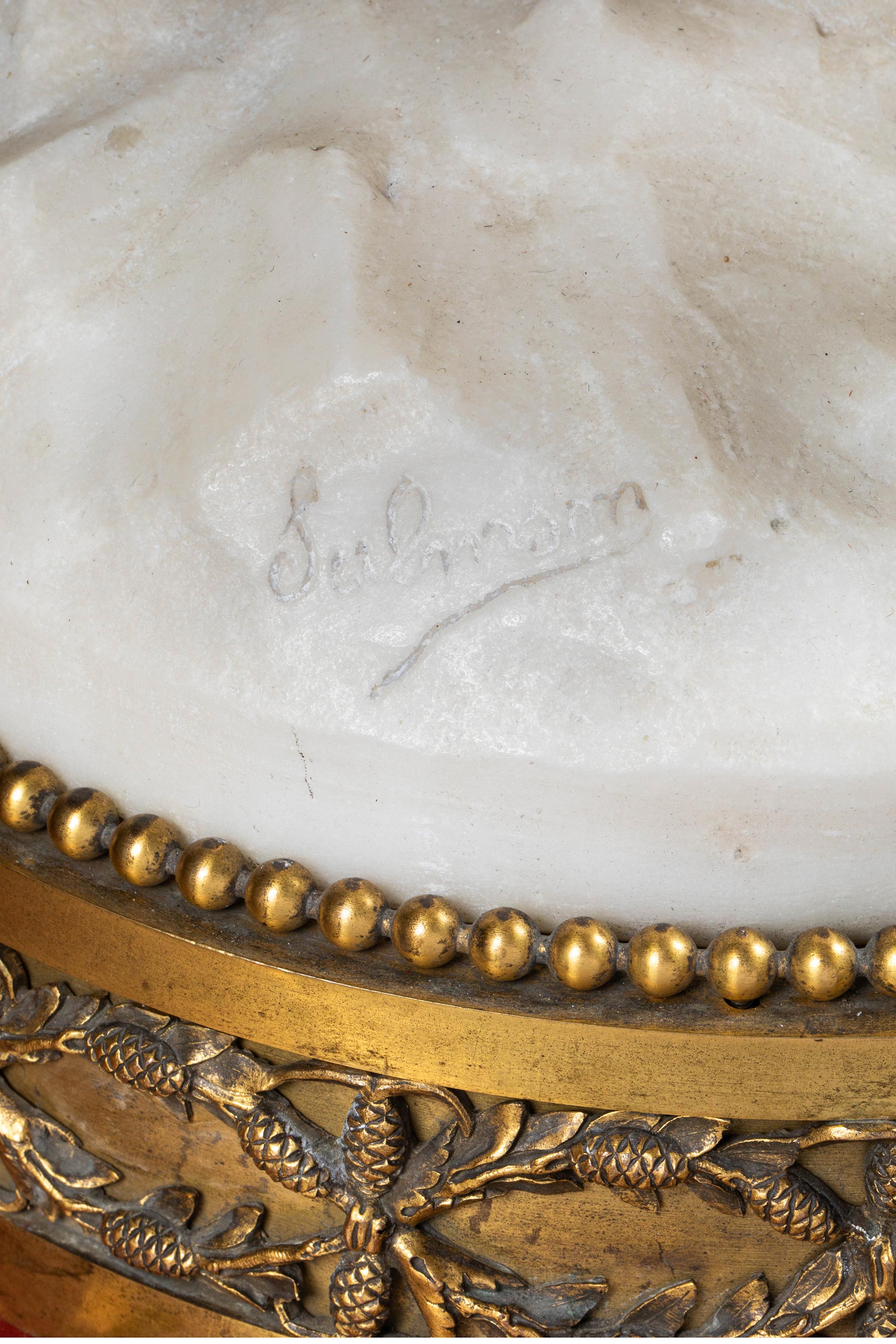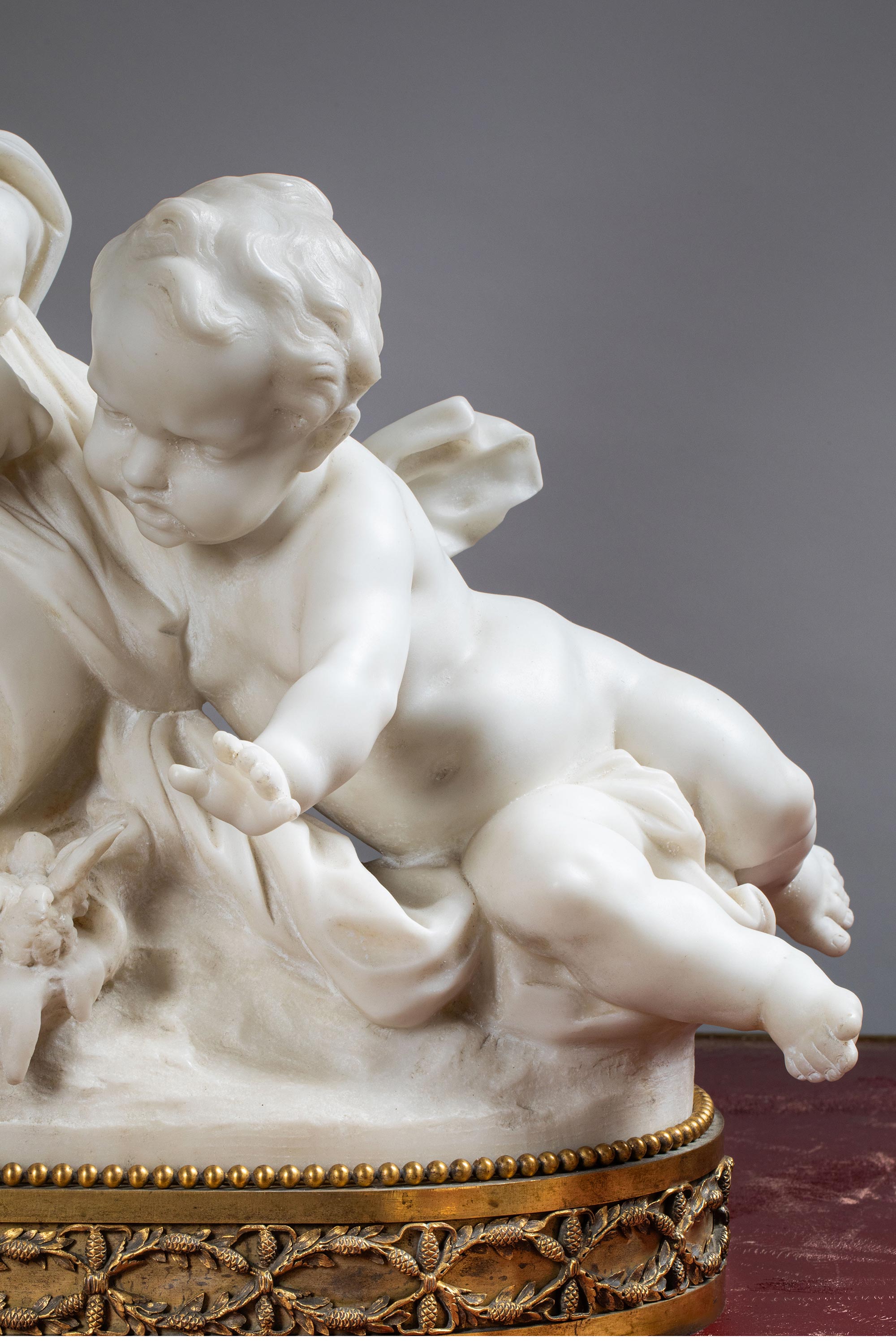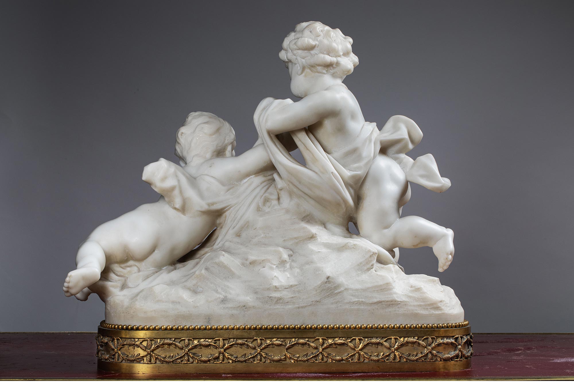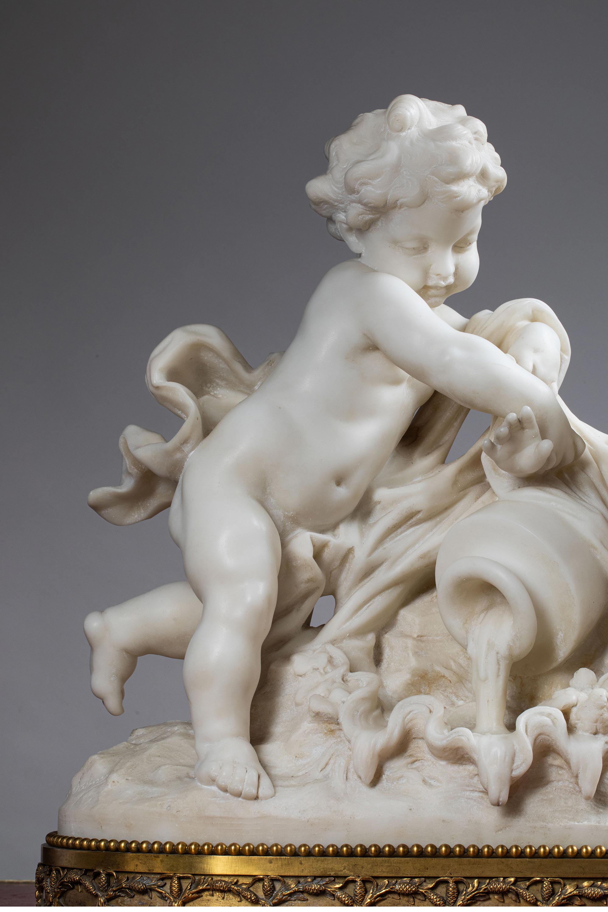 19世纪法国著名雕塑家Jean-Jules Salmson签名创作小天使主题铜鎏金底座大理石雕塑作品《泉》