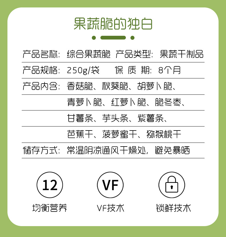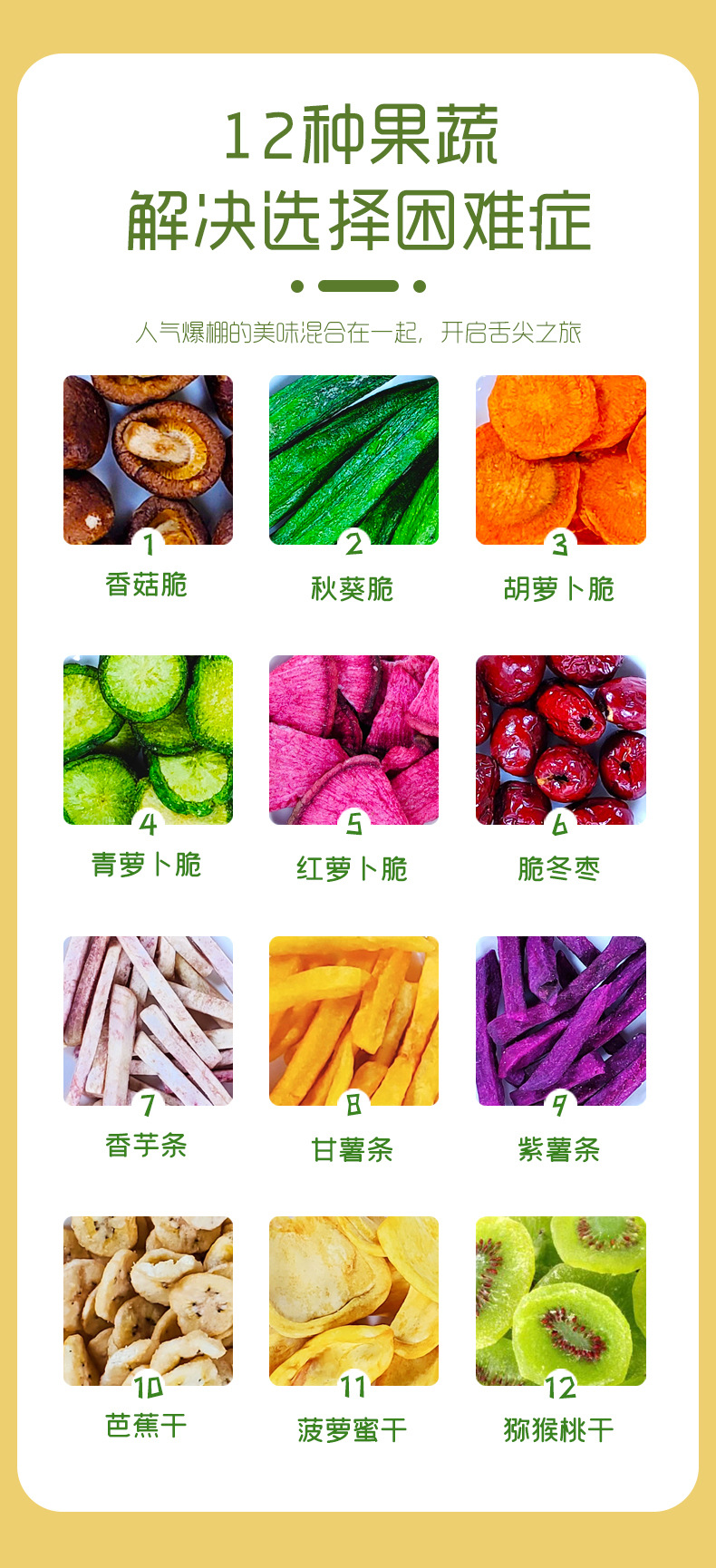 【随时随地卡擦蹦!250克综合果蔬脆】12种混合水果蔬菜干即食香菇秋葵干零食健康