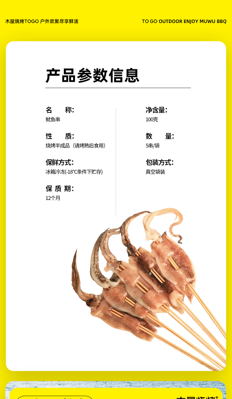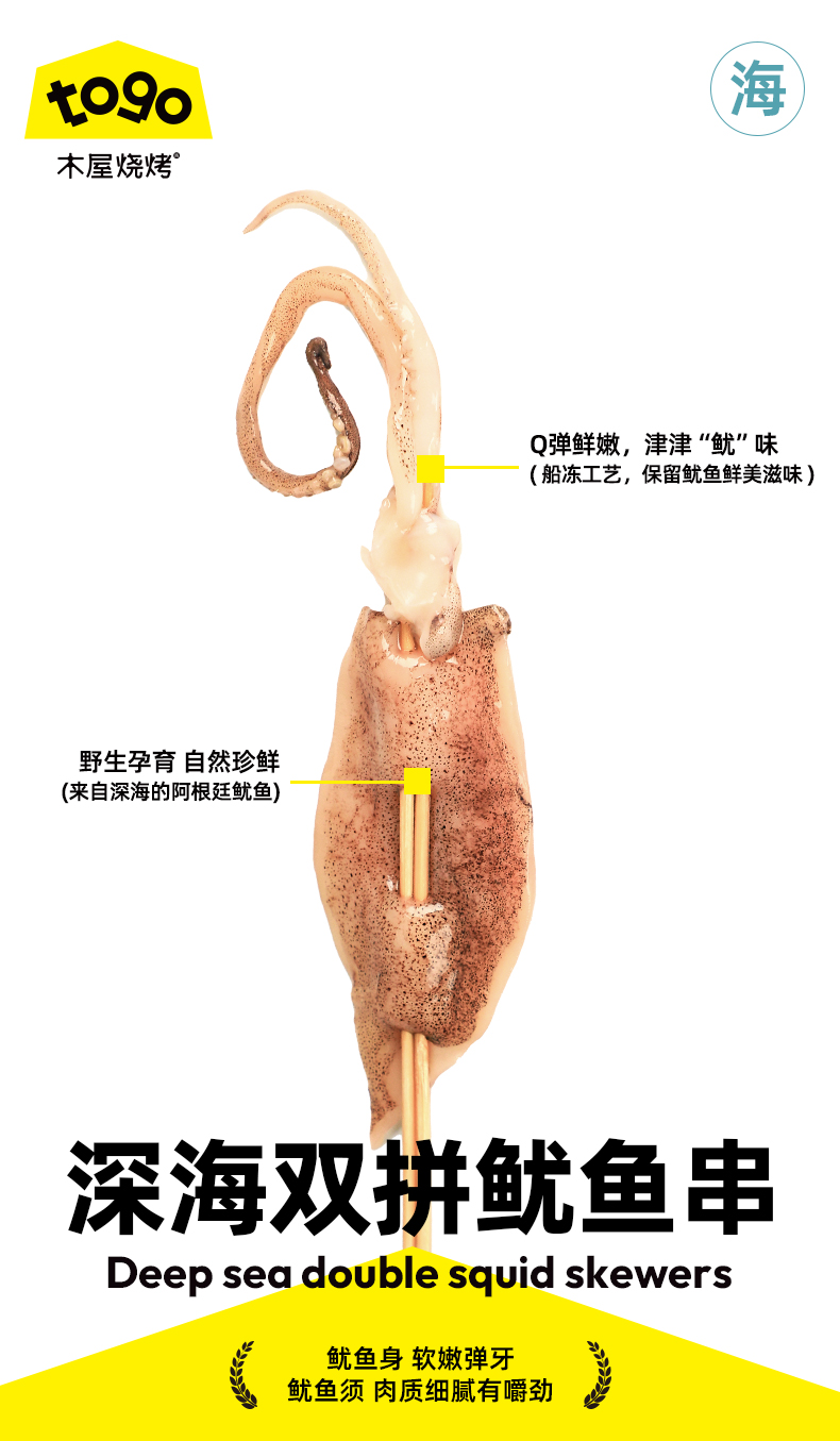 深海双拼鱿鱼串(5串/约100克)
