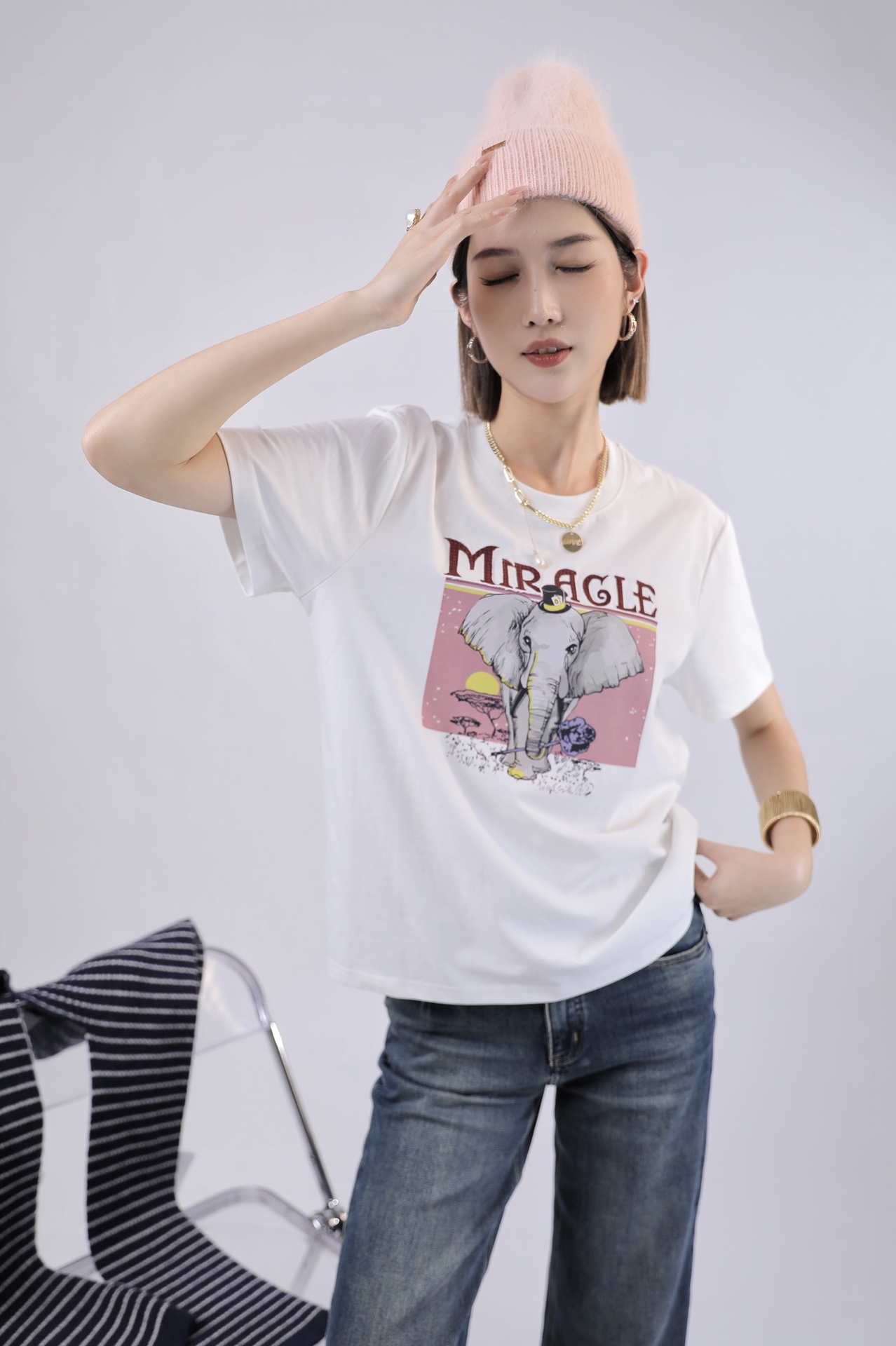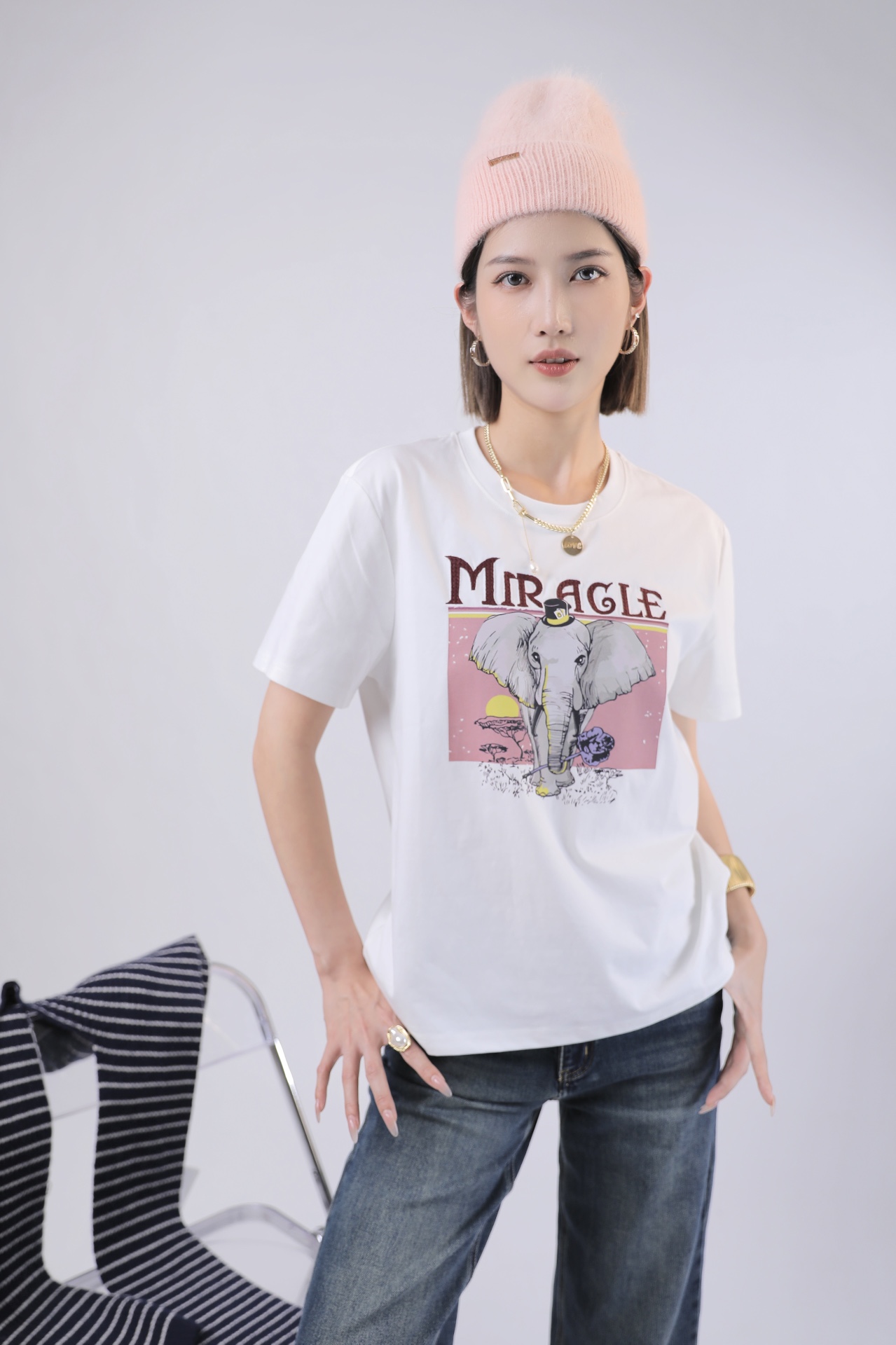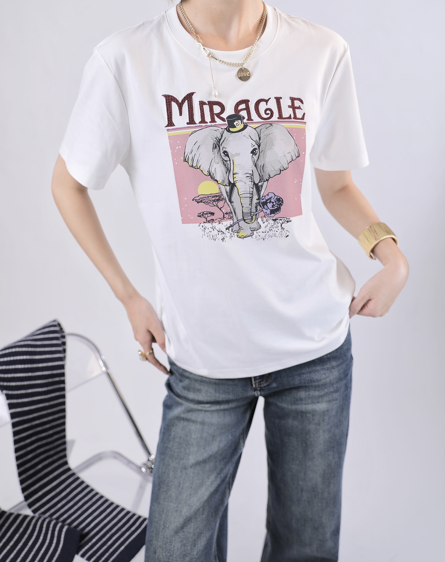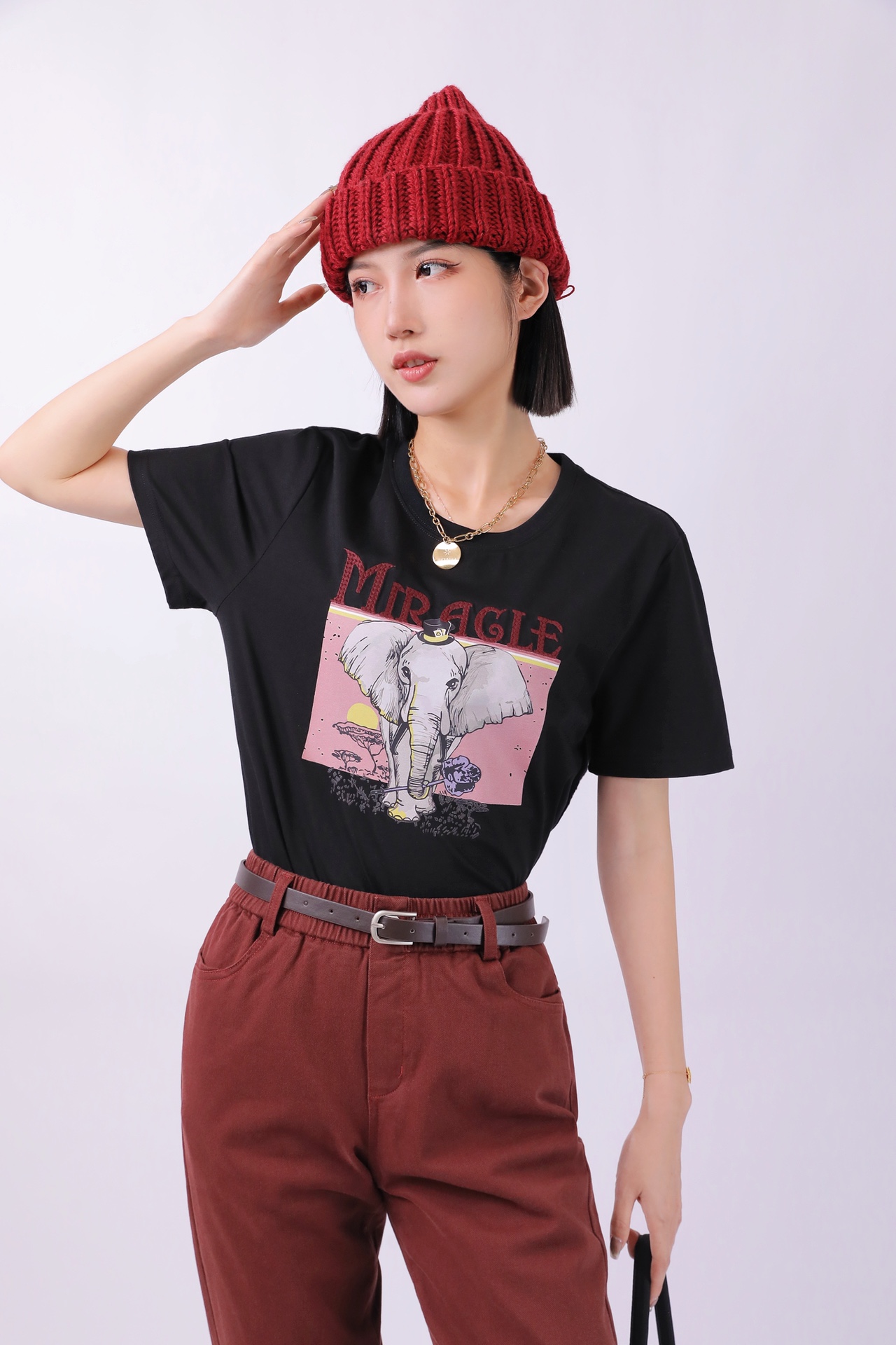 3BAR095085#印大象圆领T