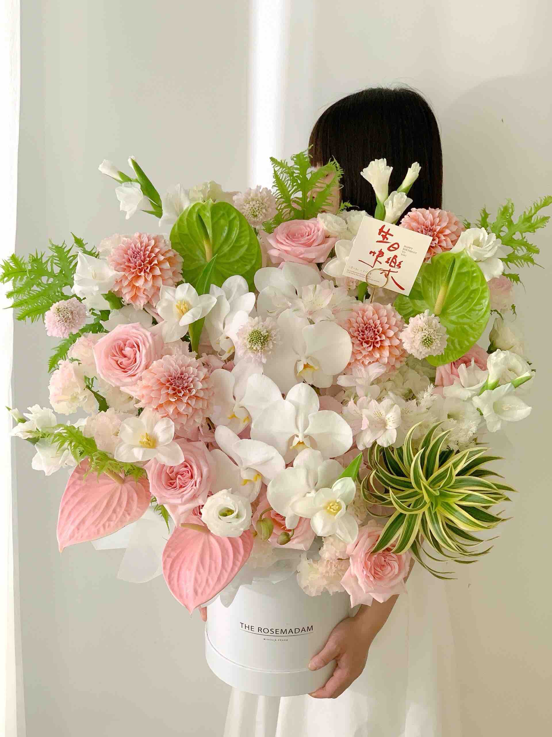 《清黛》奶油桃子蝴蝶兰荔枝玫瑰郁金香抱抱桶