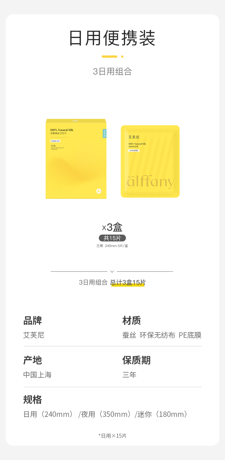 艾芙尼Alffany艾芙尼蚕丝卫生巾日用三盒装