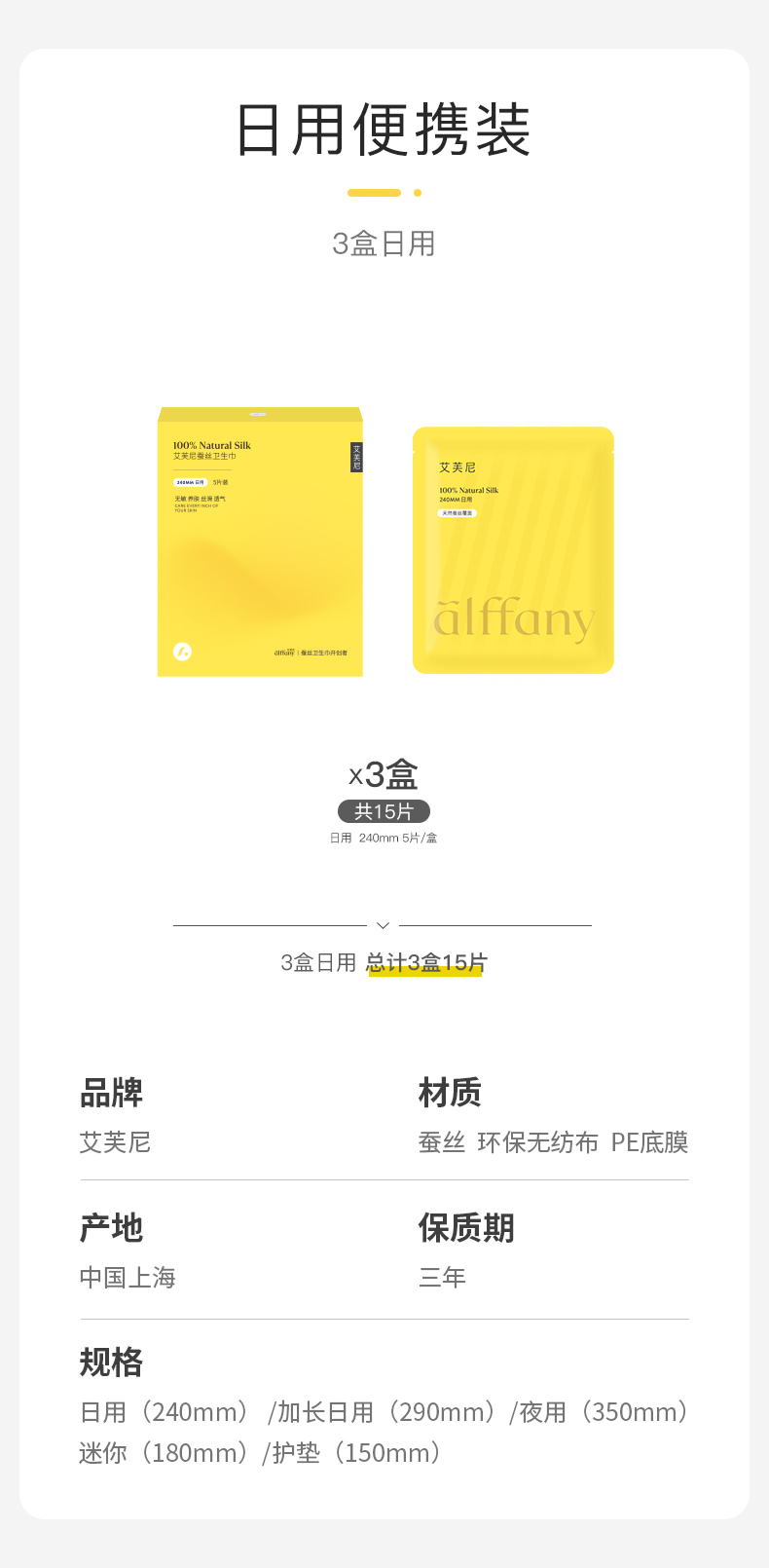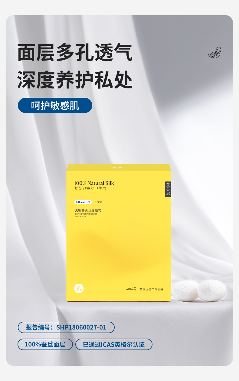 艾芙尼Alffany艾芙尼蚕丝卫生巾240mm日用三盒装