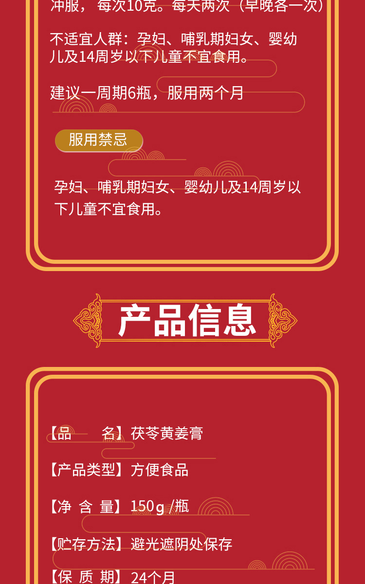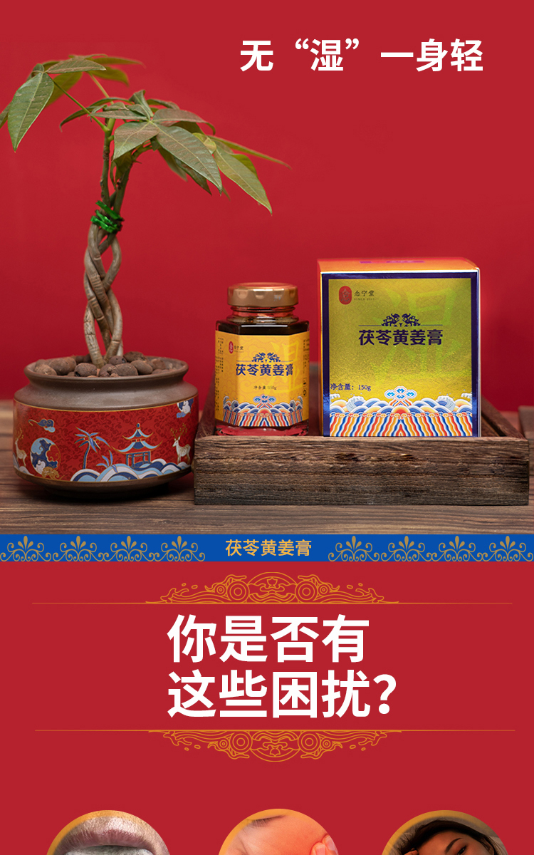 念宁堂茯苓黄姜膏怕冷水肿小肚腩头发油懒的动150g/瓶