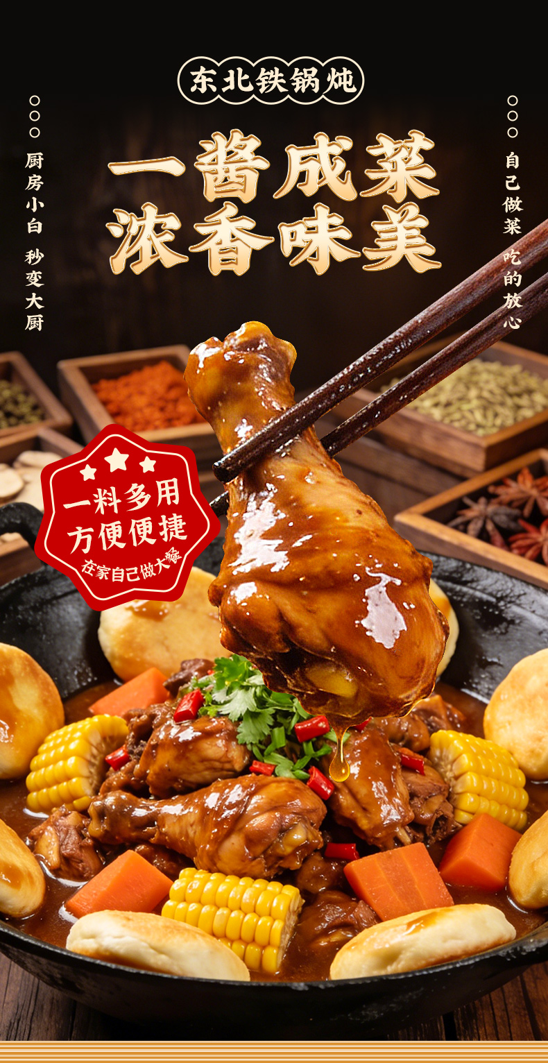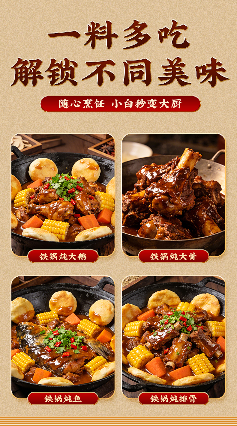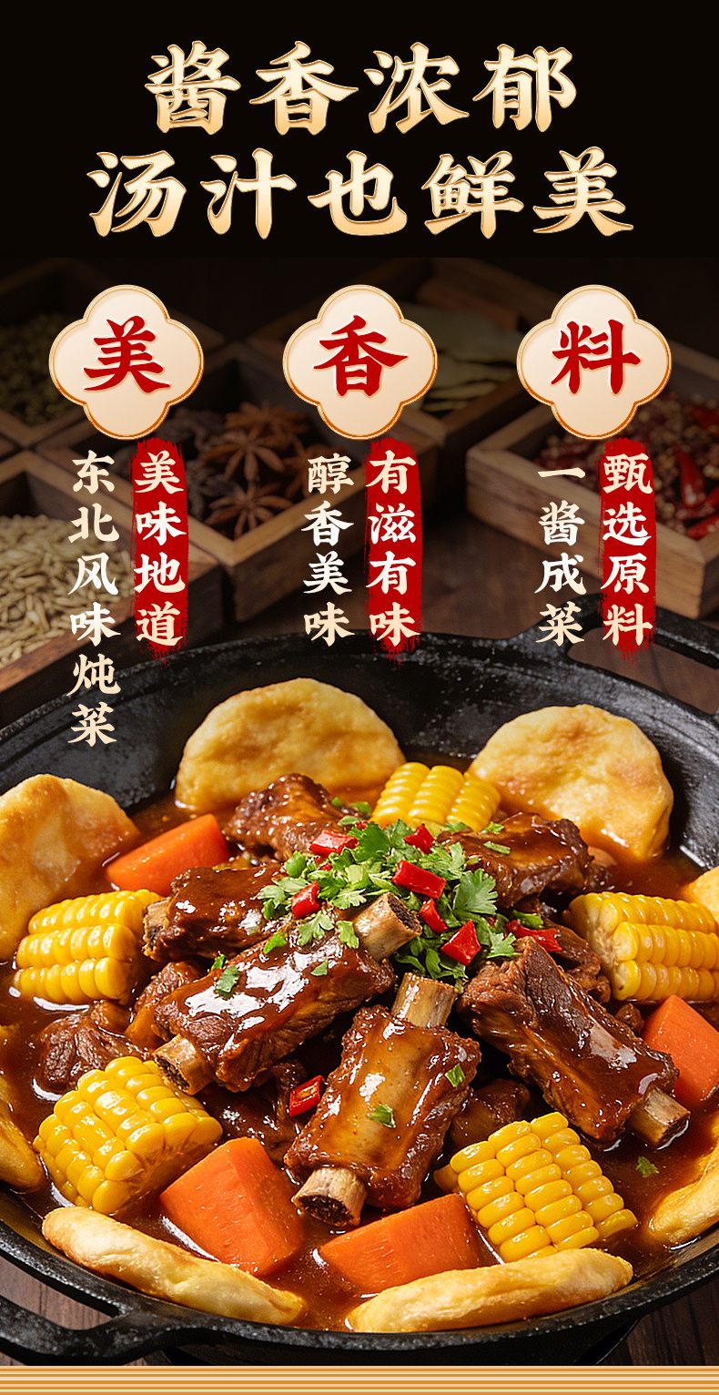 【东北铁锅炖】铁锅酱料炖排骨酱香浓郁450g/袋 含干豆角玉米粉