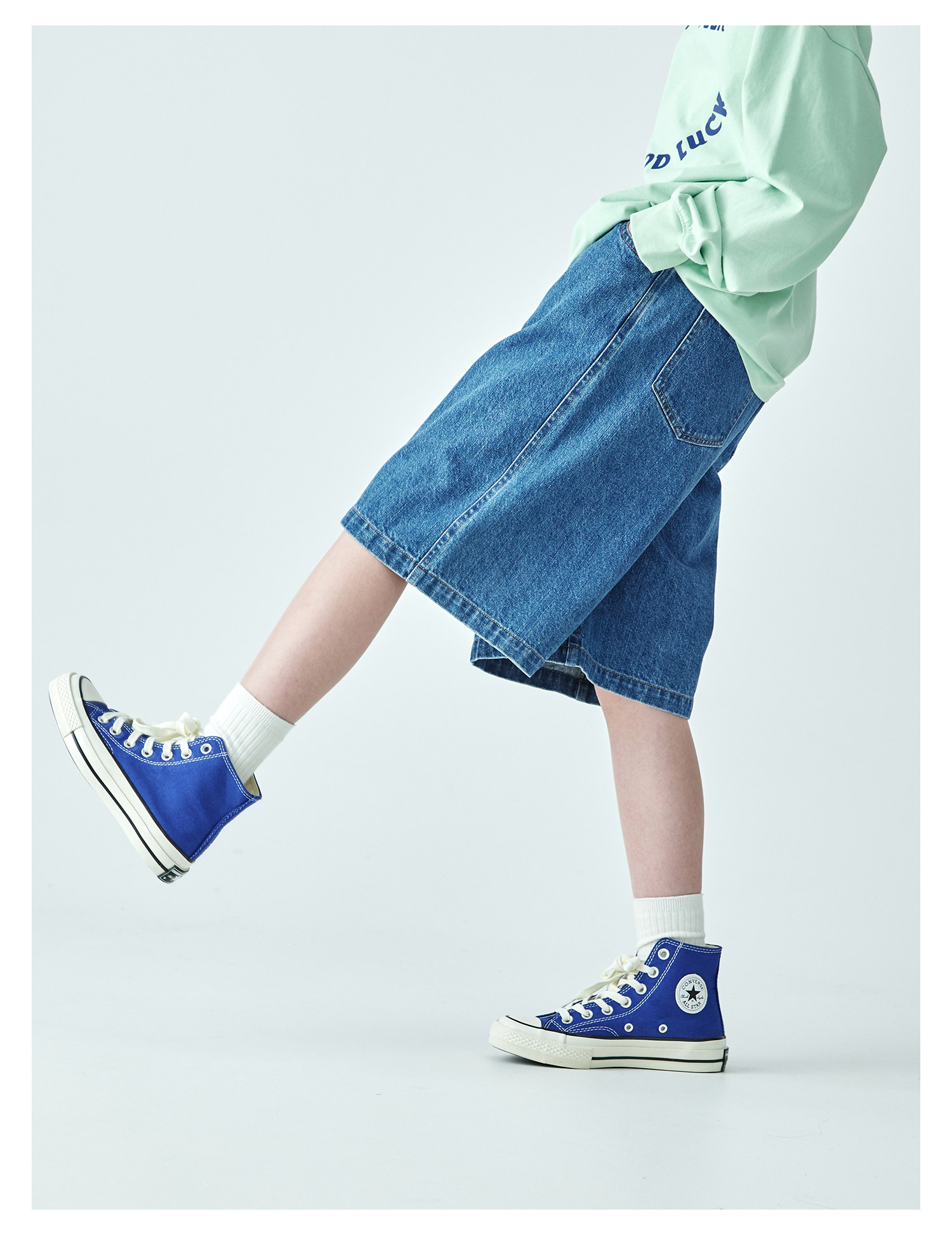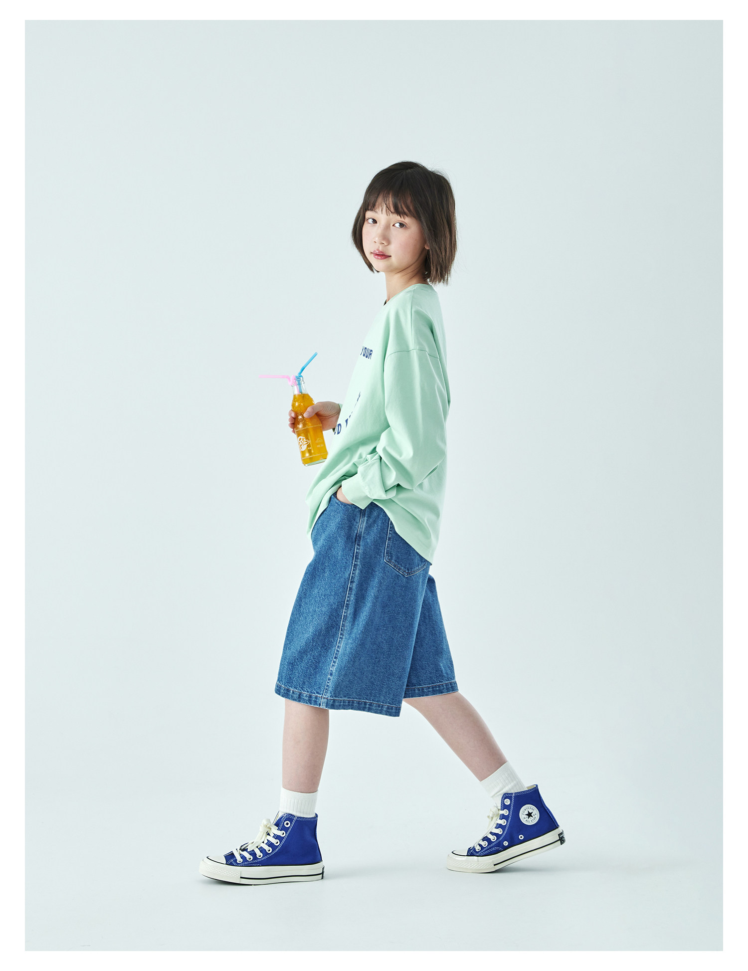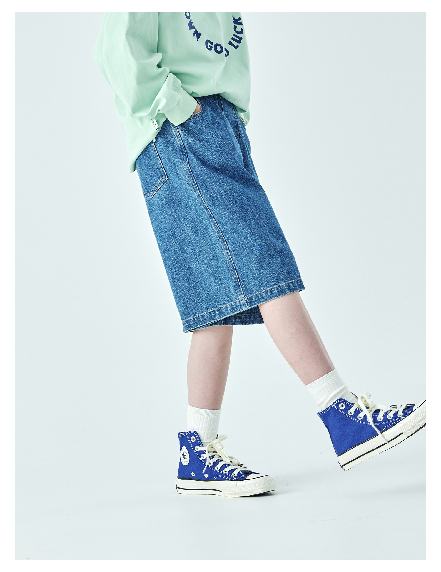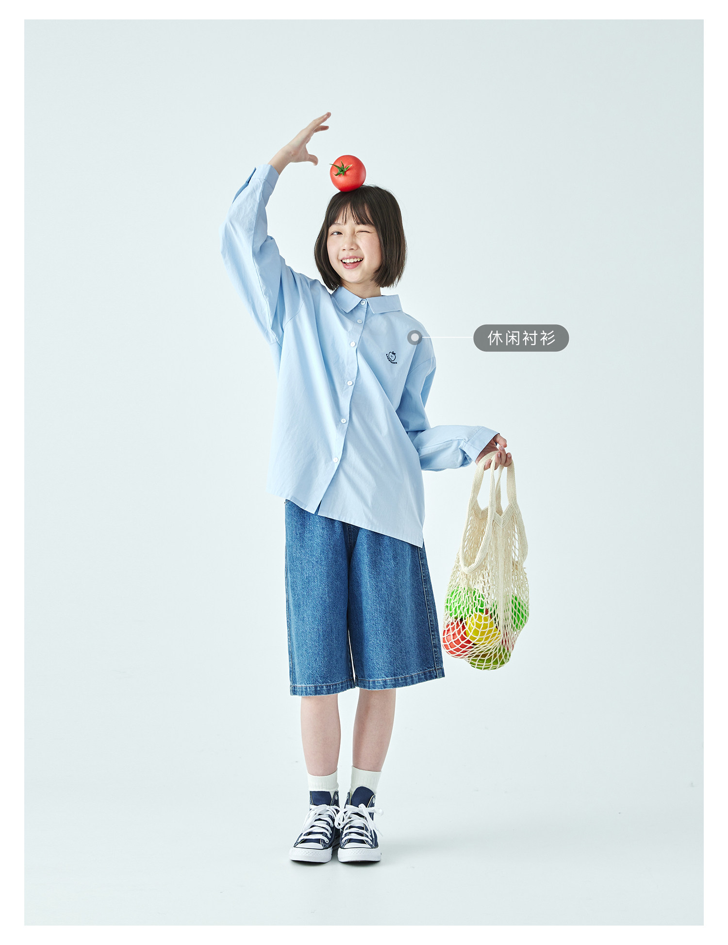棵初2026年春夏新款亲子中大女童经典丹宁牛仔短裤休闲宽松五分裤