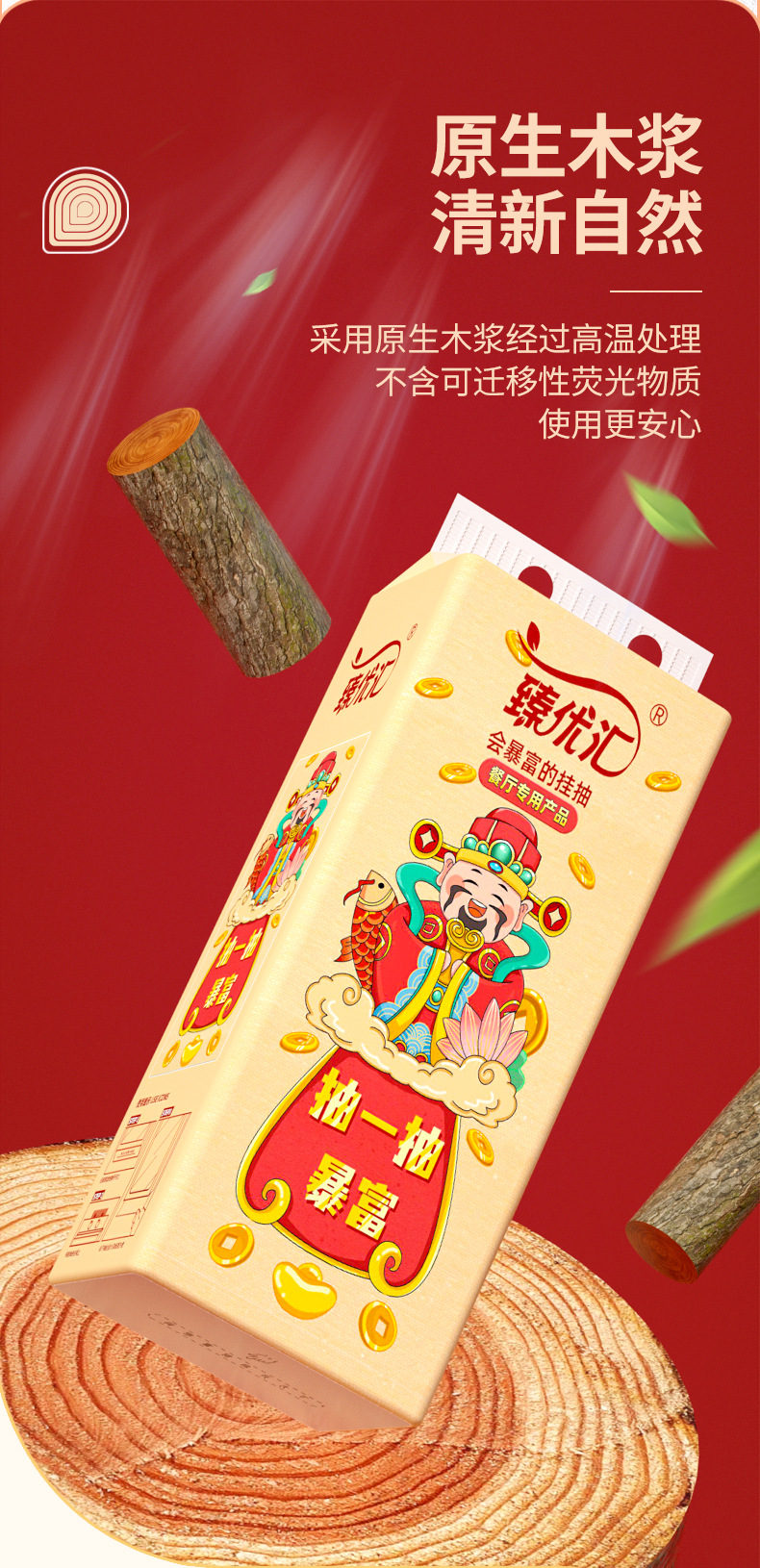 「19.9元到手4提!“暴富款”抽纸」12提悬挂式抽纸居家日用卫生纸亲肤柔软面巾纸厕所专用纸巾 商品图3