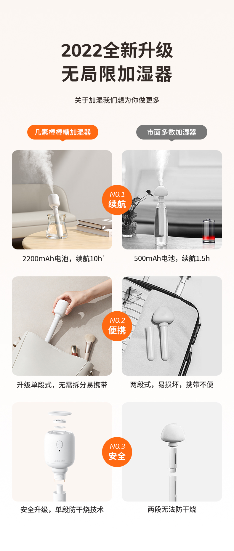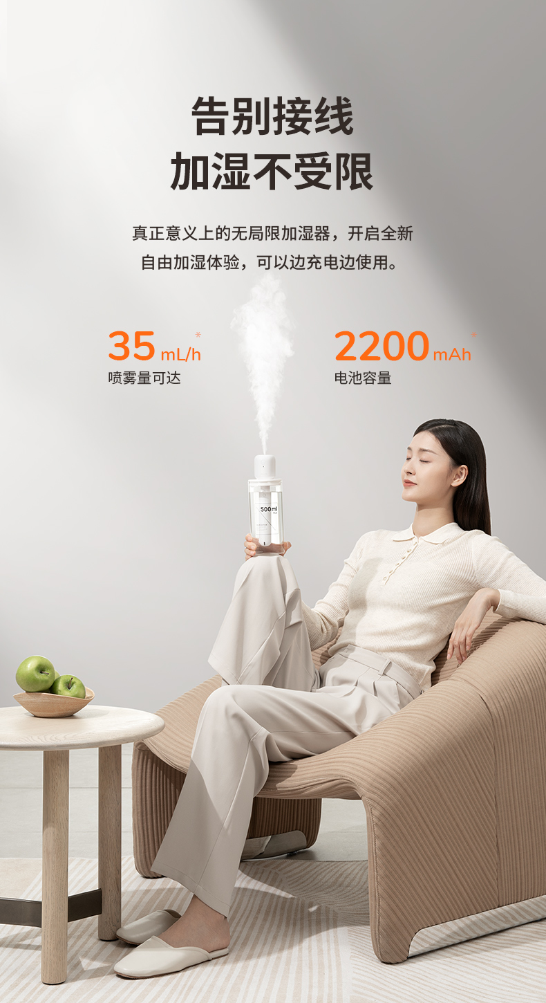 几素棒棒糖无线加湿器小型迷你usb充电便携式办公室桌面空气香薰喷雾家用静音卧室宿舍学生矿泉水加湿车载小