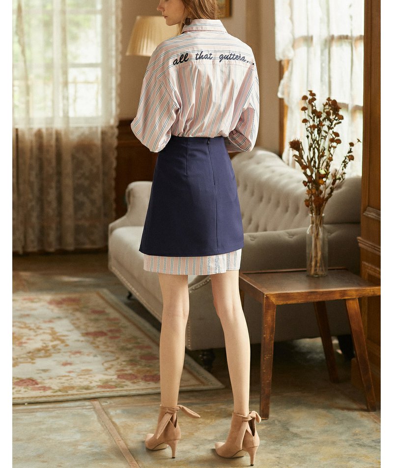 OLrain欧芮儿灰色直筒半身裙女春季2025新款通勤设计感开叉半裙
