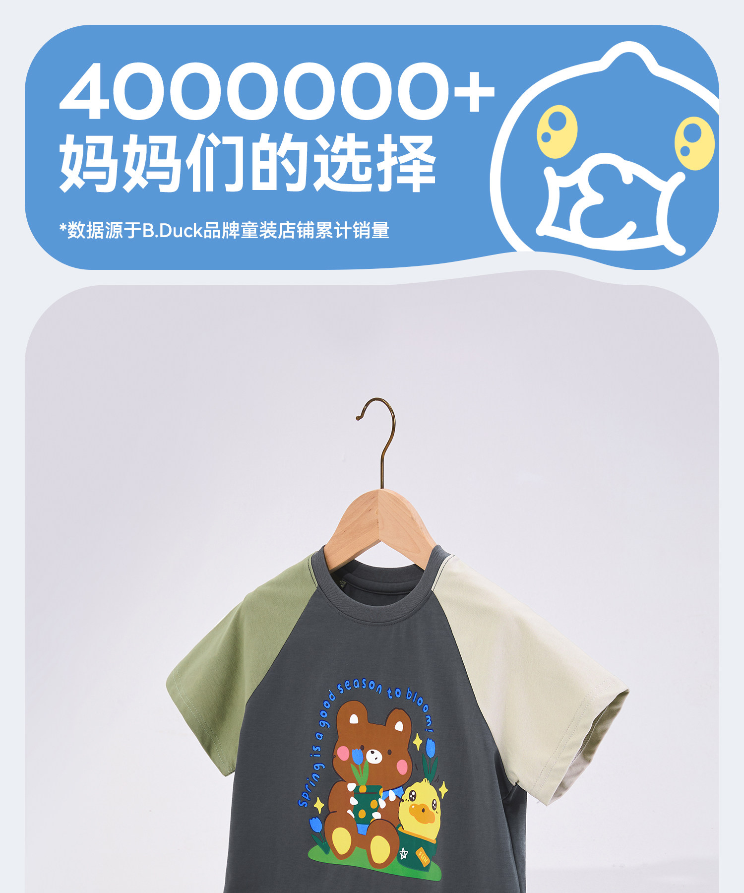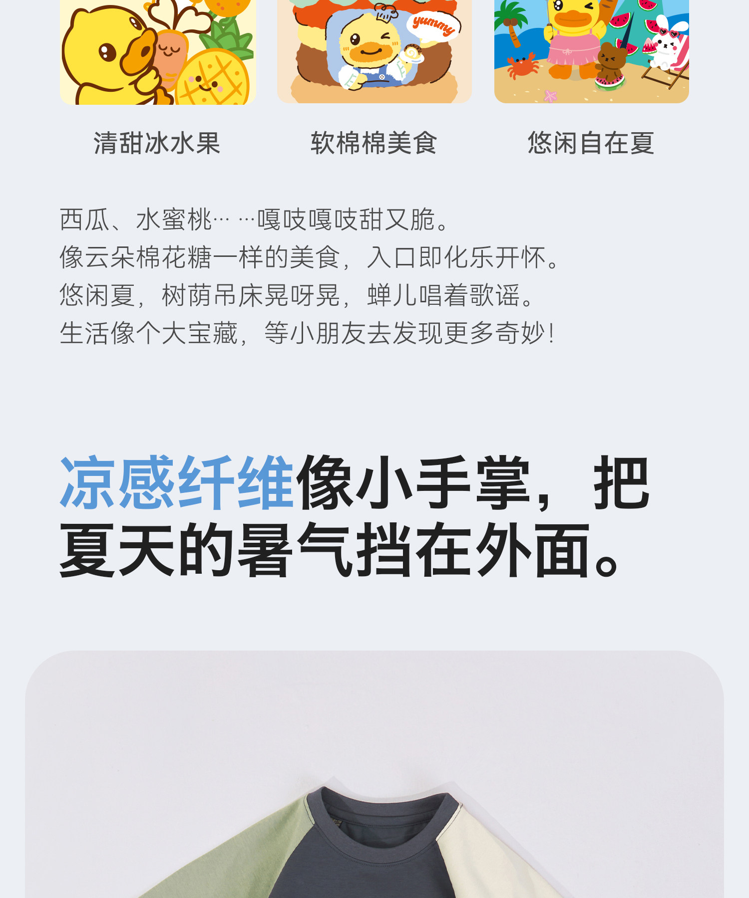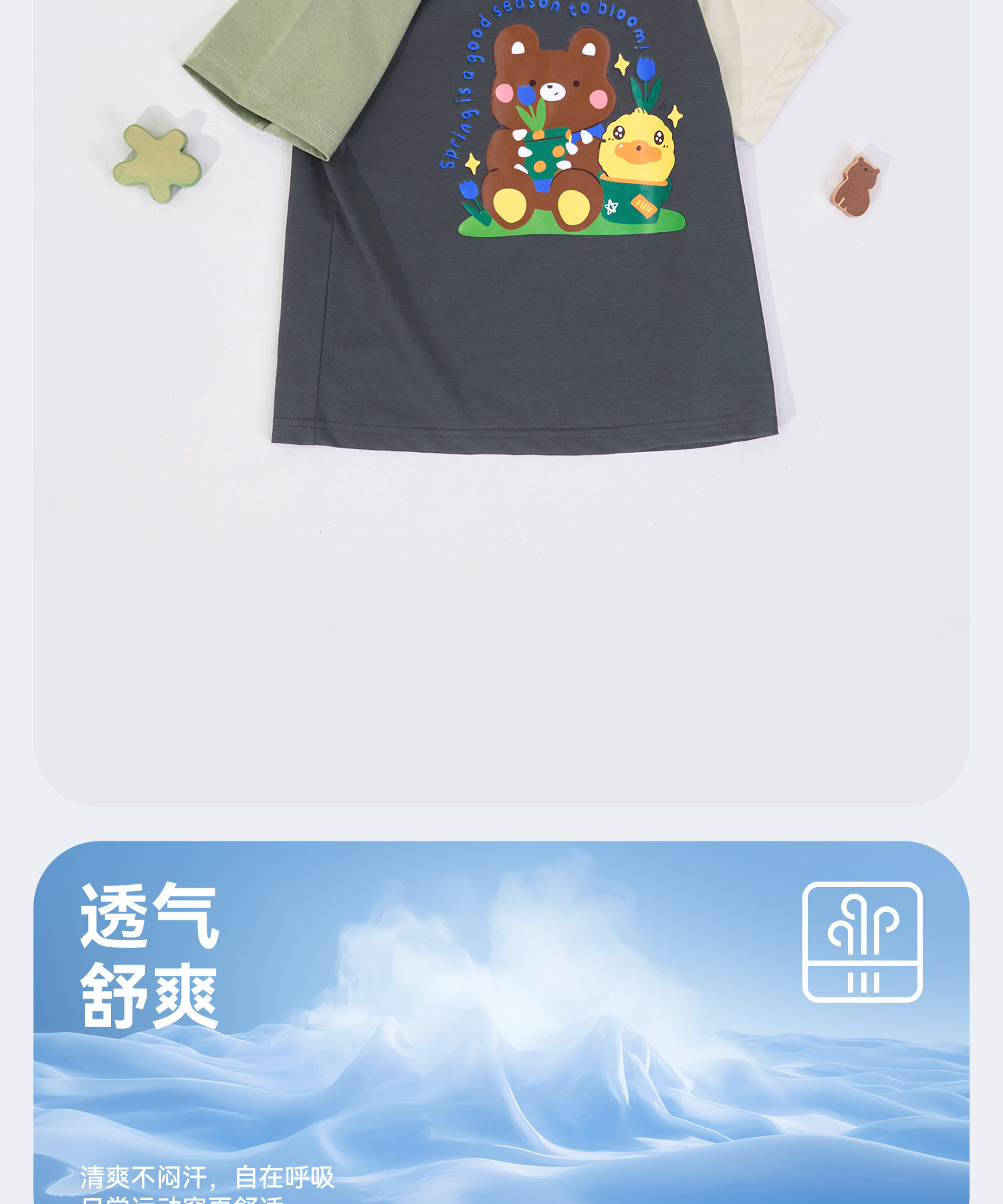 [凉感]bduck小黄鸭童装儿童短袖T恤夏季男童圆领印花休闲上衣110-160 BF2701048