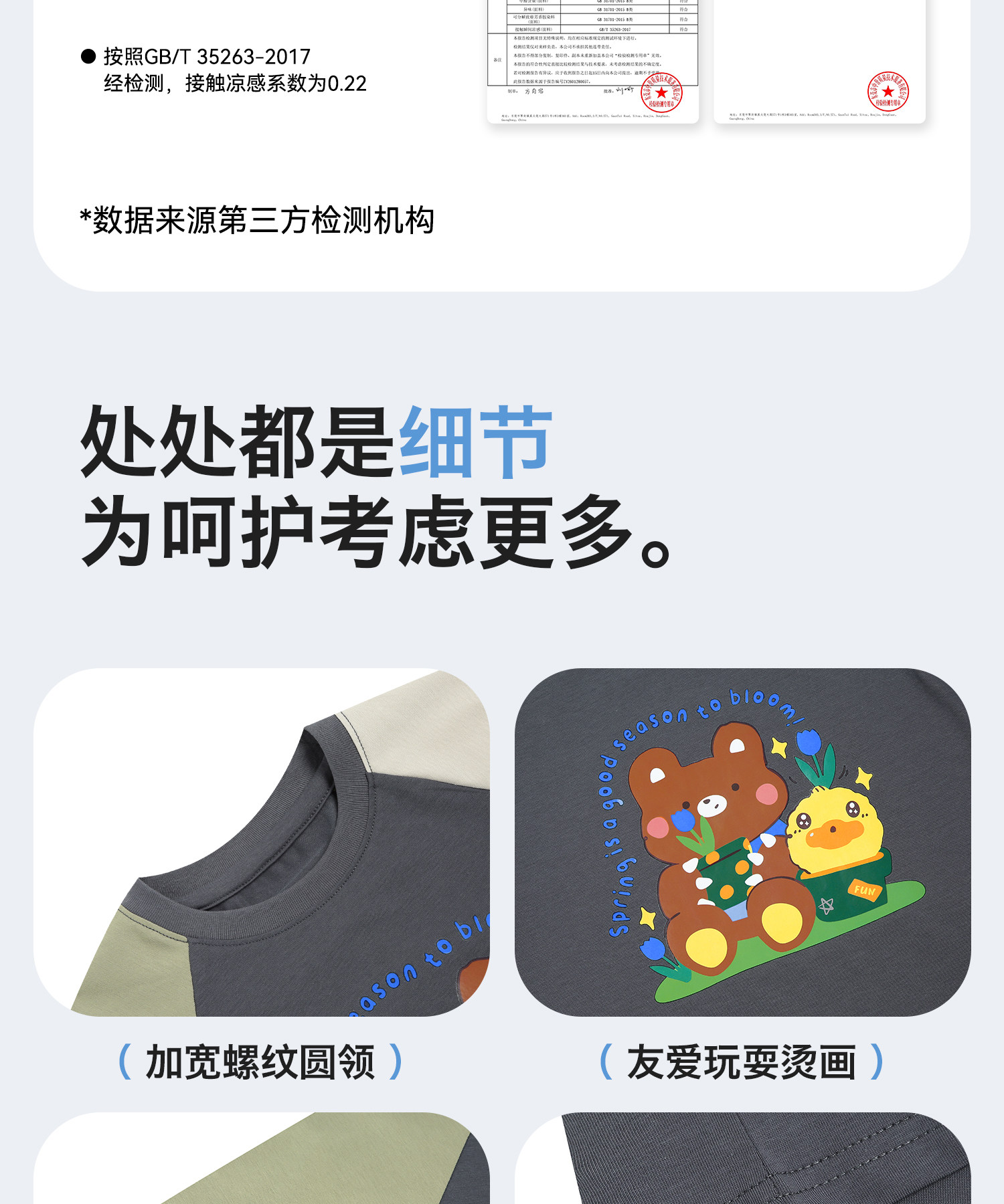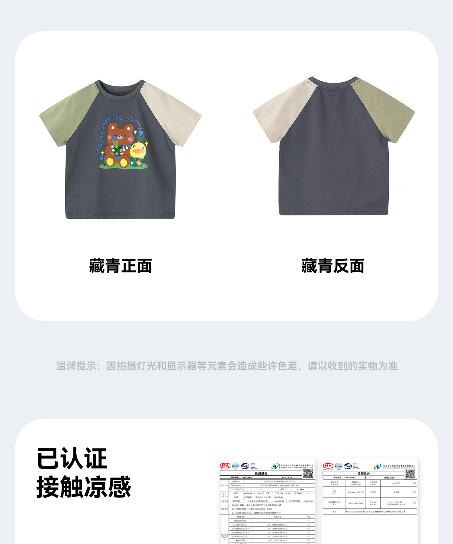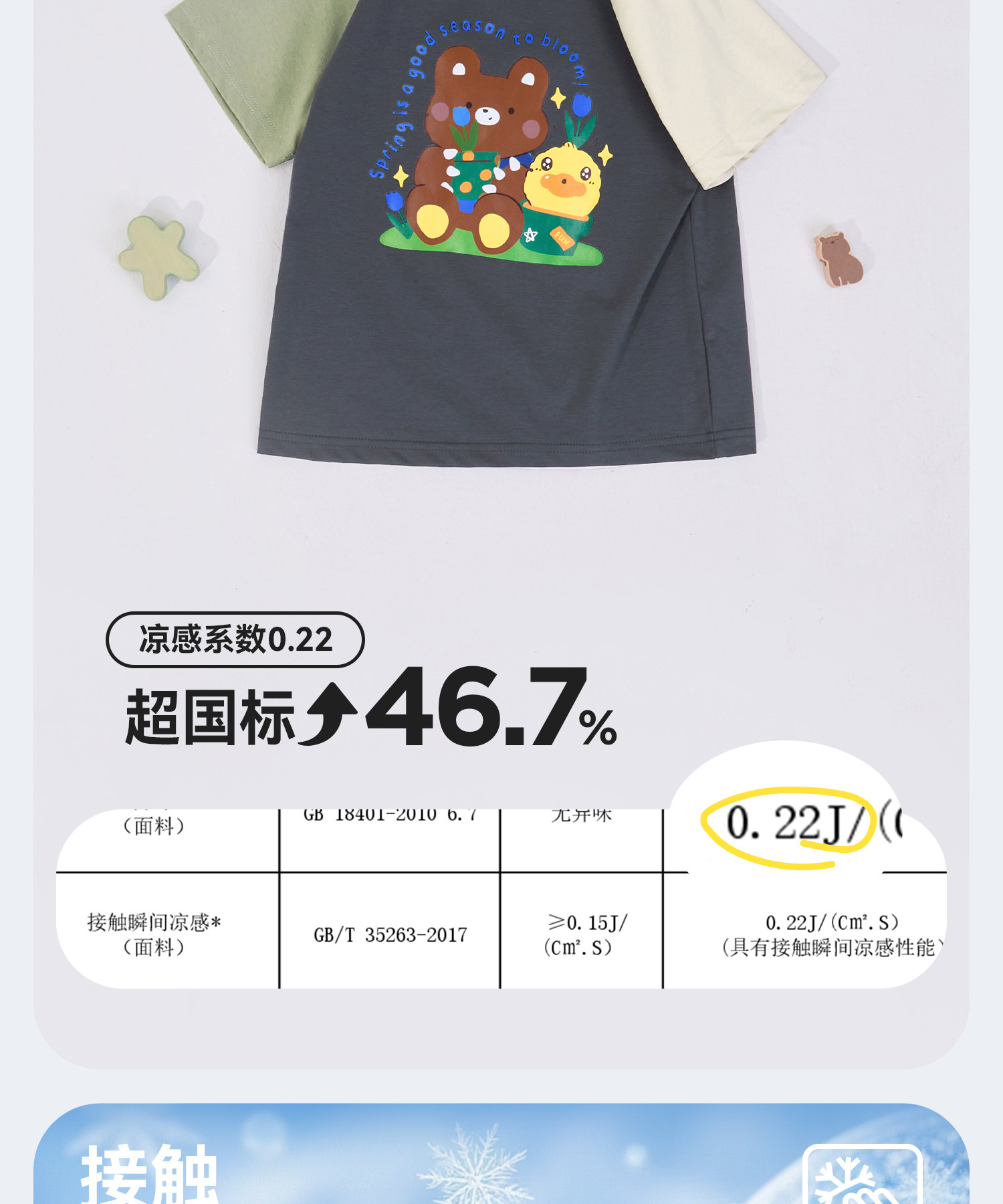 [凉感]bduck小黄鸭童装儿童短袖T恤夏季男童圆领印花休闲上衣110-160 BF2701048