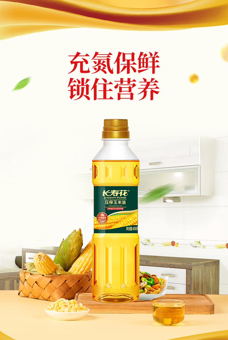 长寿花压榨玉米油400ml*2桶非转基因物理压榨一级充氮保鲜烘焙食用植物油