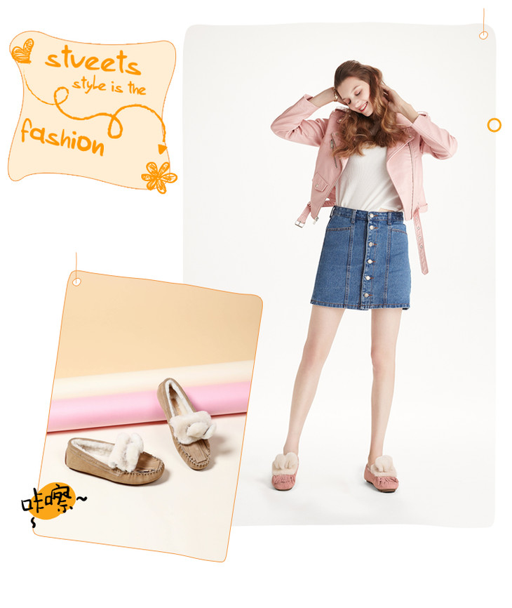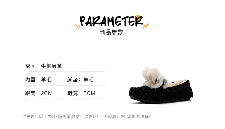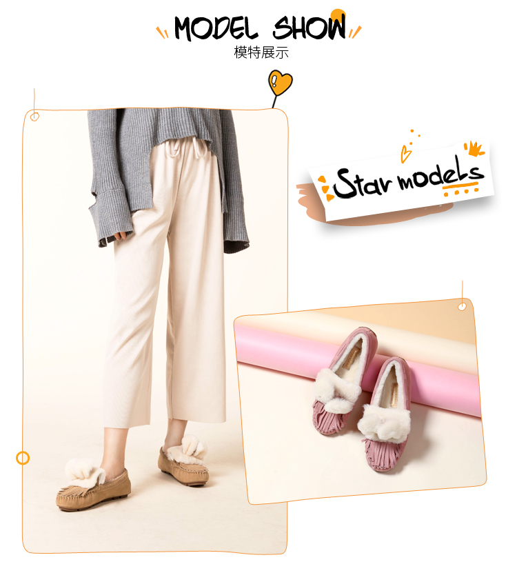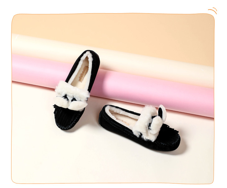 索菲娅秋冬可爱兔耳朵单鞋毛边豆豆鞋SF94111063