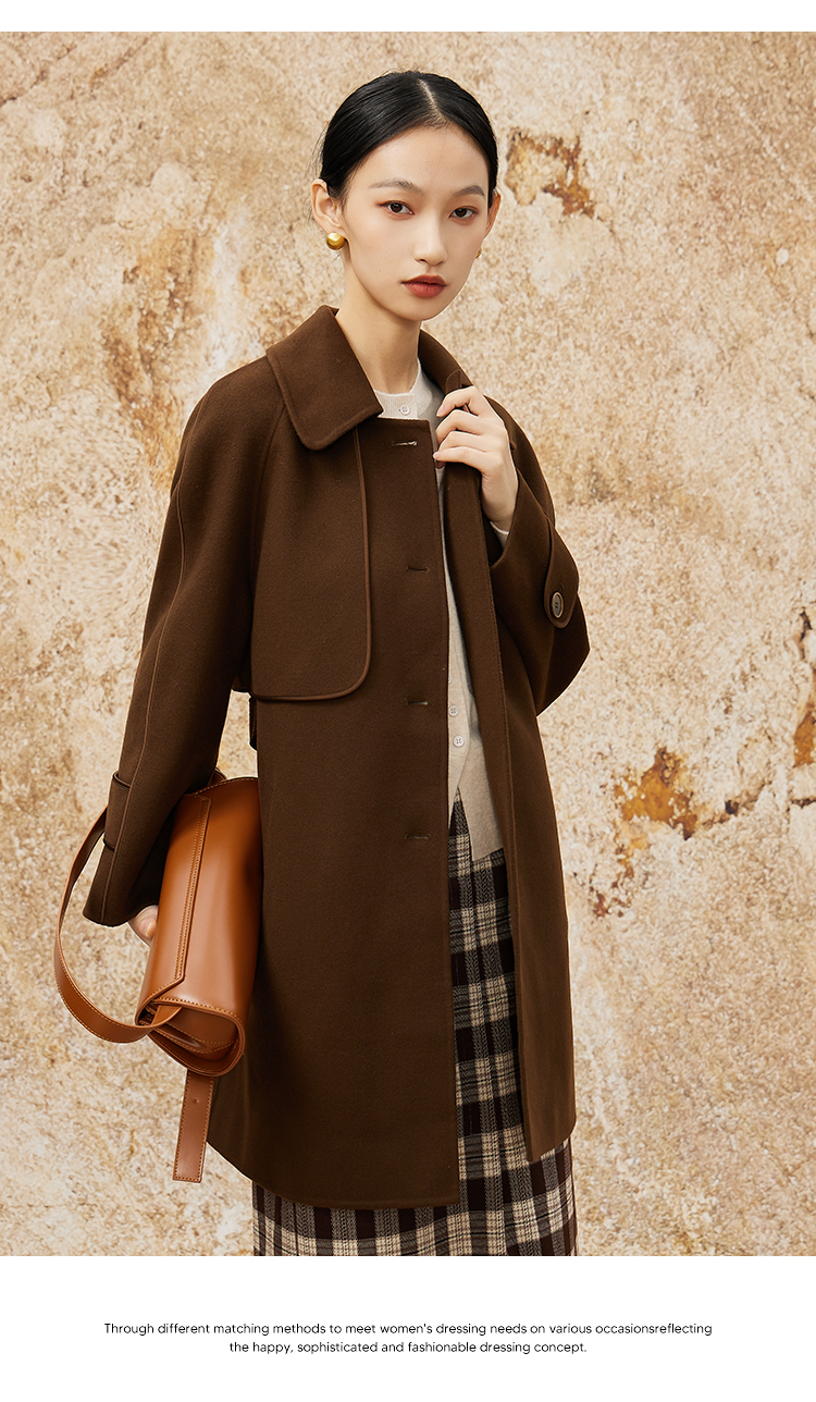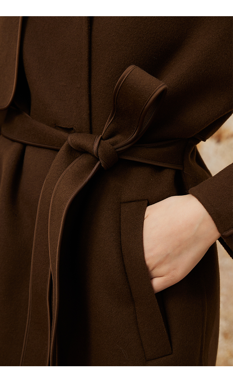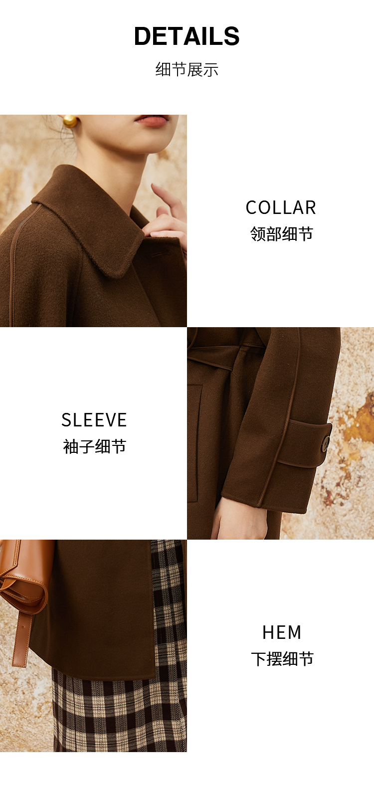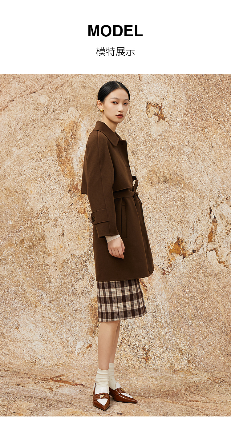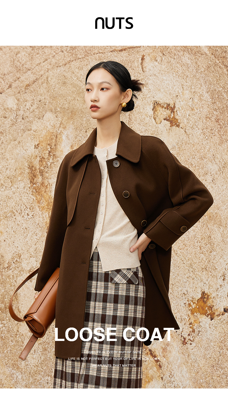 NUTS冬季咖色复古气质通勤收腰双面毛呢大衣中款外套女341152160