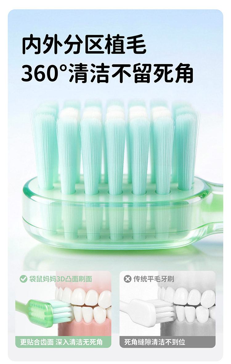 【青少年护齿牙刷】换牙期首选 3D凸面设计清洁更到位 袋鼠妈妈青少年护齿牙刷