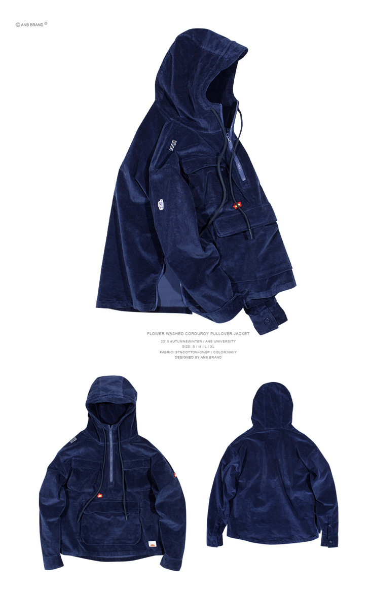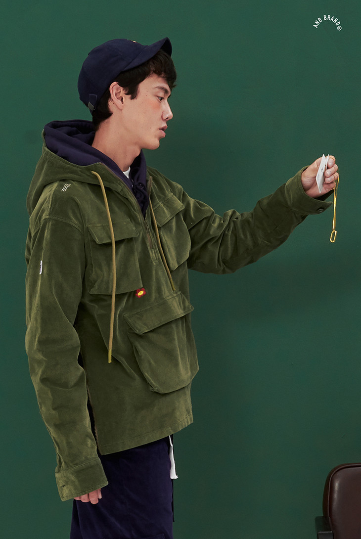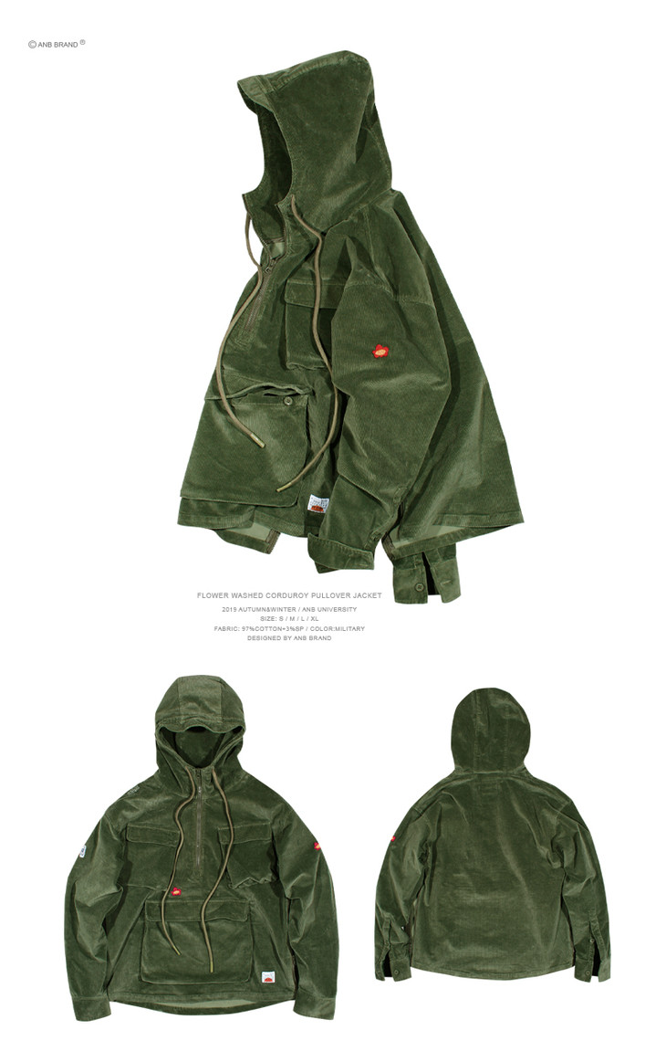 >ANBSAURUS 灯芯绒水洗套头多袋夹克<