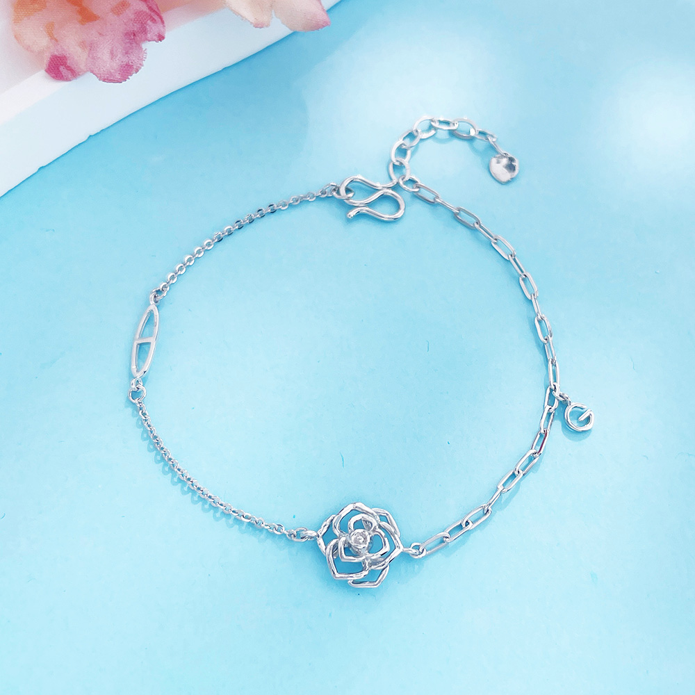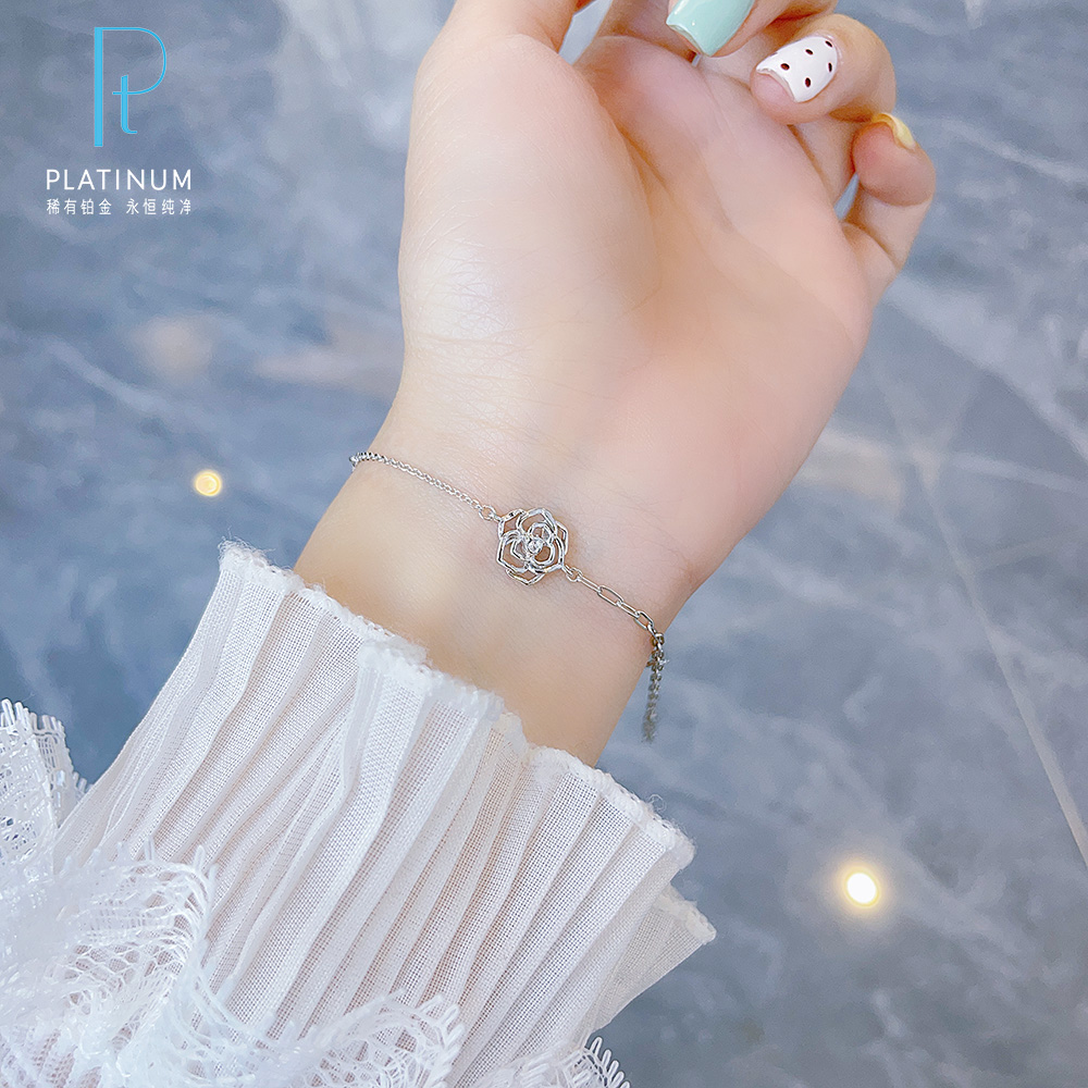 【限时8.8折】【线上铂金馆】PT950 【国际铂金协会 】铂金AB链镂空山茶花调节手链(ACPTSL00011)预售产品下单后不退款不退货不换货不补差价)