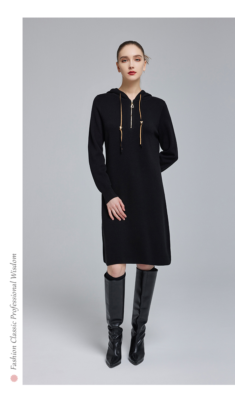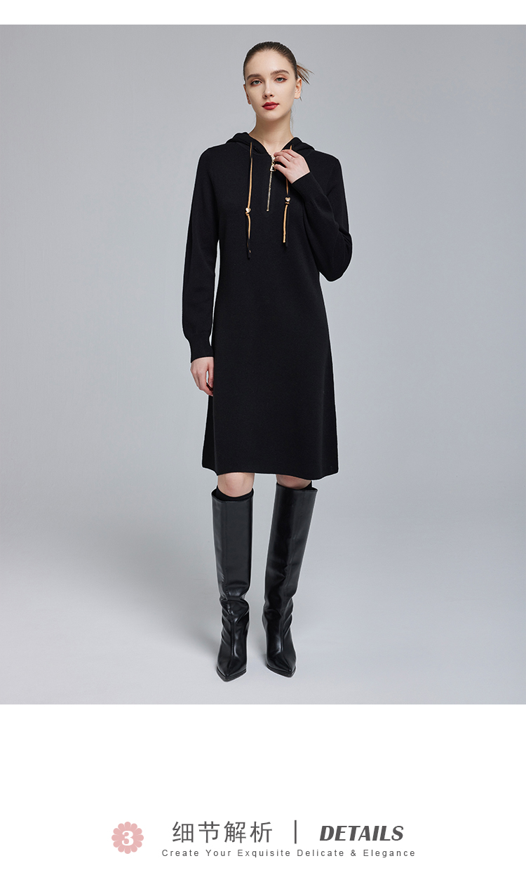 NG642斯尔丽2023秋季新款连帽时尚青春活力卫衣感针织女绣花款连衣裙