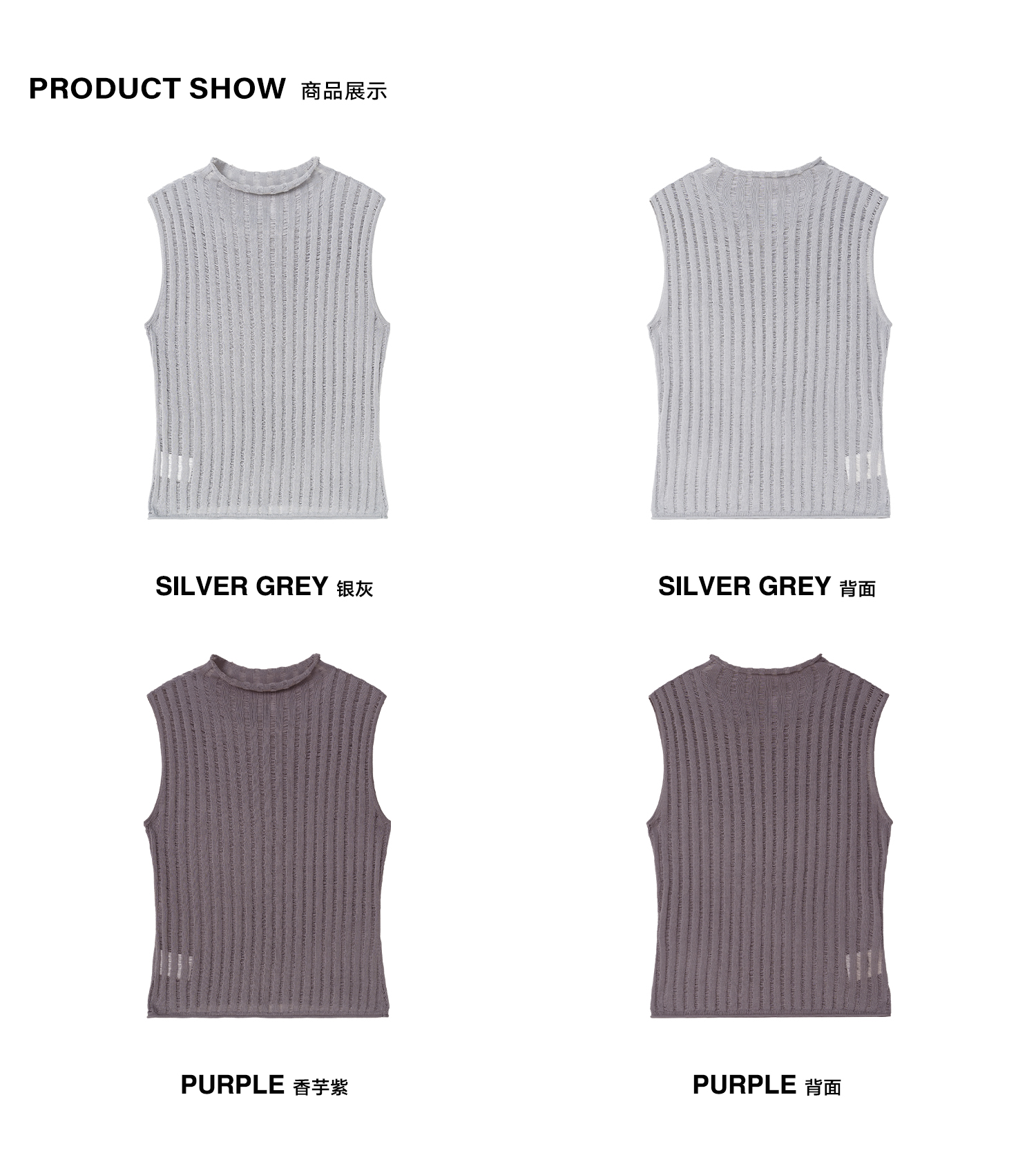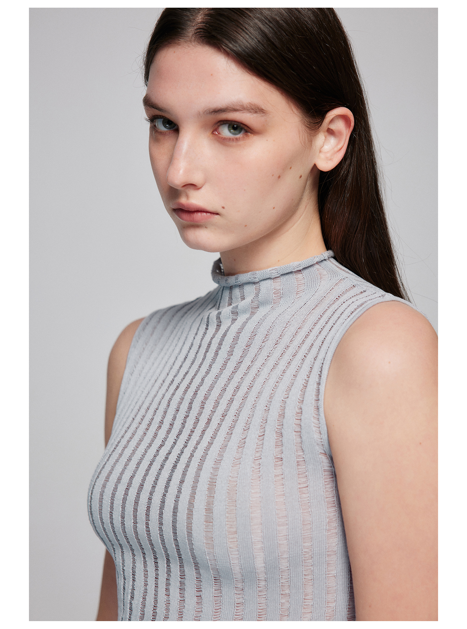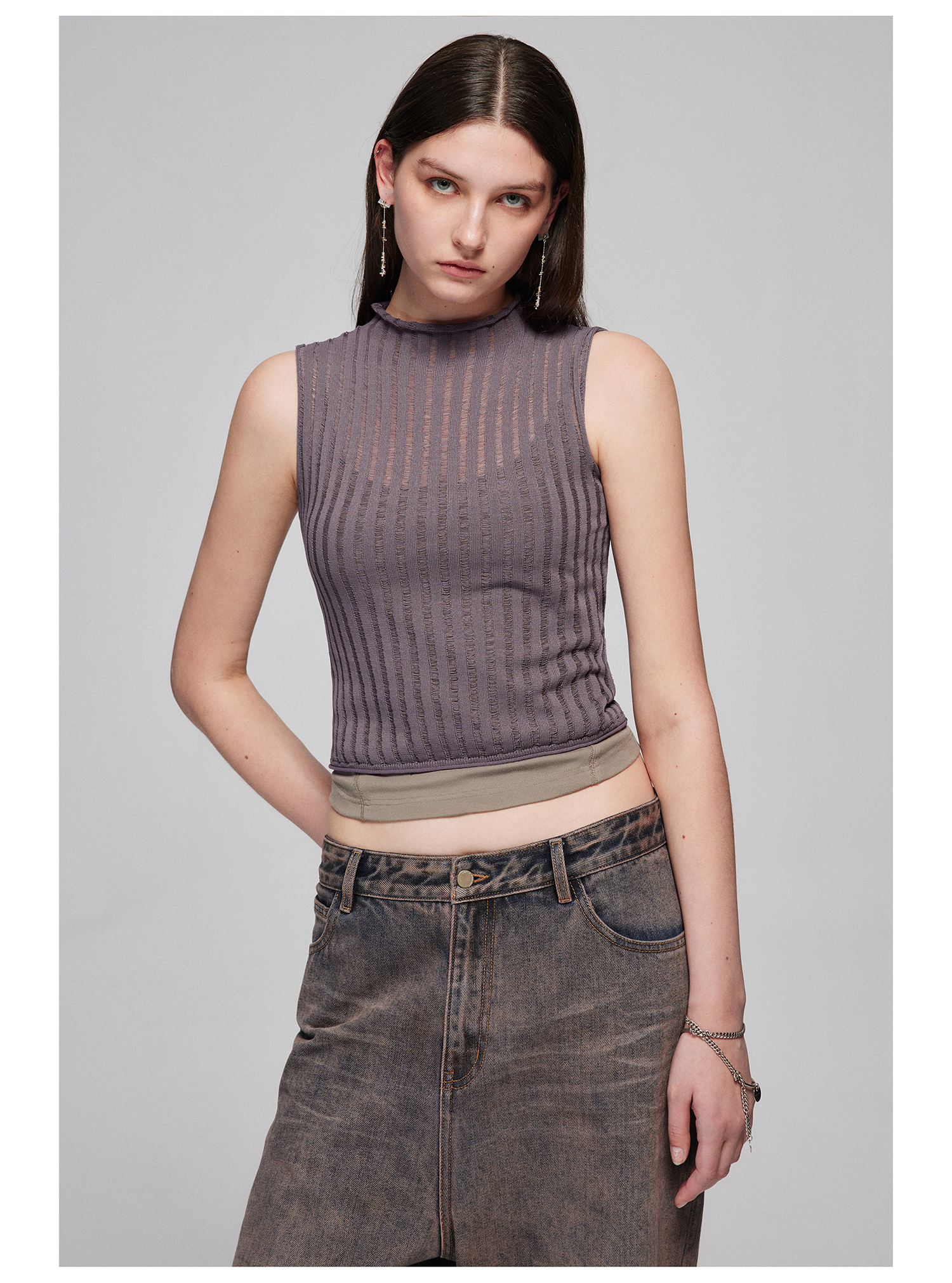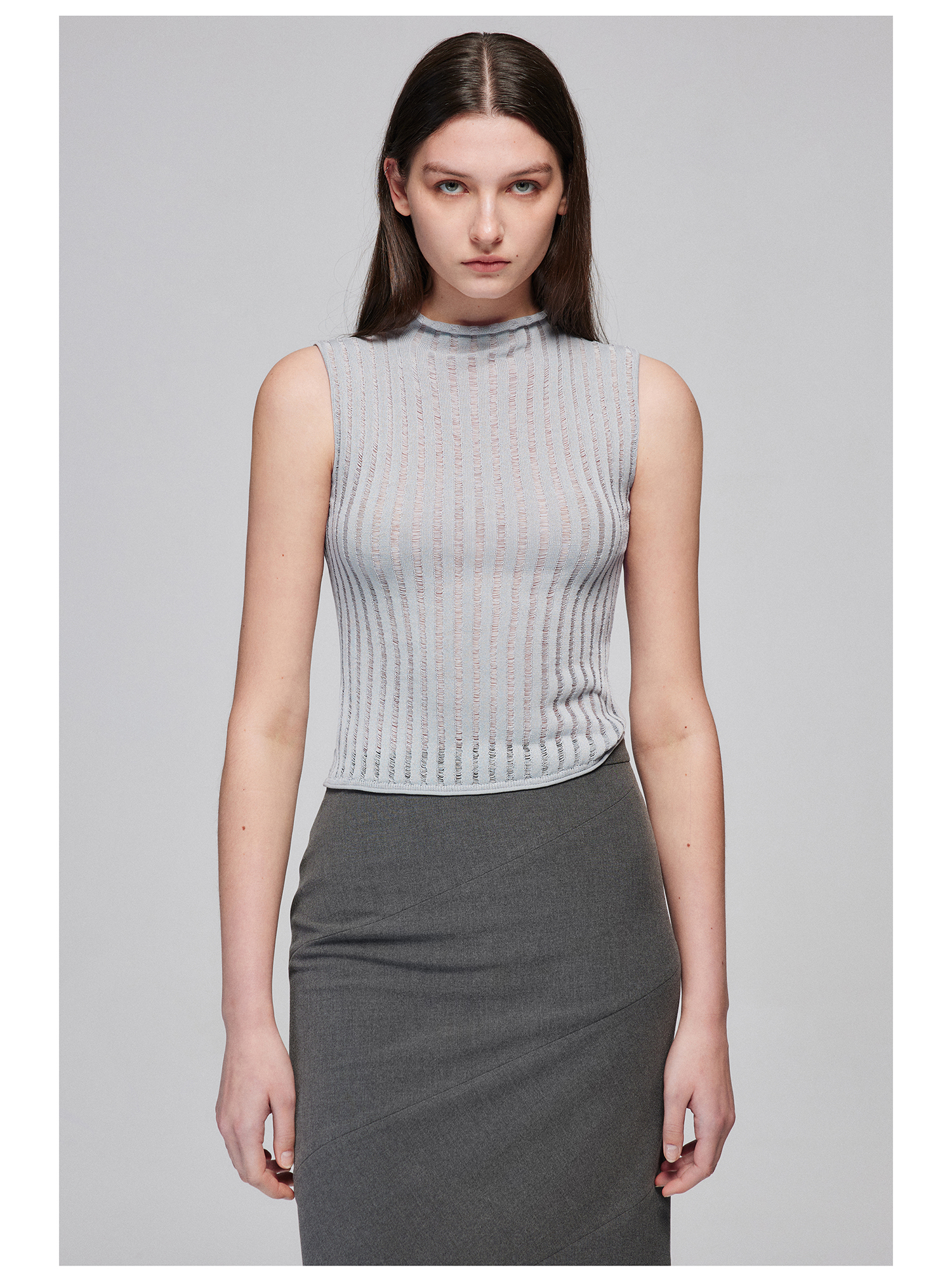 Simple Project/M24106/尼龙混纺坑条针织高领卷边短款紧身背心