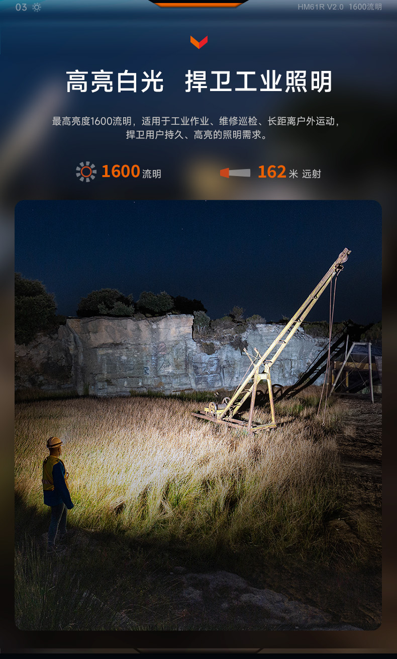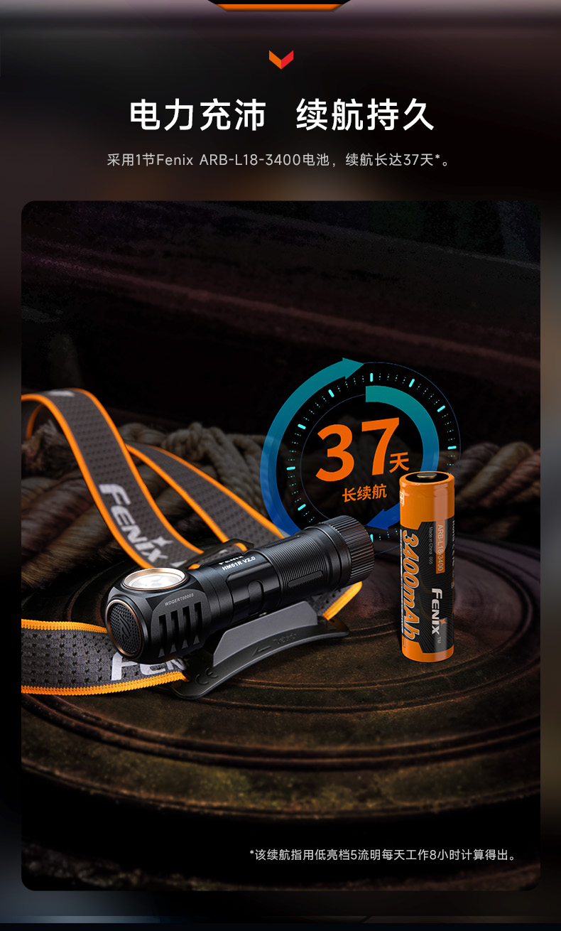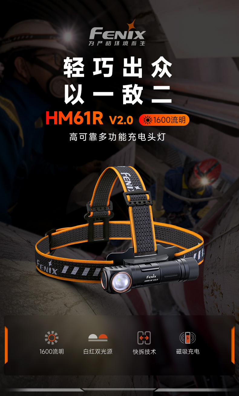 Fenix菲尼克斯HM61R V2.0头灯强光充电超亮18650电池长续航头戴工业灯