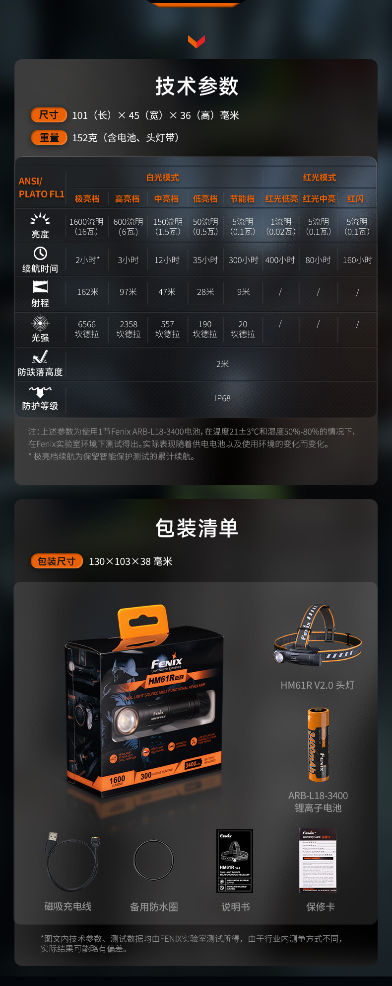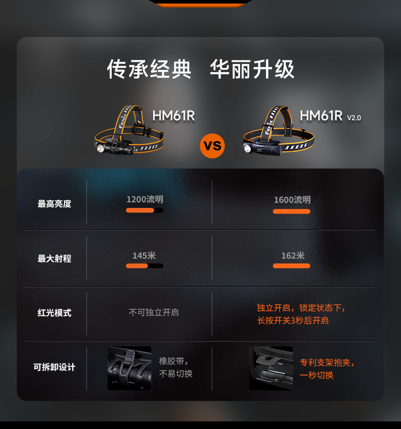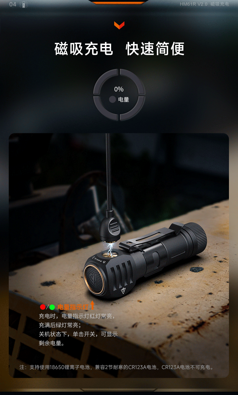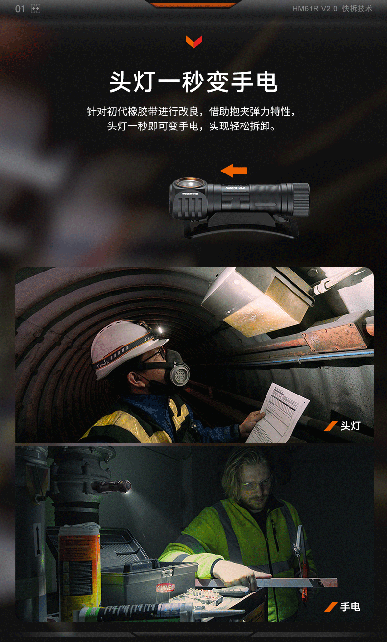 Fenix菲尼克斯HM61R V2.0头灯强光充电超亮18650电池长续航头戴工业灯