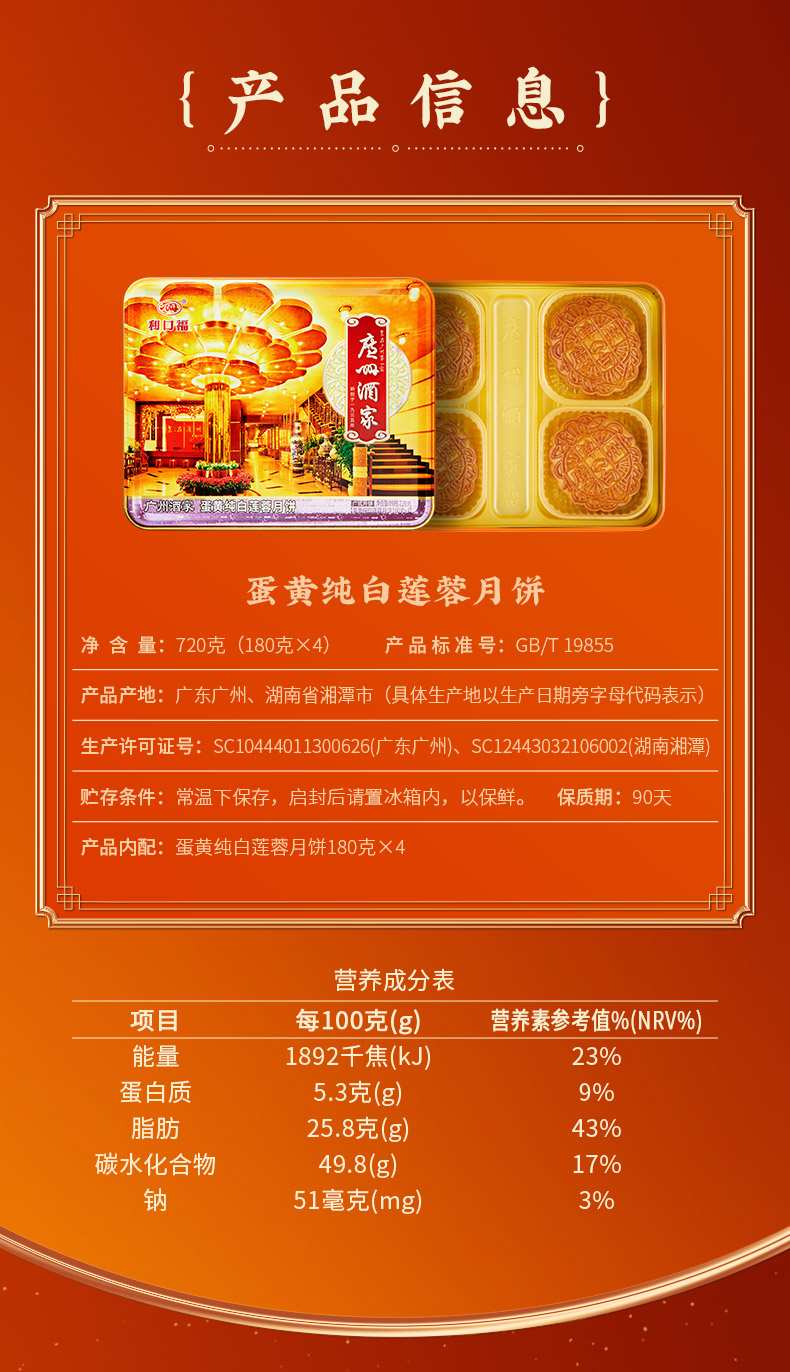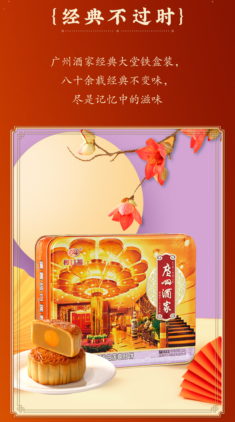 广州酒家 蛋黄纯白莲蓉月饼礼盒广式铁盒中秋节日送礼品礼物团购
