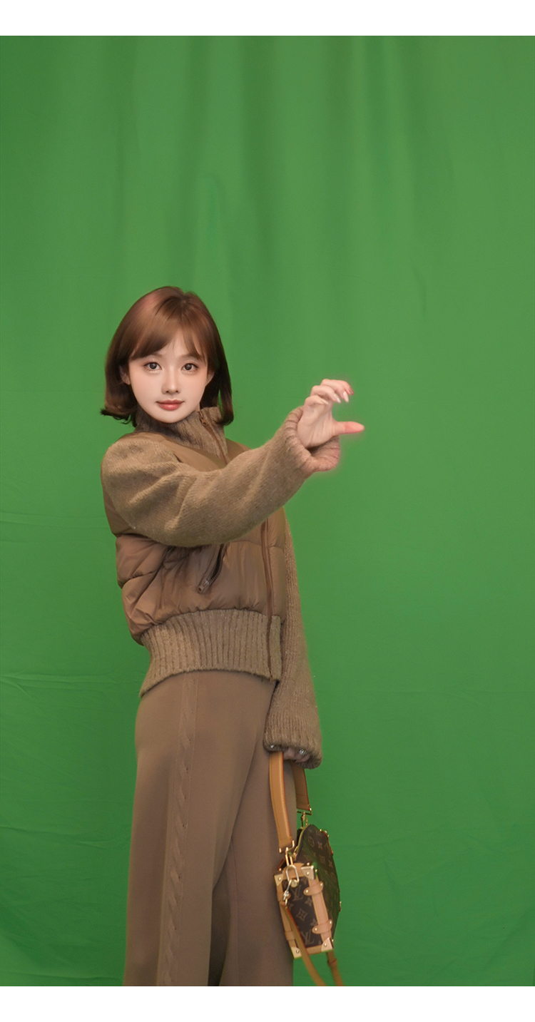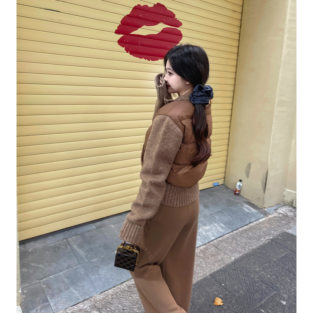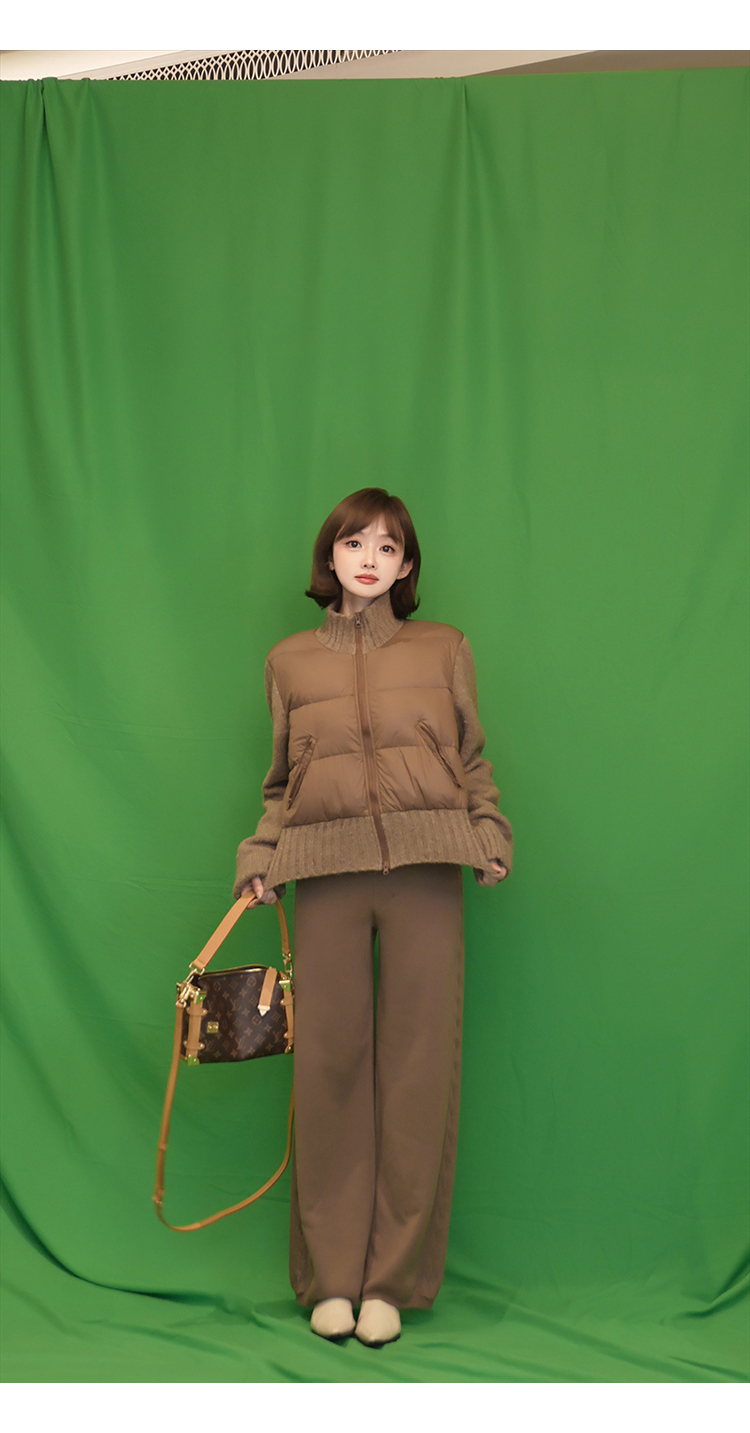 清仓捡漏 【卡布奇诺】LW240491 针织拼接鹅绒服 LH240190 针织阔腿裤 套装