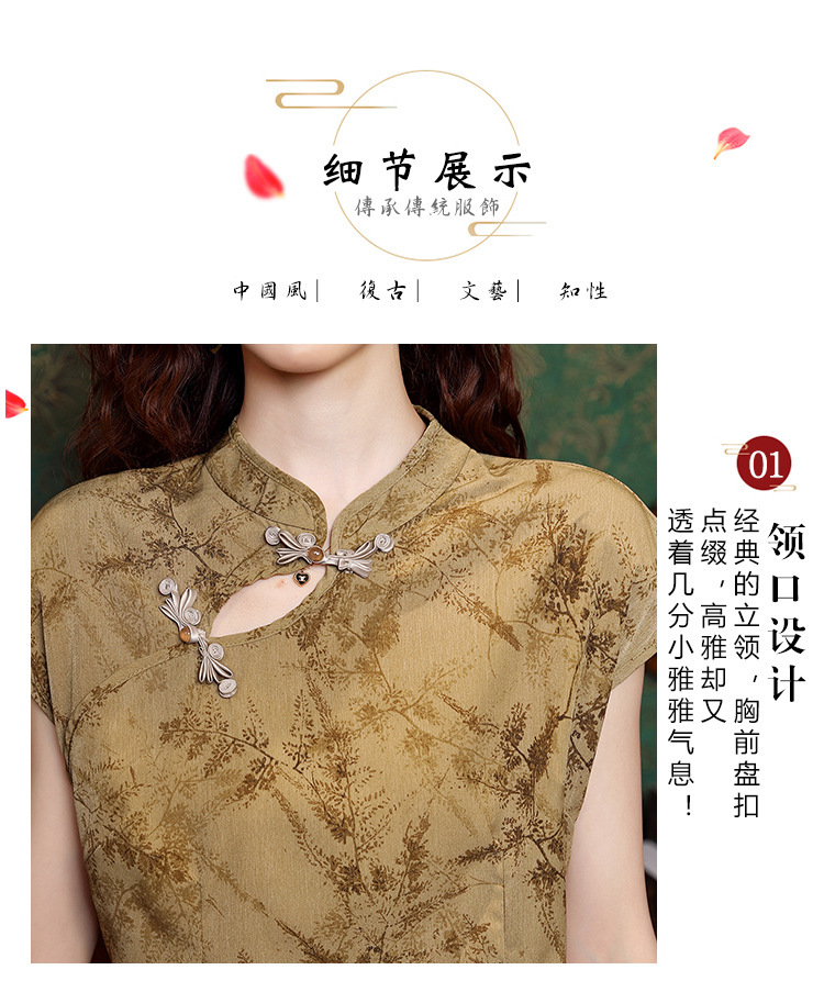 老上海复古国风丝绒旗袍,大摆裙秋冬新款改良新中式中老年旗袍GX-22218
