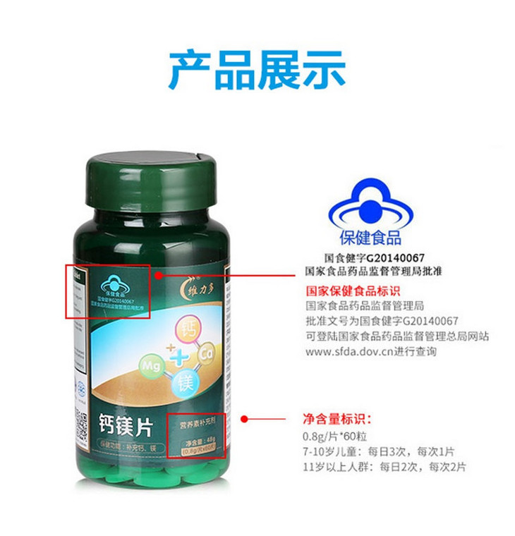 【一般贸易】【授权商品】维力多钙镁片 补充钙、镁60片*800mg