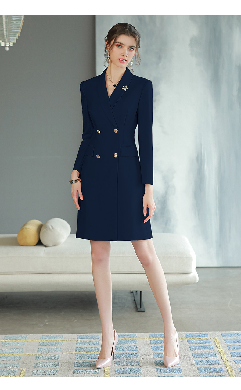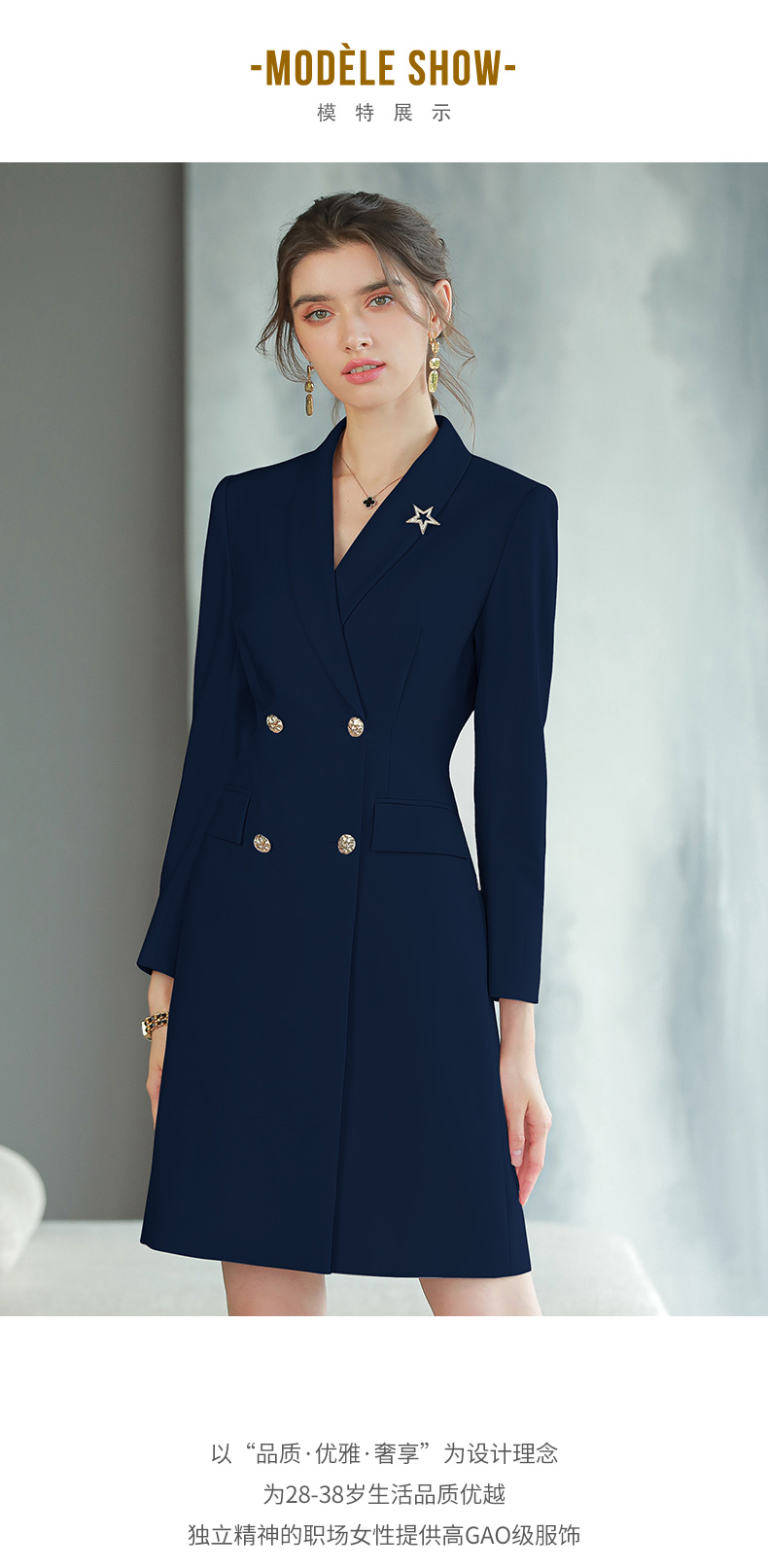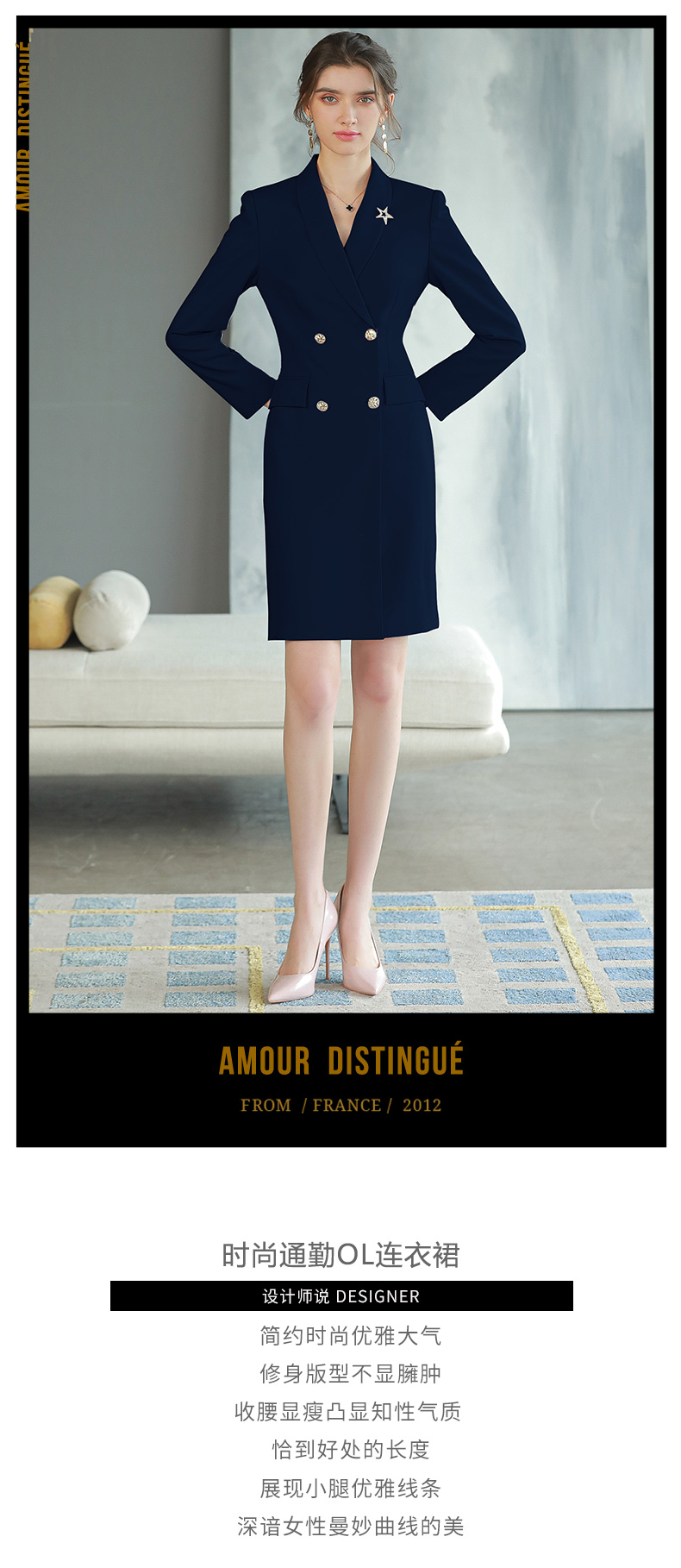 IWY/新款高端工作服职业气质女藏青色主持人上镜连衣裙美容院工作服Q768