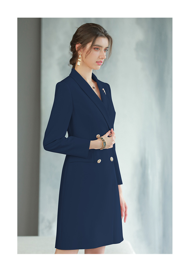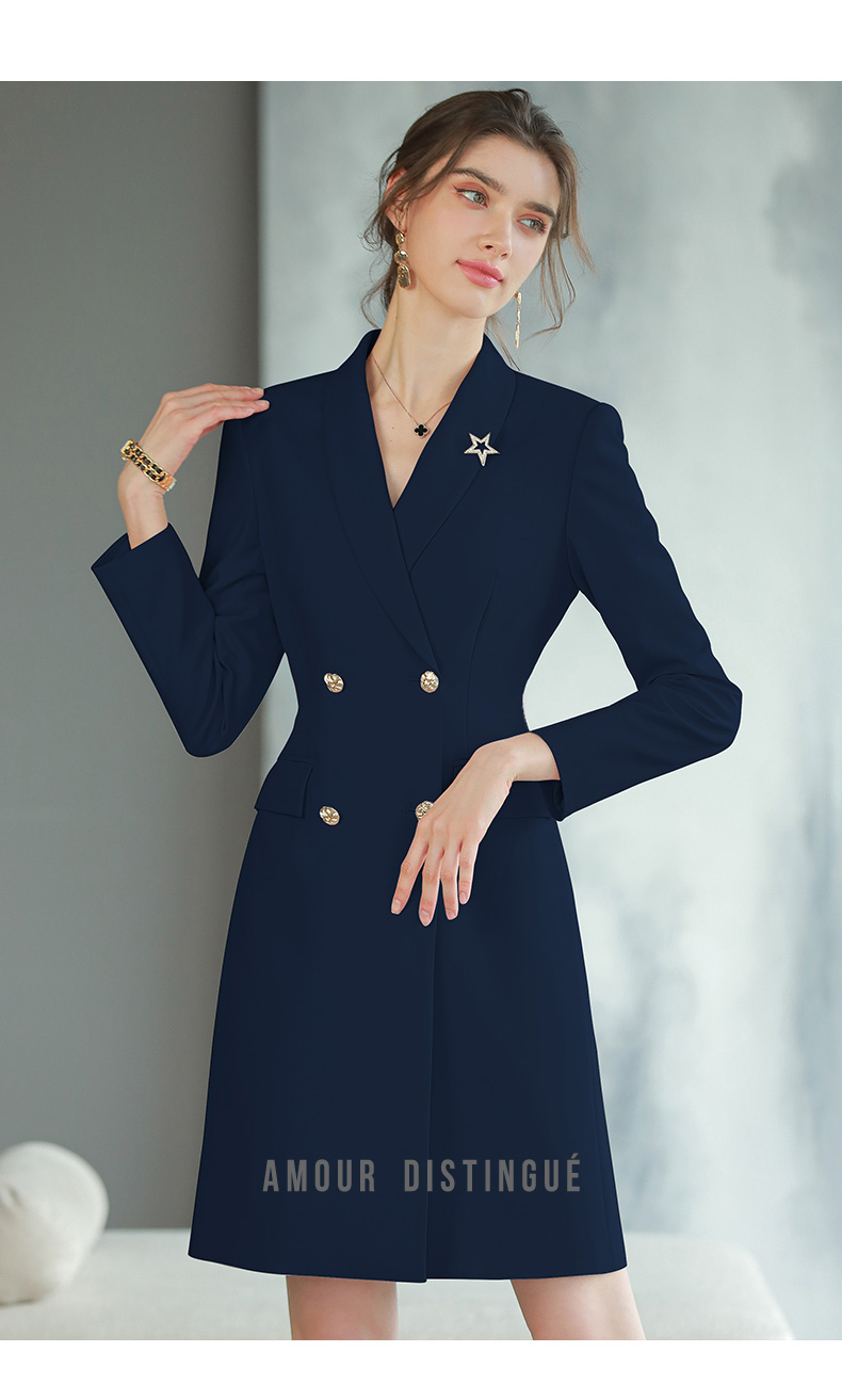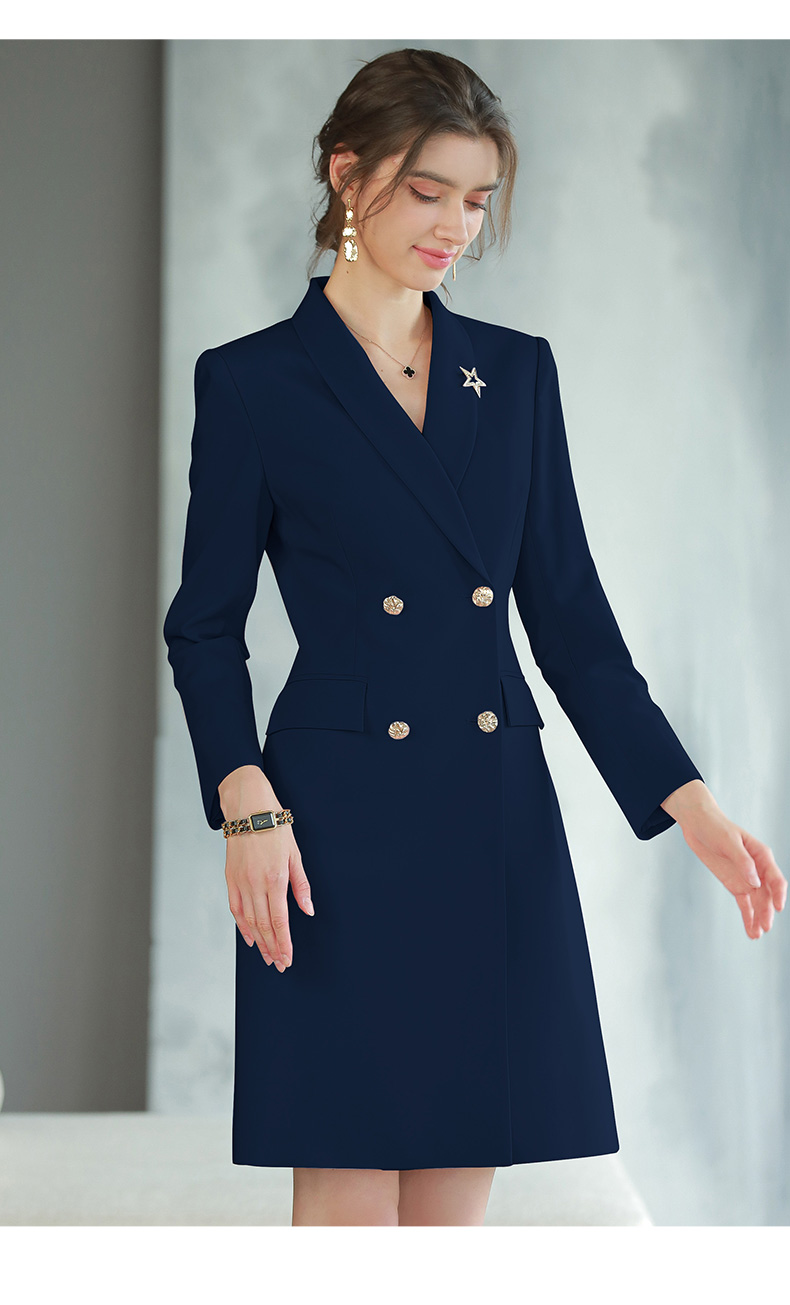 IWY/新款高端工作服职业气质女藏青色主持人上镜连衣裙美容院工作服Q768