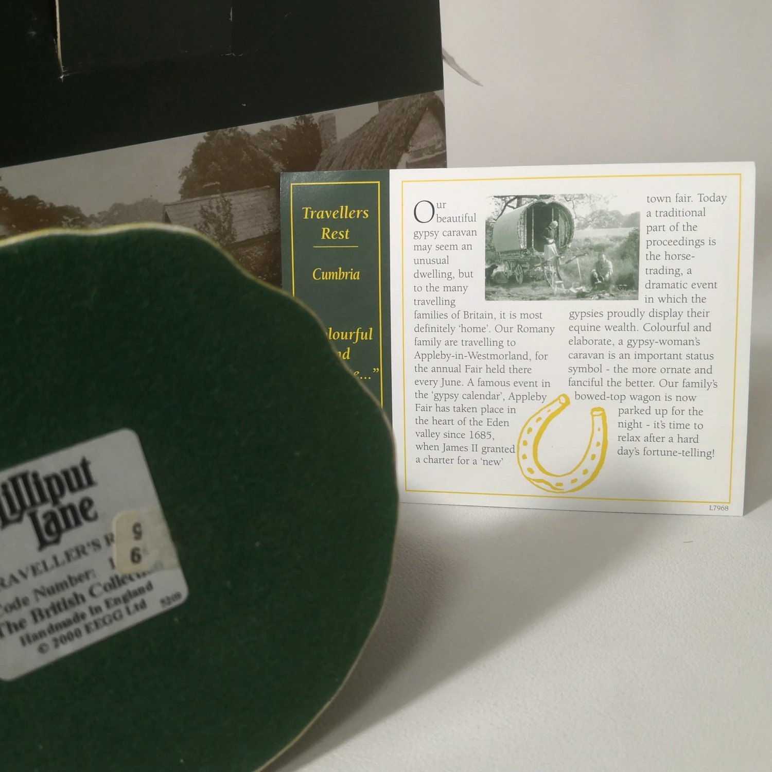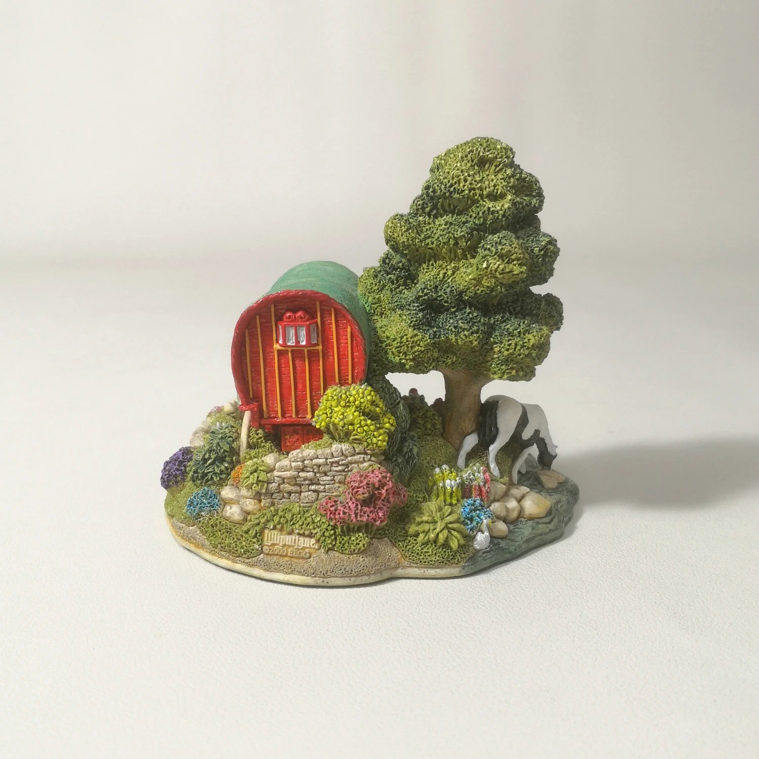 旅者的休息 英国Lilliput lane 2000年微缩建筑疲惫的旅人在途中寻处歇息,马儿低头喝着清澈的流水,画面宁静和谐。宽10cm,高9cm