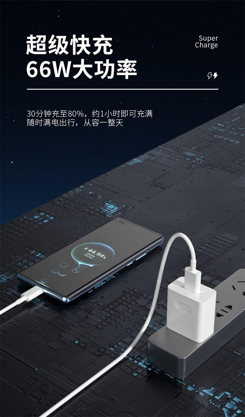 适用于华为荣耀手机66W/100W超级快充充电器闪充头6A快充线数据线