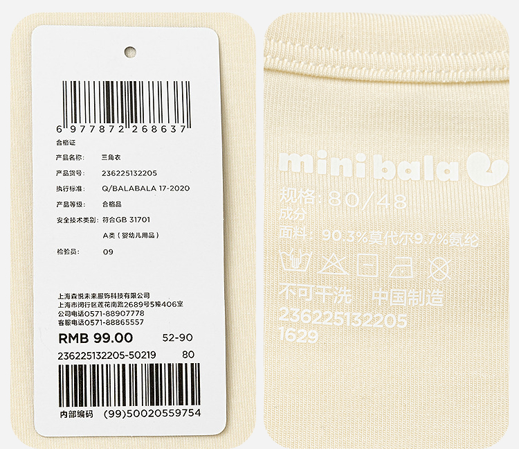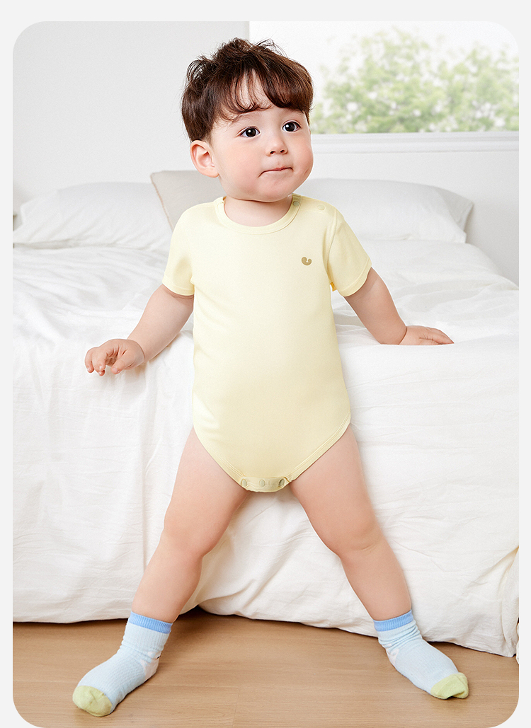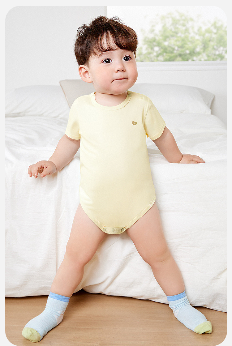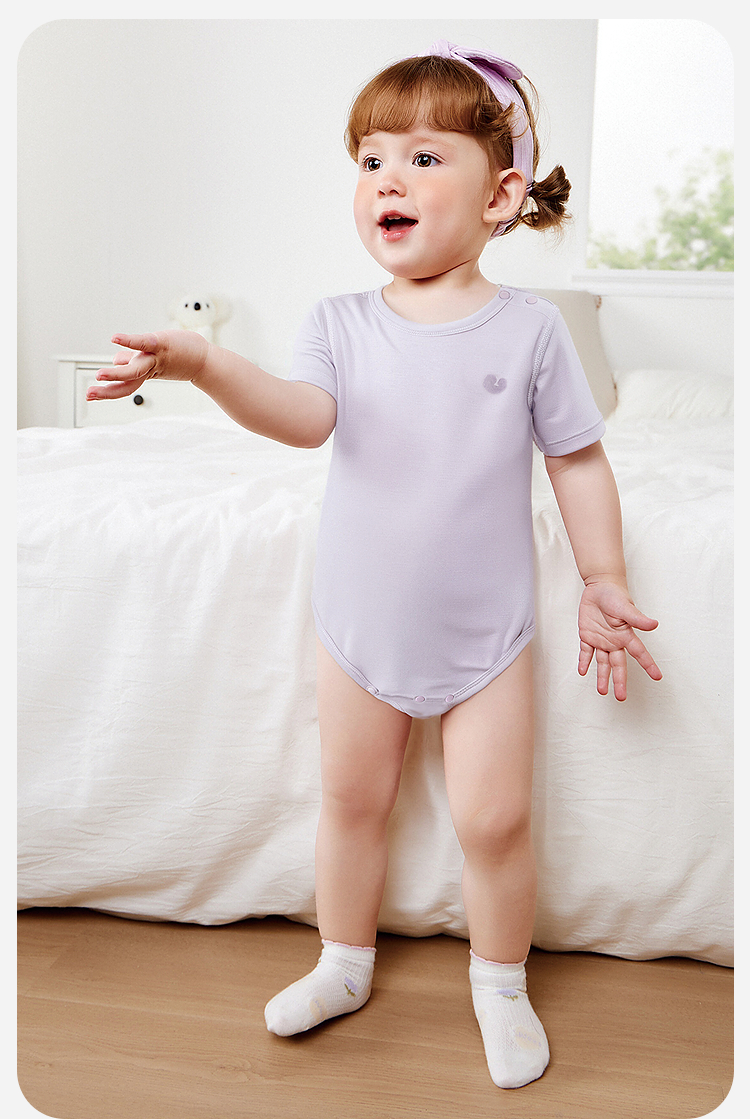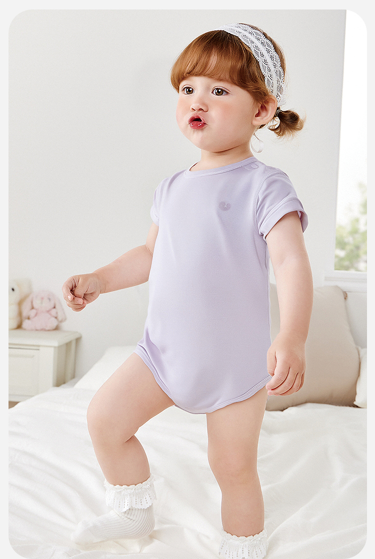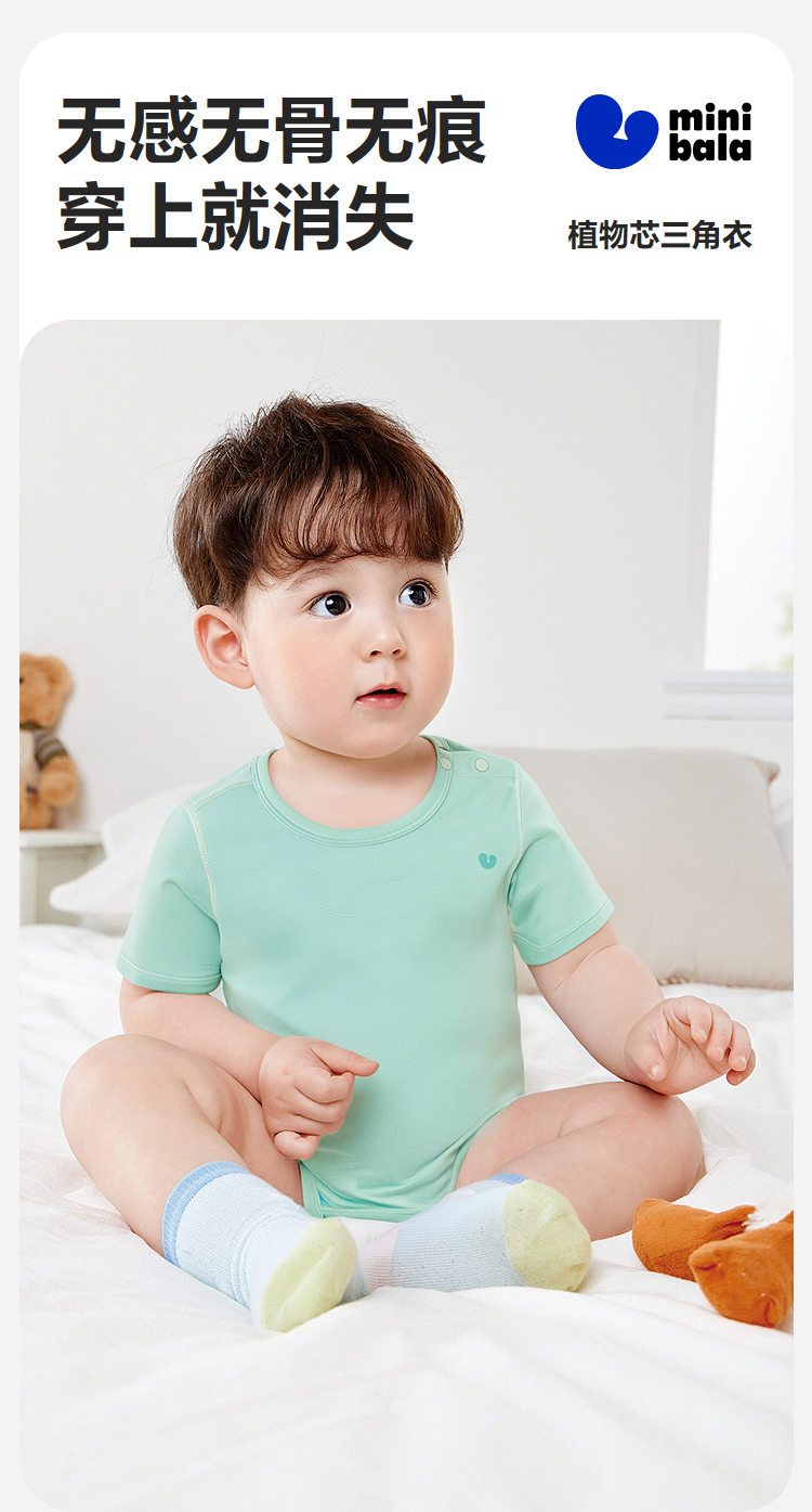 迷你巴拉新生婴儿爬服透气无痕不闷汗宝宝天丝莫代尔三角衣