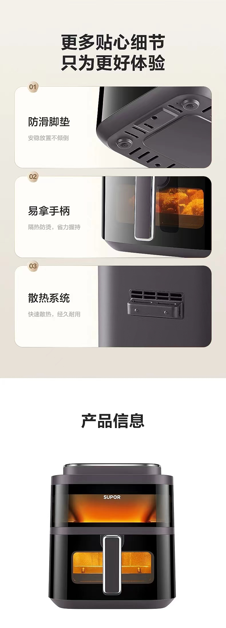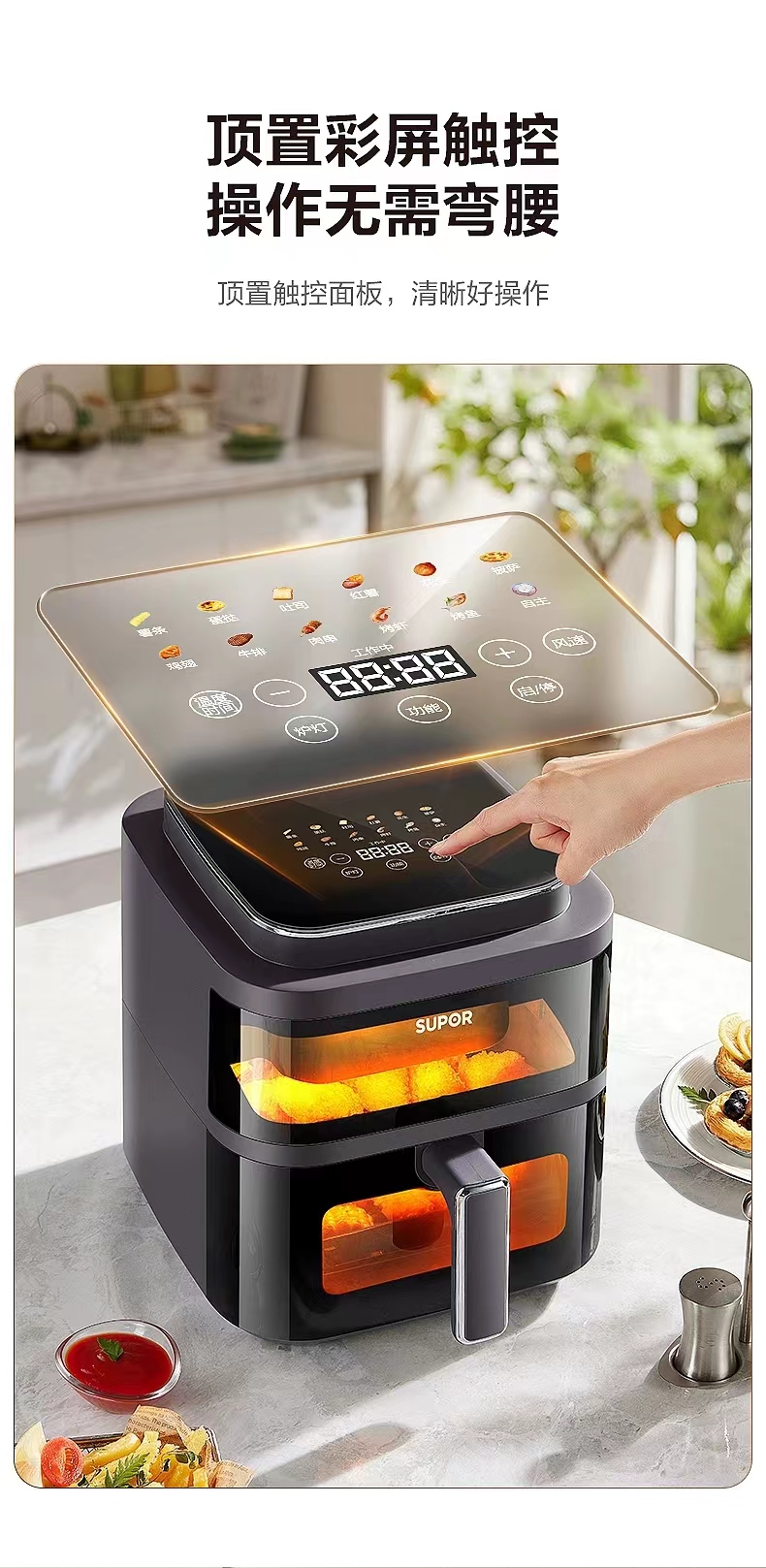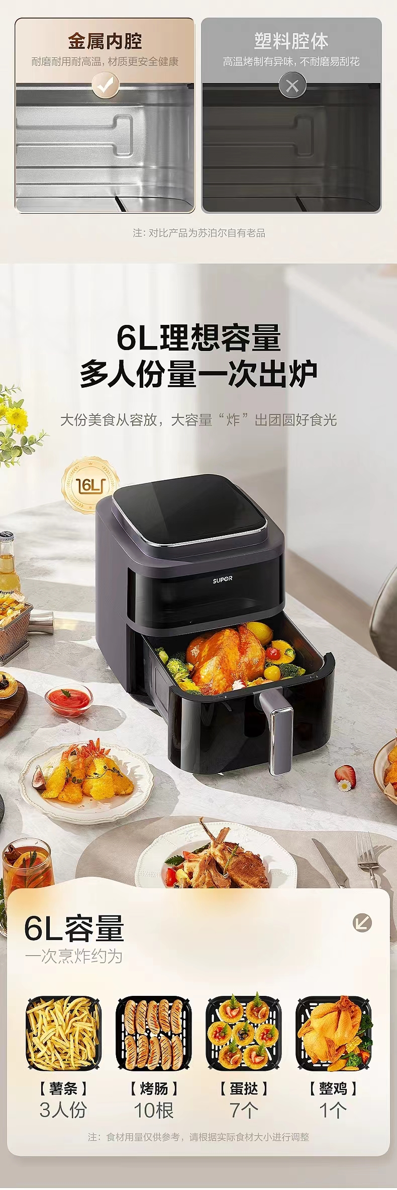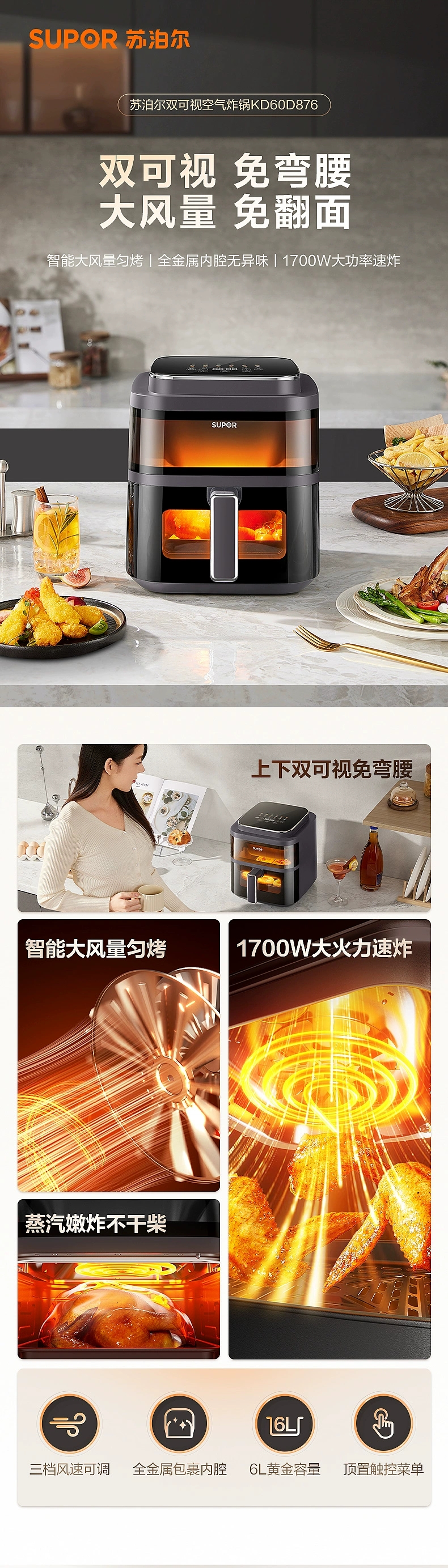 四箱礼/奶粉用量半年:苏泊尔SUPOR免翻空气炸锅(KD60D876 6L上下双可视)(天友A2/启辉绵羊奶/纽贝能素有机绵羊奶:专属礼品)