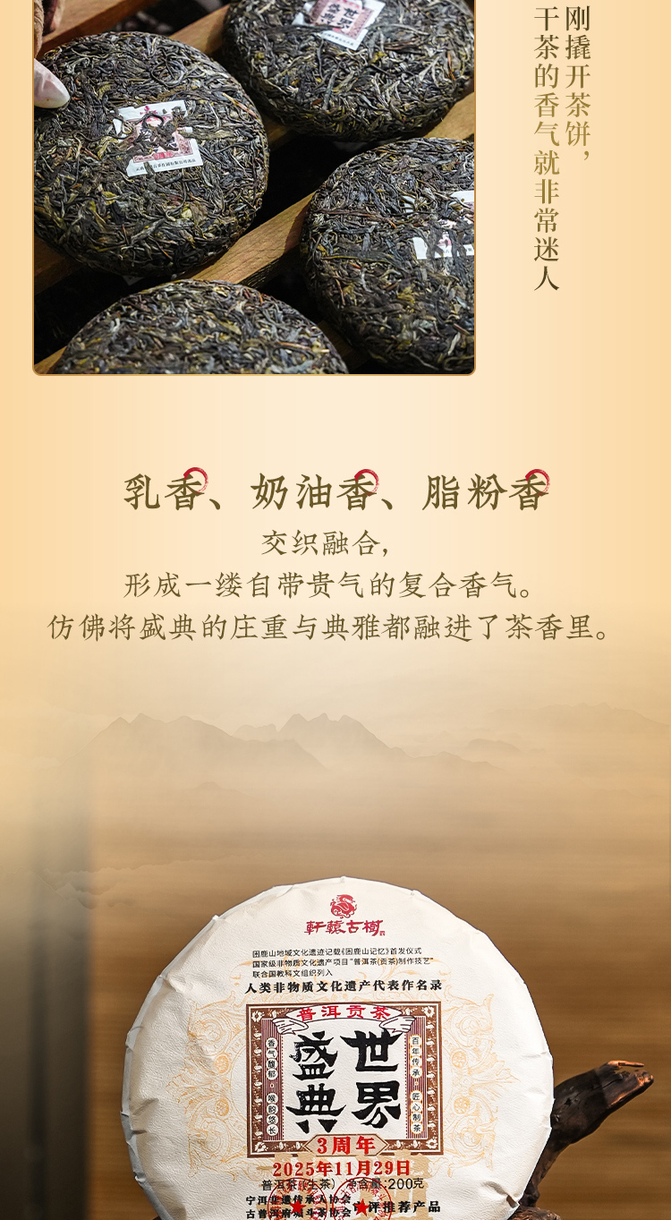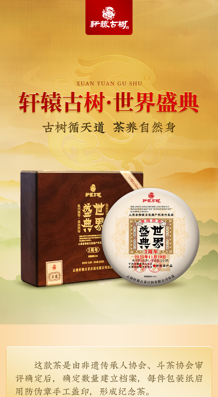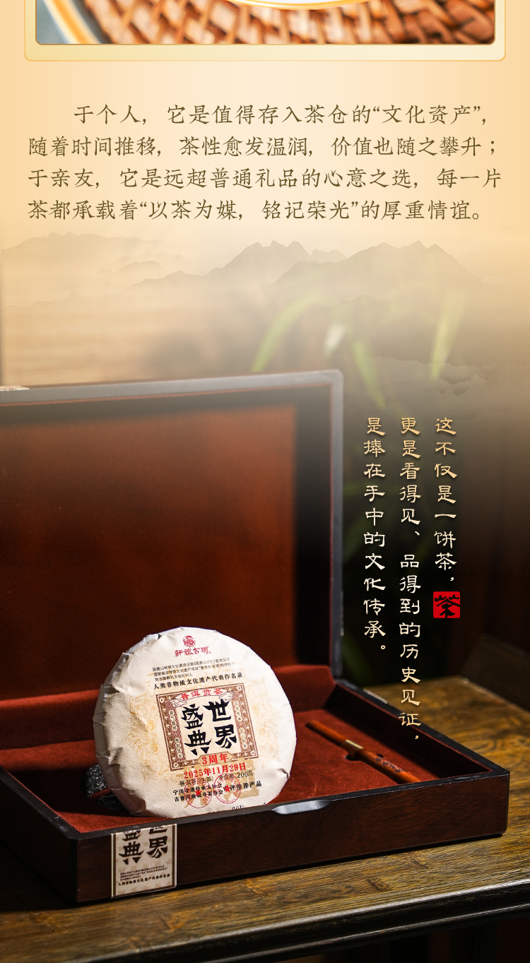 【世界盛典】《困鹿山记忆》首发仪式暨 “普洱茶(贡茶)制作技艺”列入“人类 非遗名录”3周年“世界盛典”纪念活动纪念饼仅280饼可分享,200克/饼