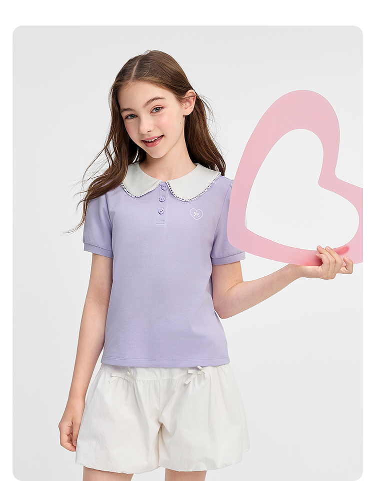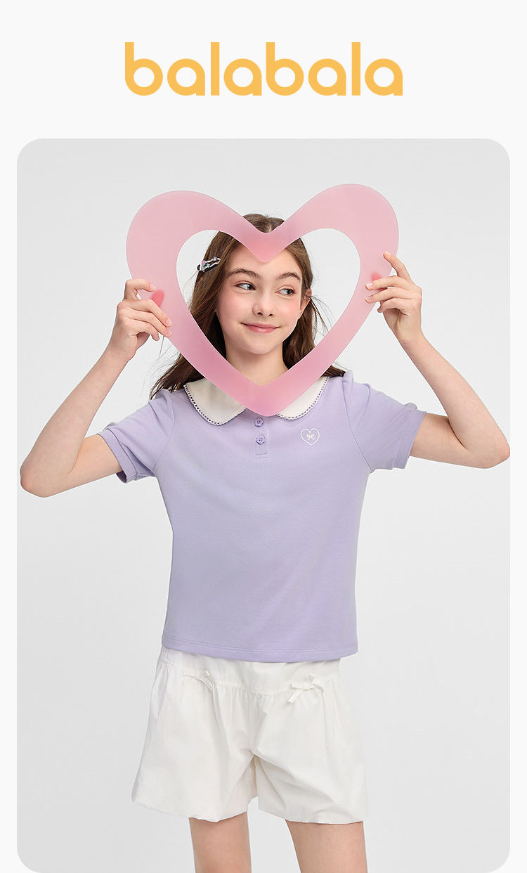 【balaOne】巴拉巴拉童装女童短袖t恤儿童2026新款夏装娃娃领上衣