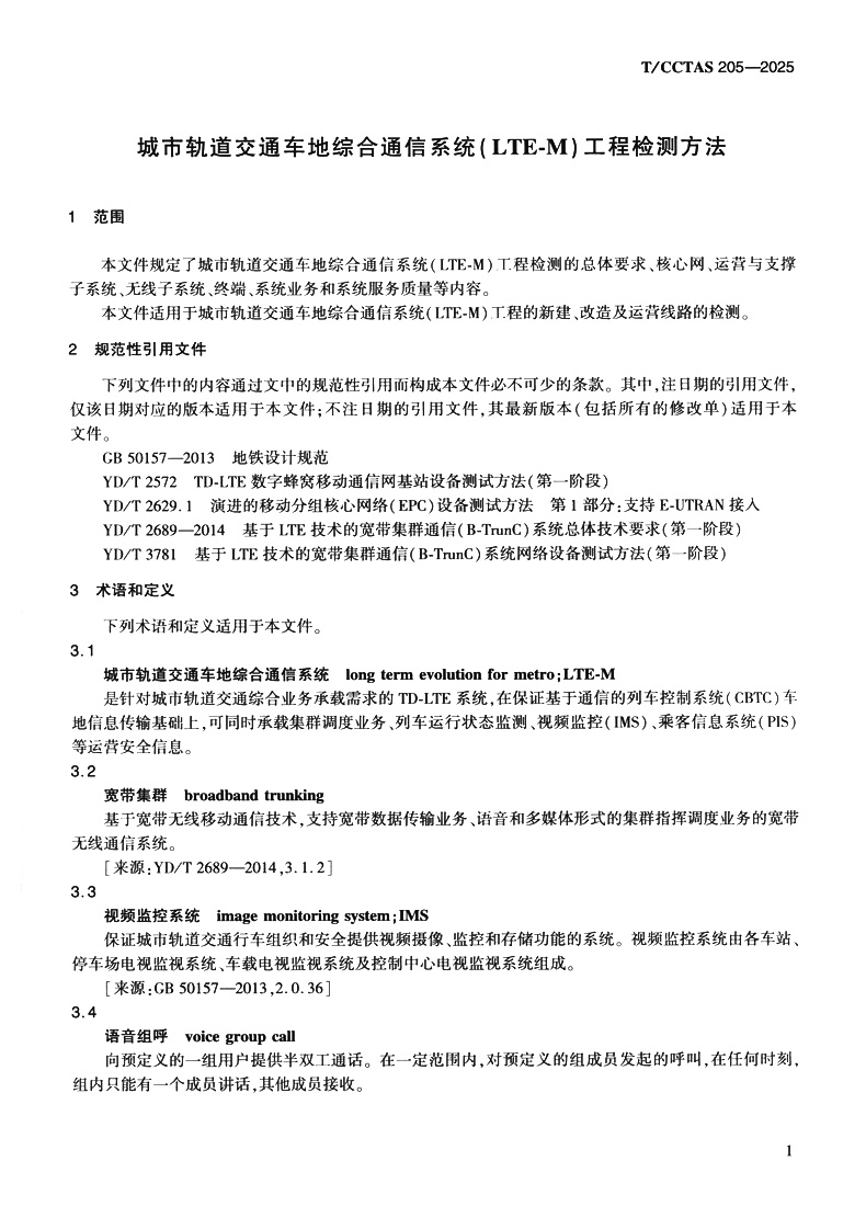 书名:城市轨道交通车地综合通信系统(LTE-M)工程检测方法T/CCTAS 205—2025