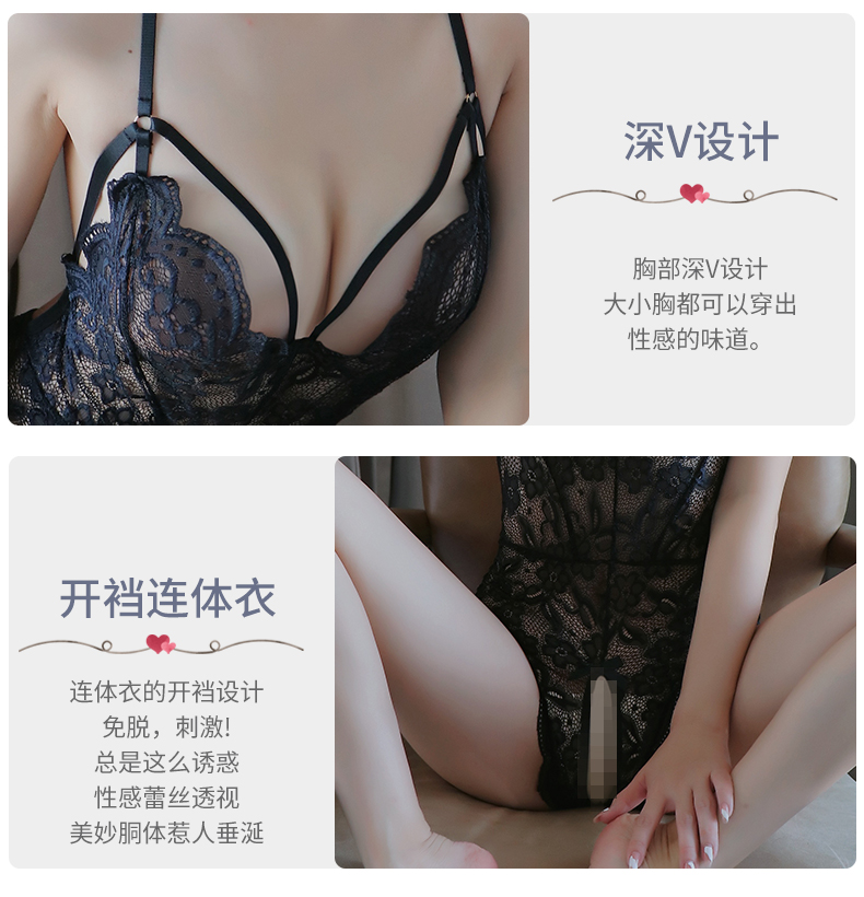 【情趣内衣】透明蕾丝连体衣女 火辣激情 开裆免脱情趣内衣 诱惑制服性感睡衣