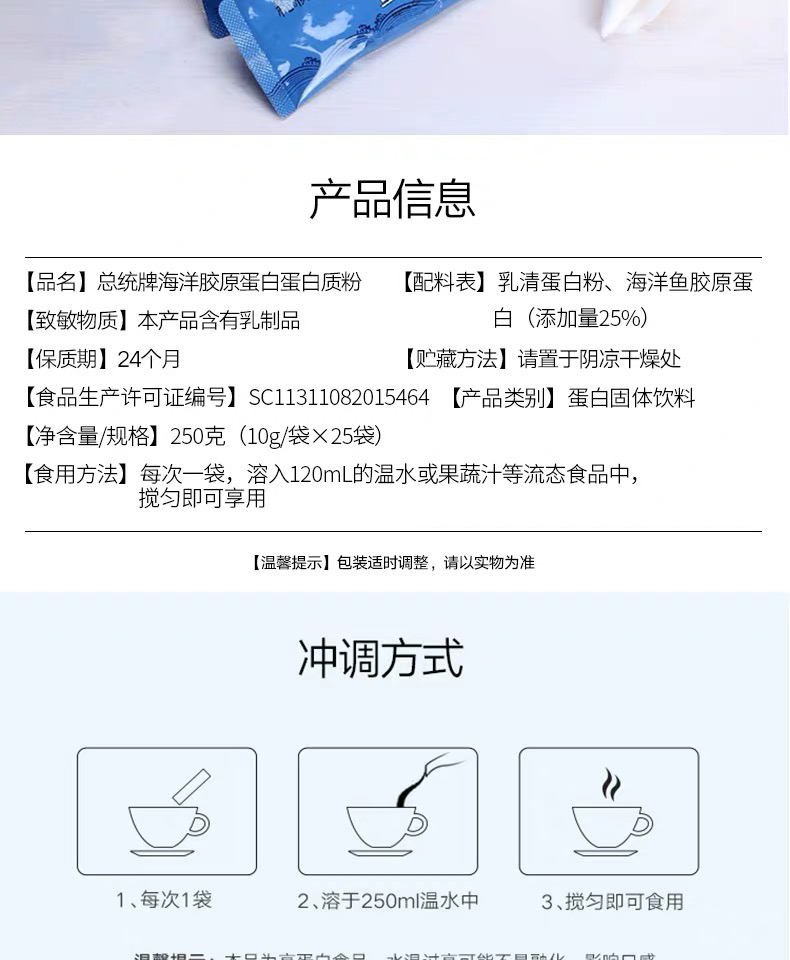品名:总统牌海洋胶原蛋白蛋白质粉