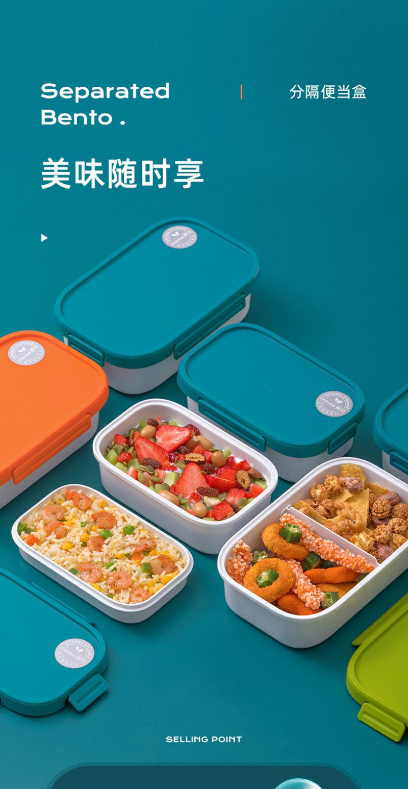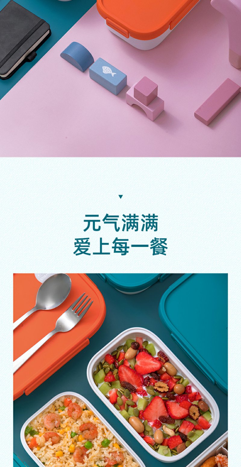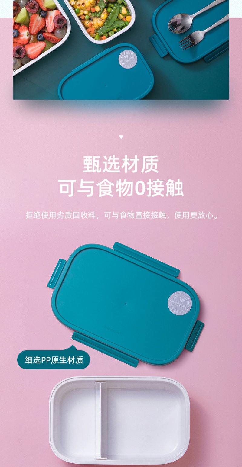 【茶花】双层分隔保鲜盒便当盒塑料学生饭盒上班族分隔密封餐盒收纳