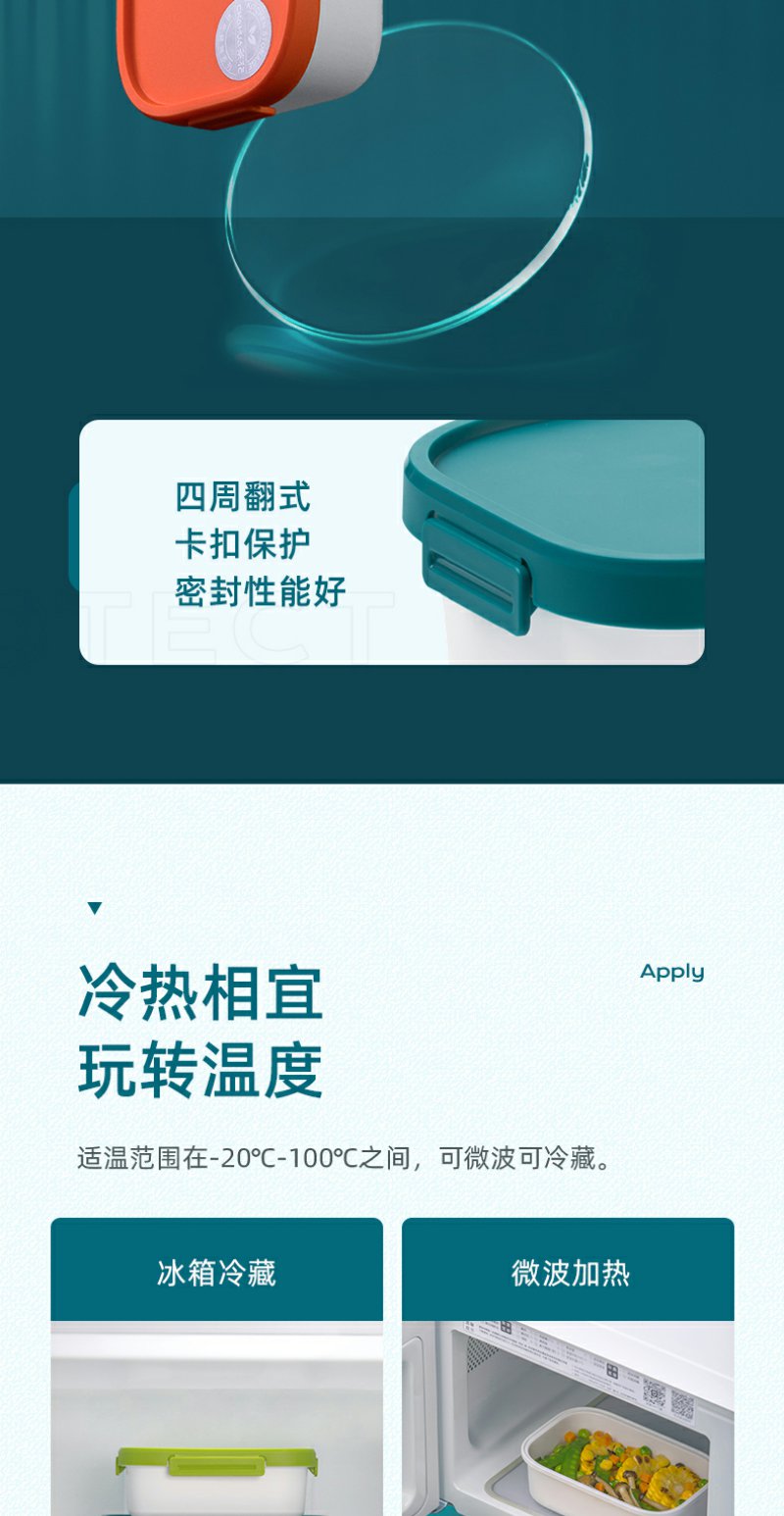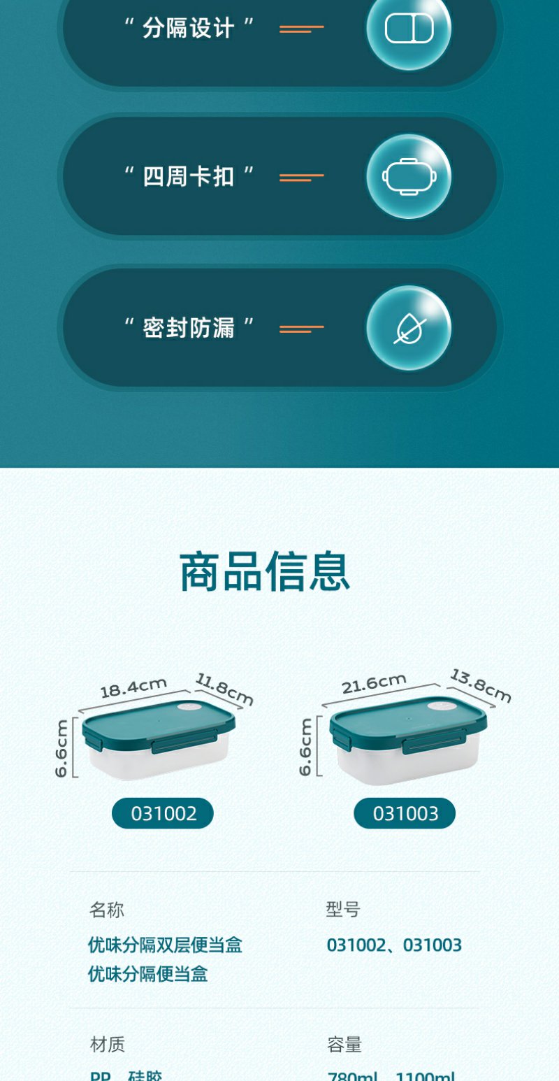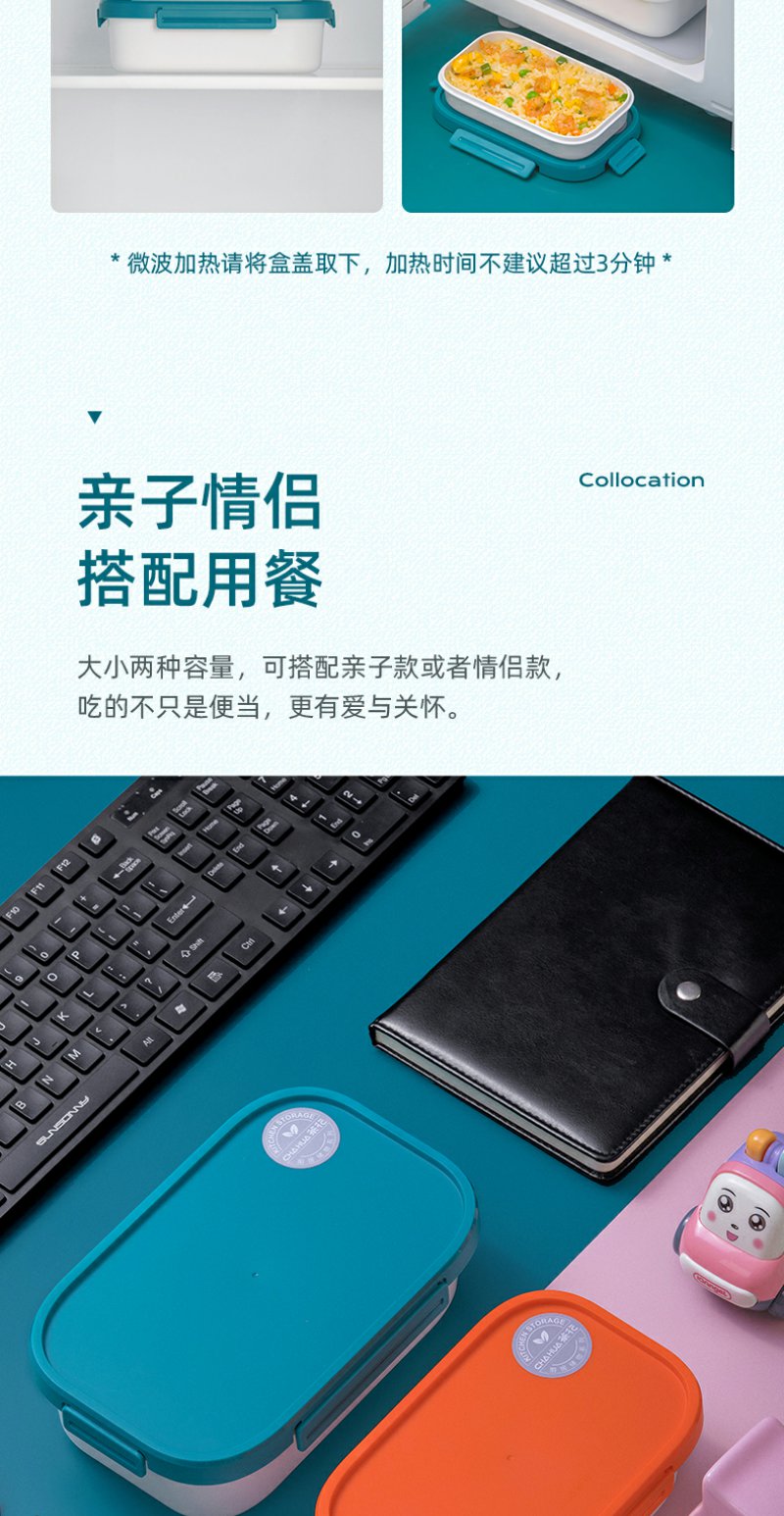 【茶花】双层分隔保鲜盒便当盒塑料学生饭盒上班族分隔密封餐盒收纳