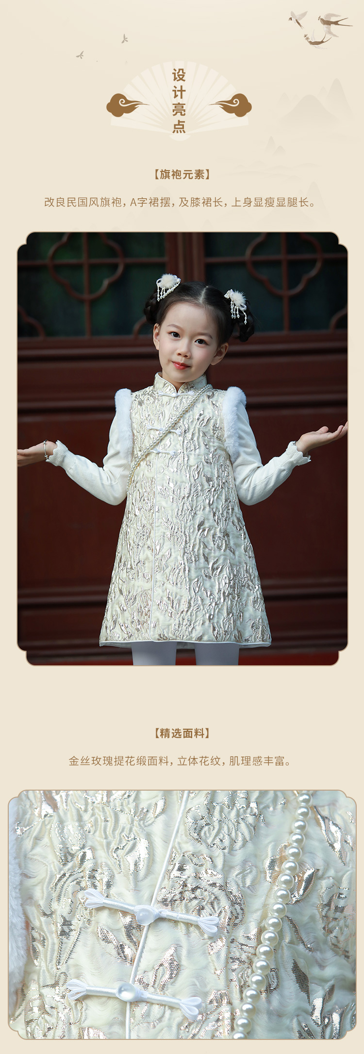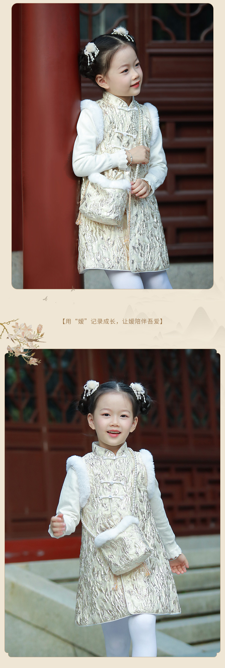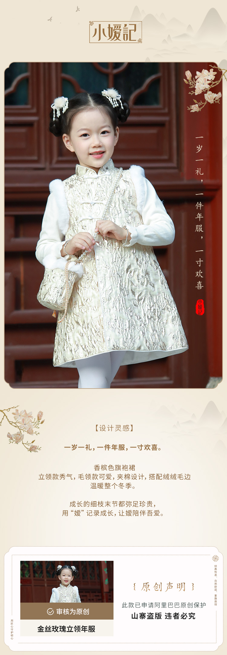 pureshare蓬纱馆 女童拜年礼服中国风宝宝连衣裙保暖冬装绣花洋气-金丝玫瑰毛领年服