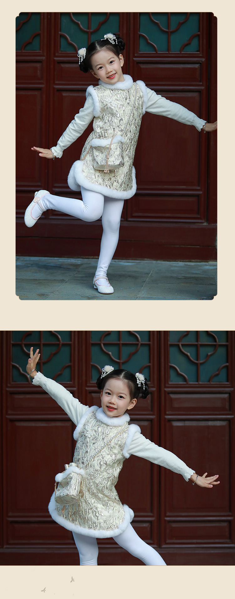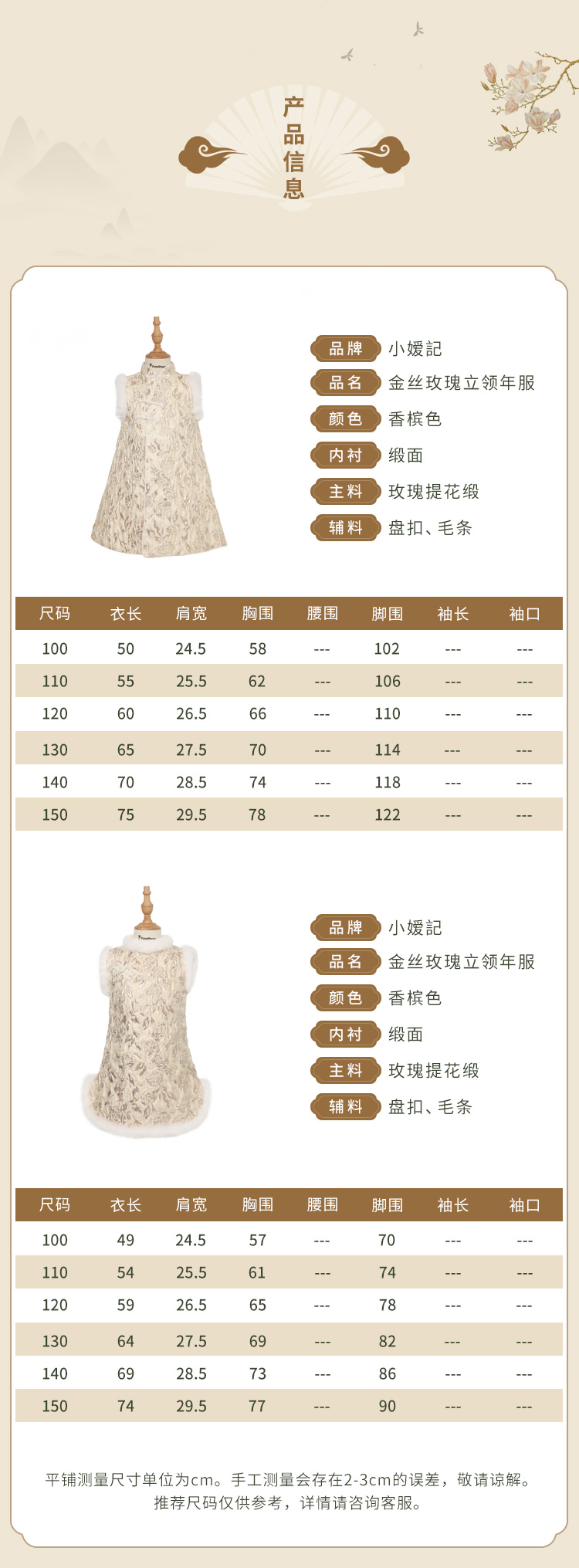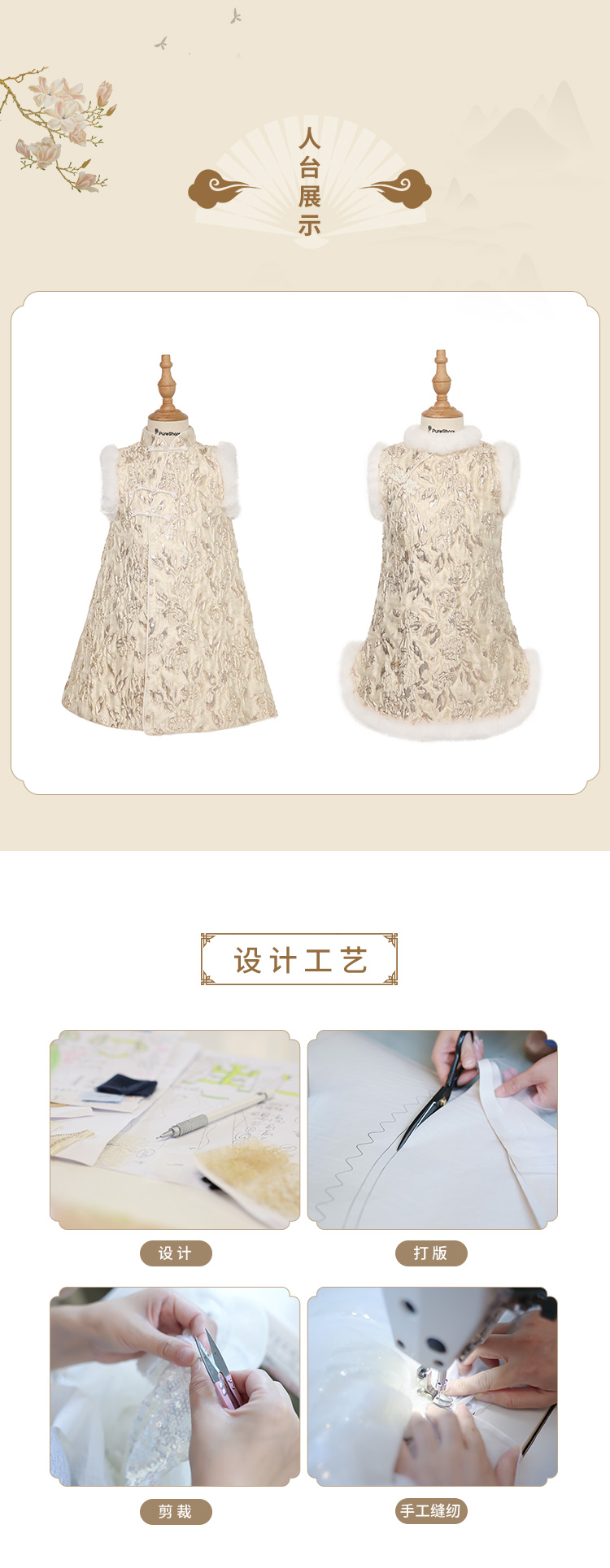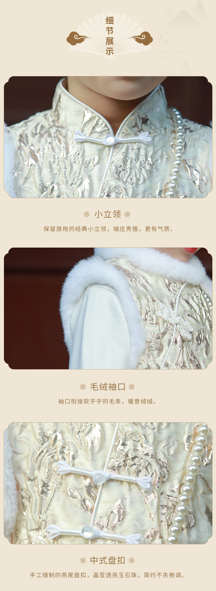 pureshare蓬纱馆 女童拜年礼服中国风宝宝连衣裙保暖冬装绣花洋气-金丝玫瑰毛领年服