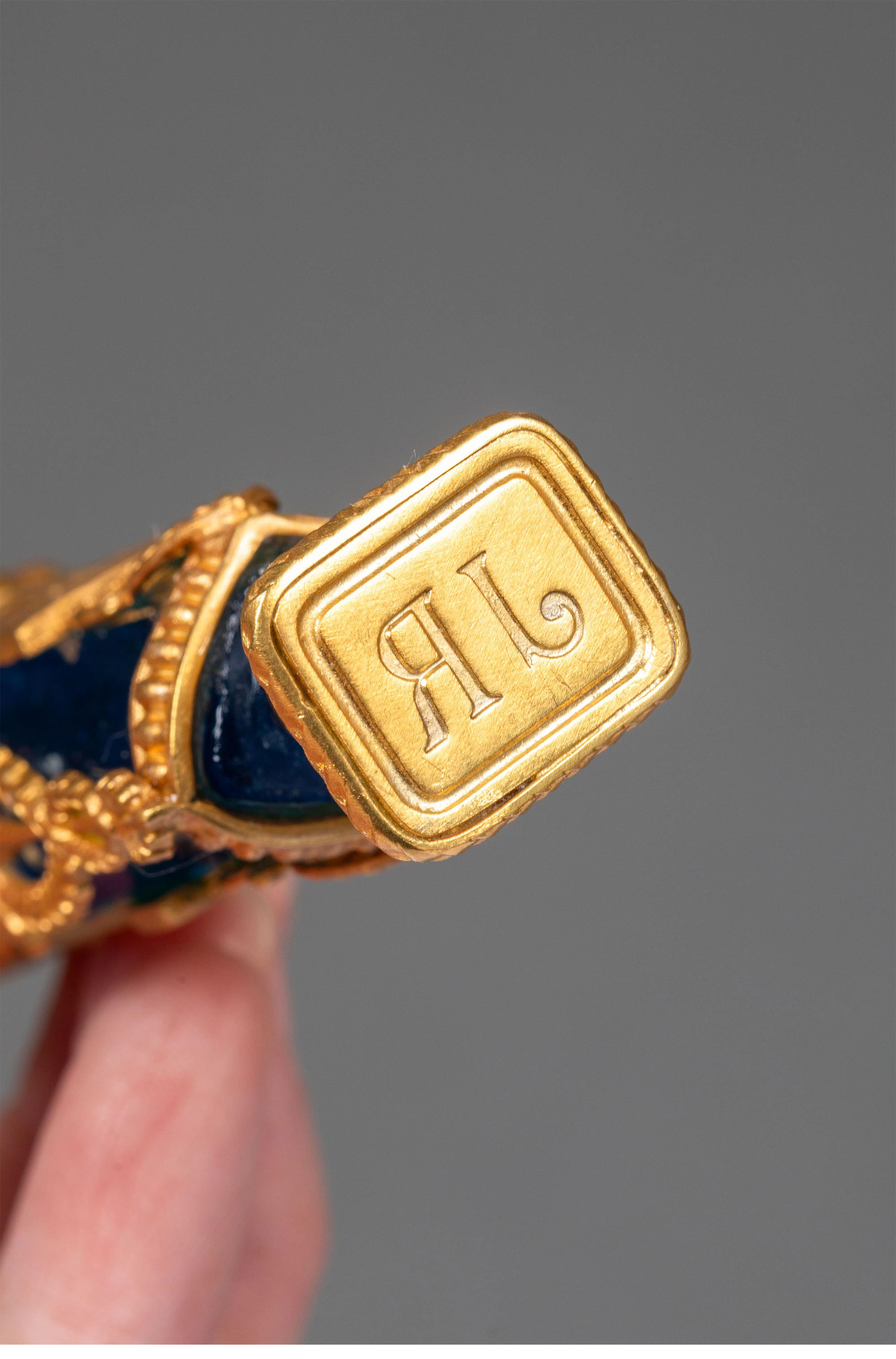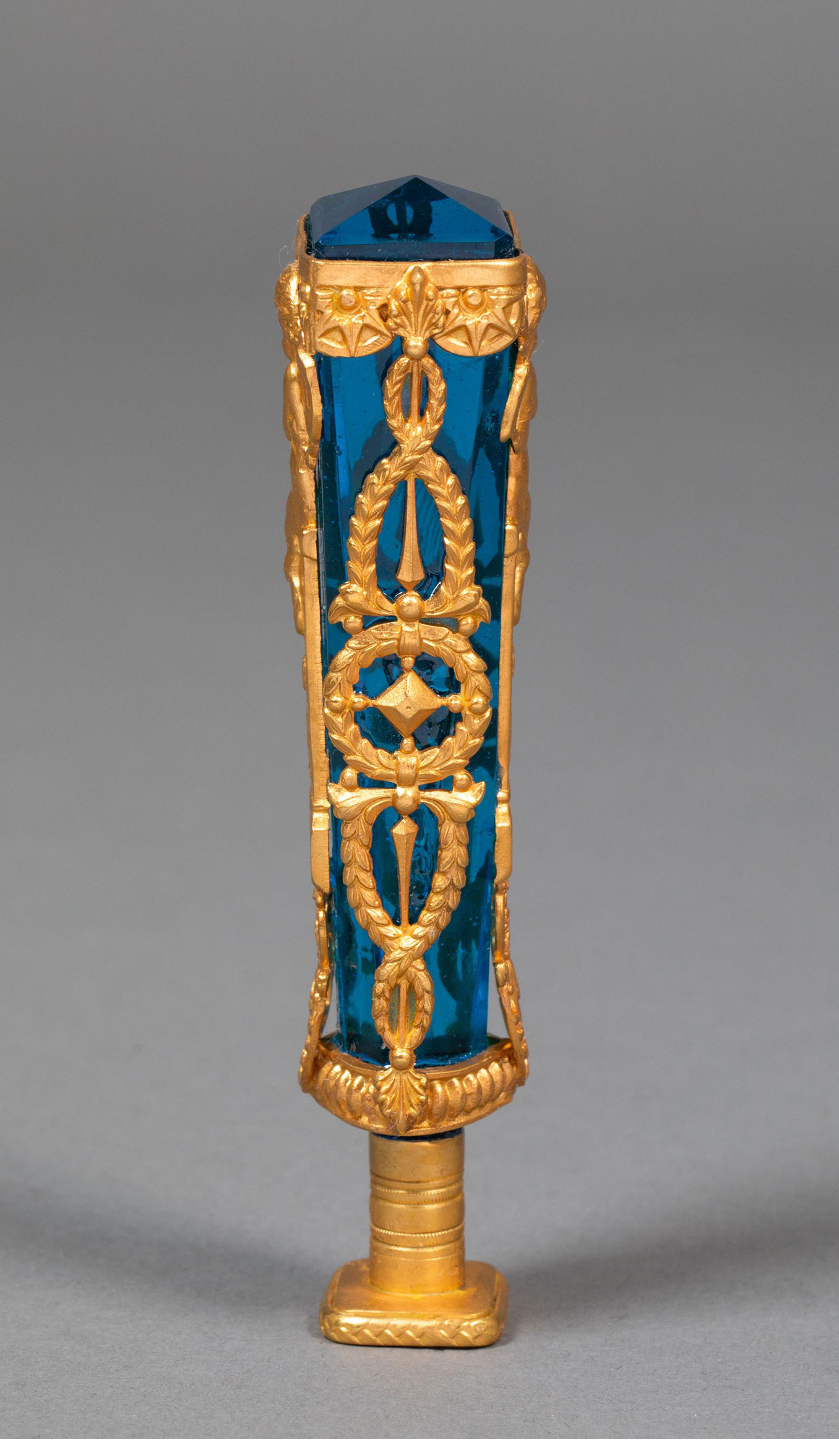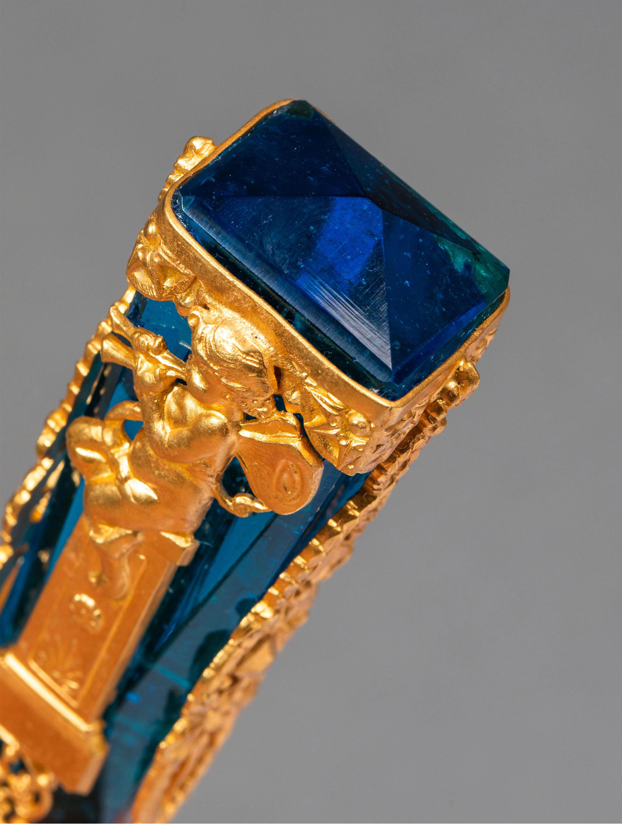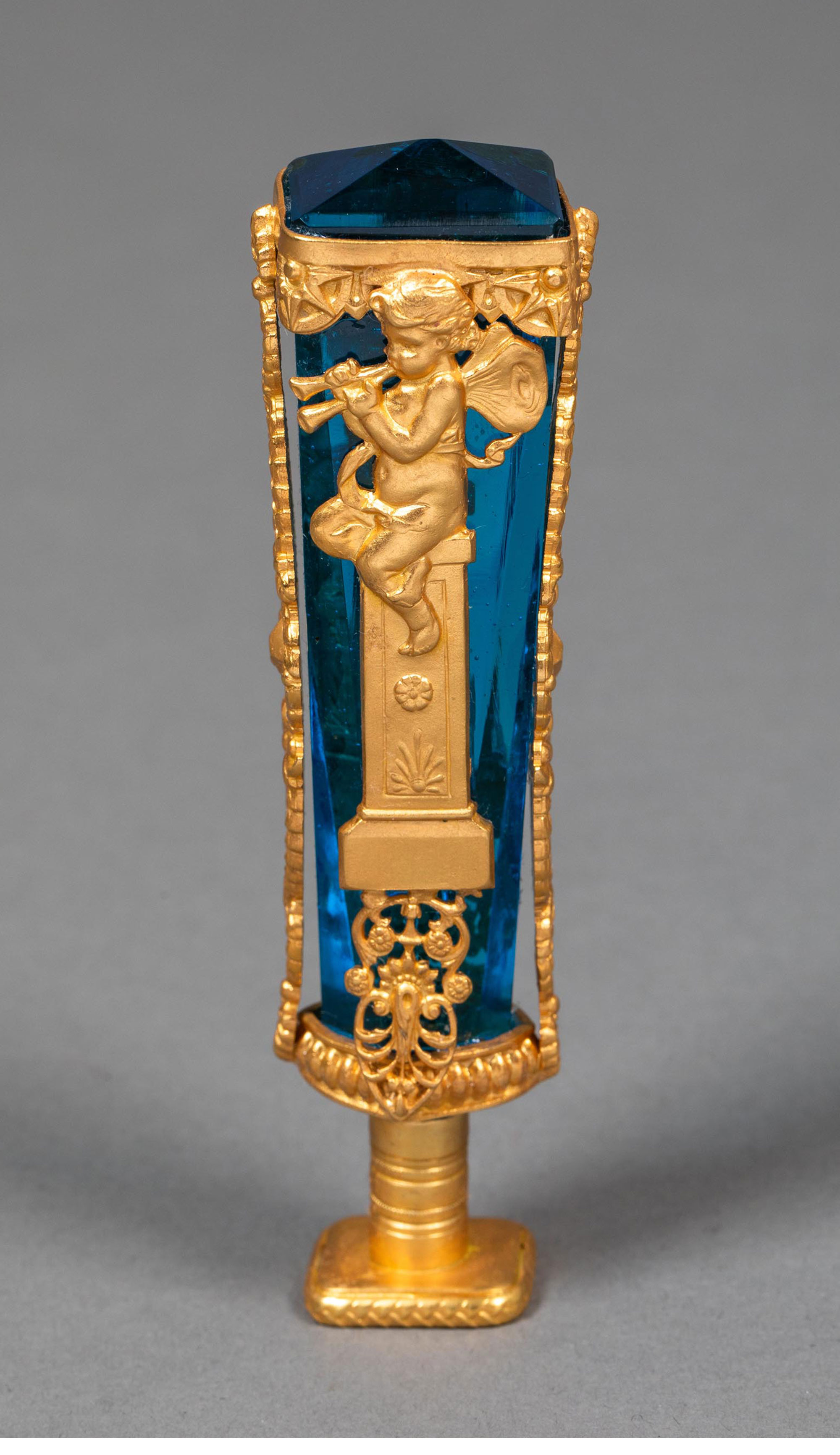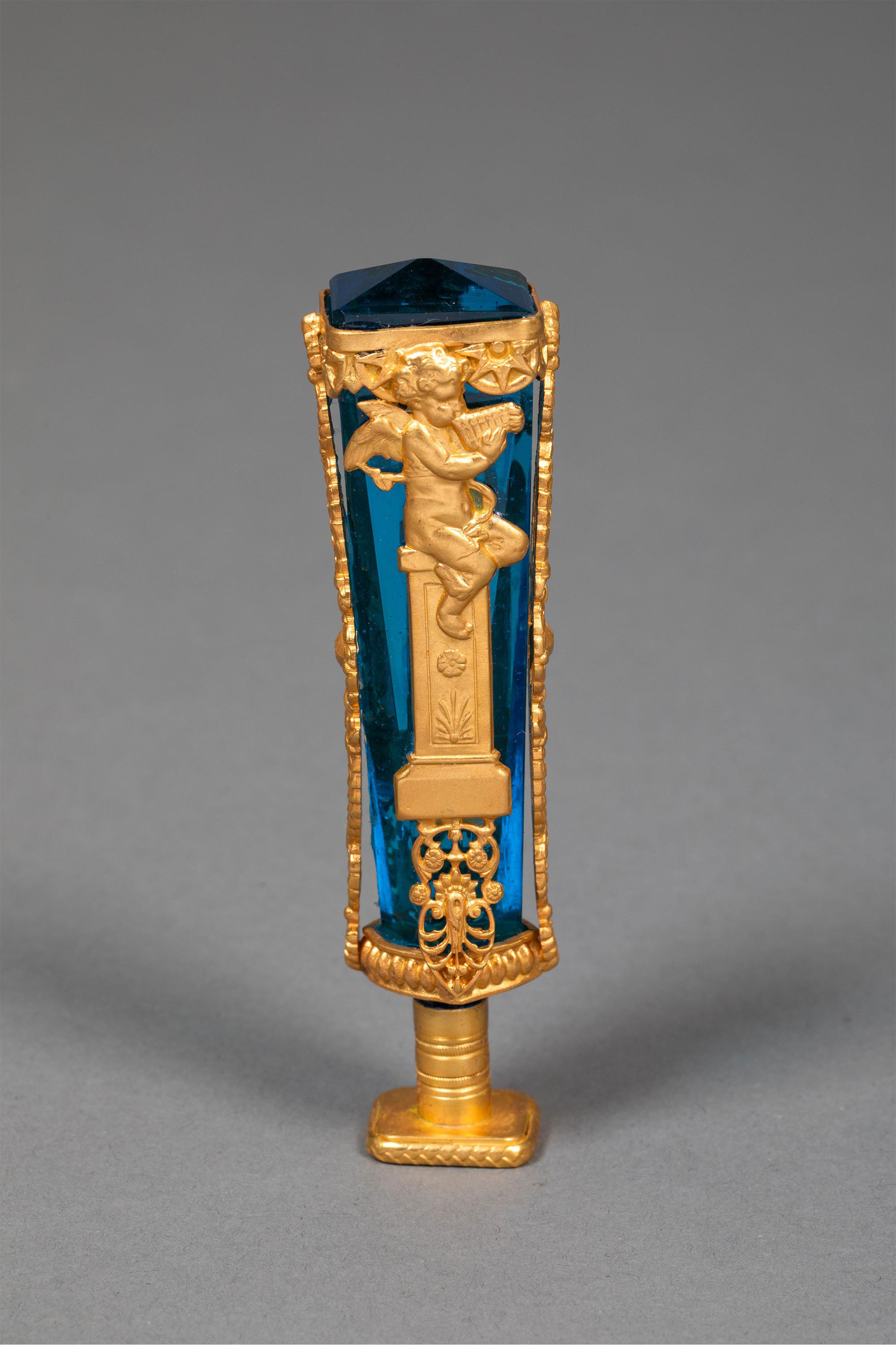19世纪末法国出品新古典主义风格小天使主题铜鎏金精雕镶嵌蓝水晶火漆印章