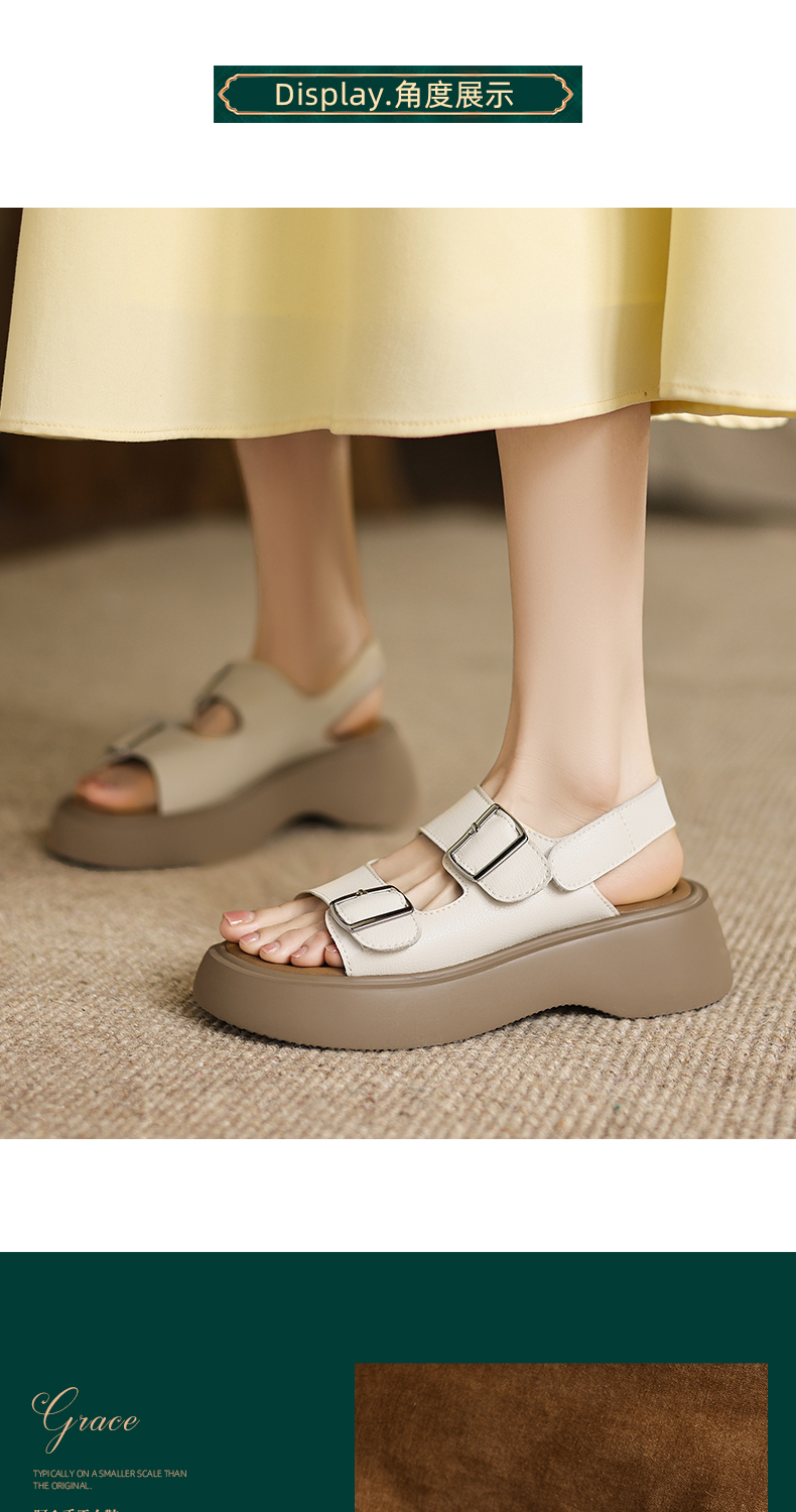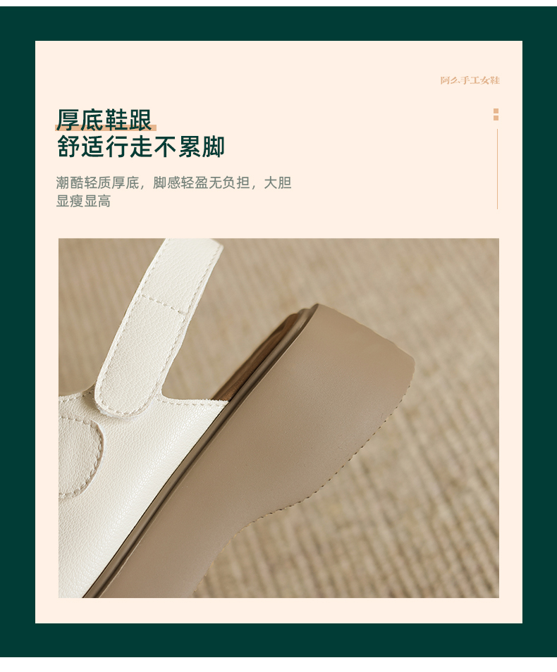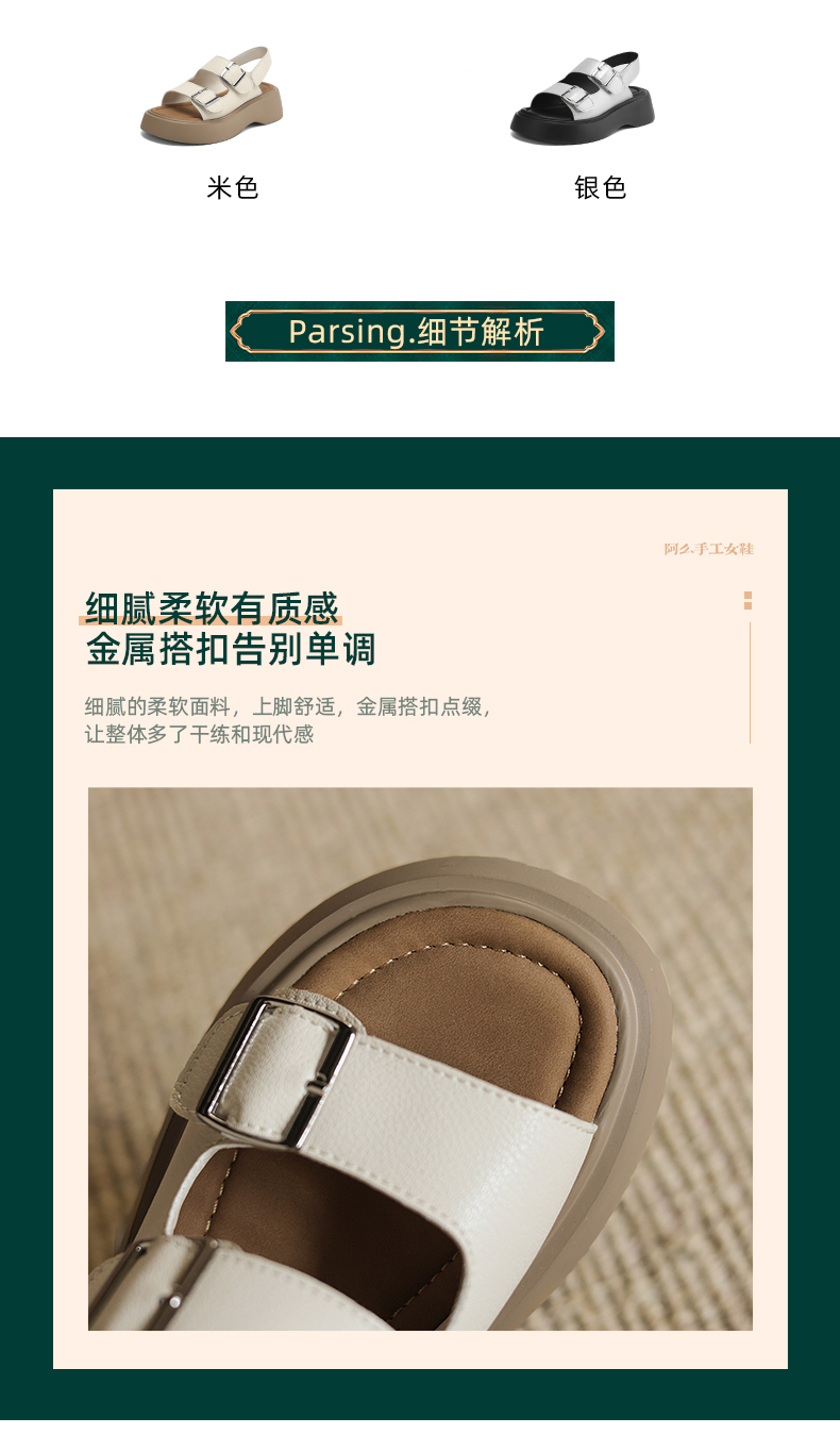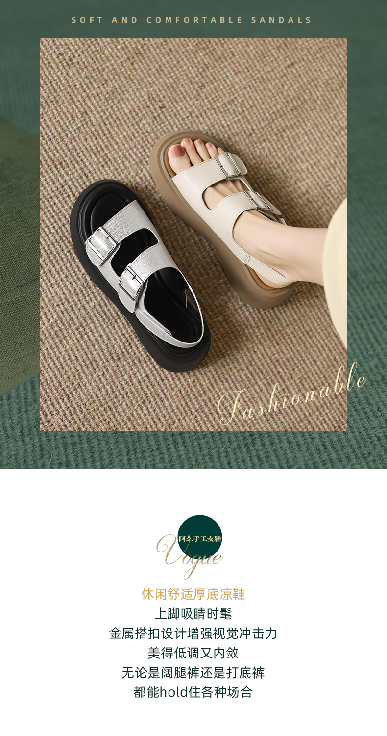 阿么手工女鞋厚底2025新款一字带露趾罗马凉鞋女夏季外穿勃肯5CM
