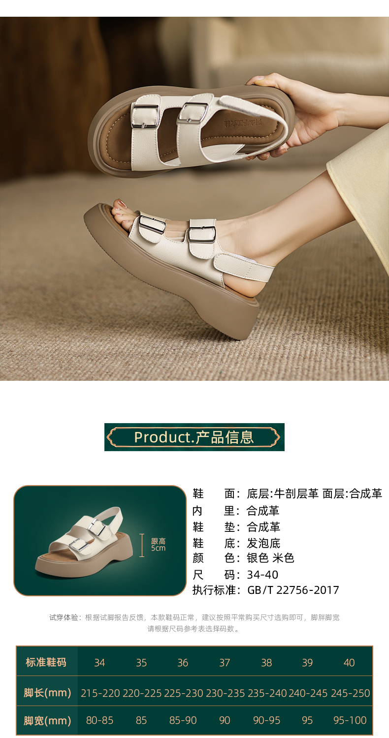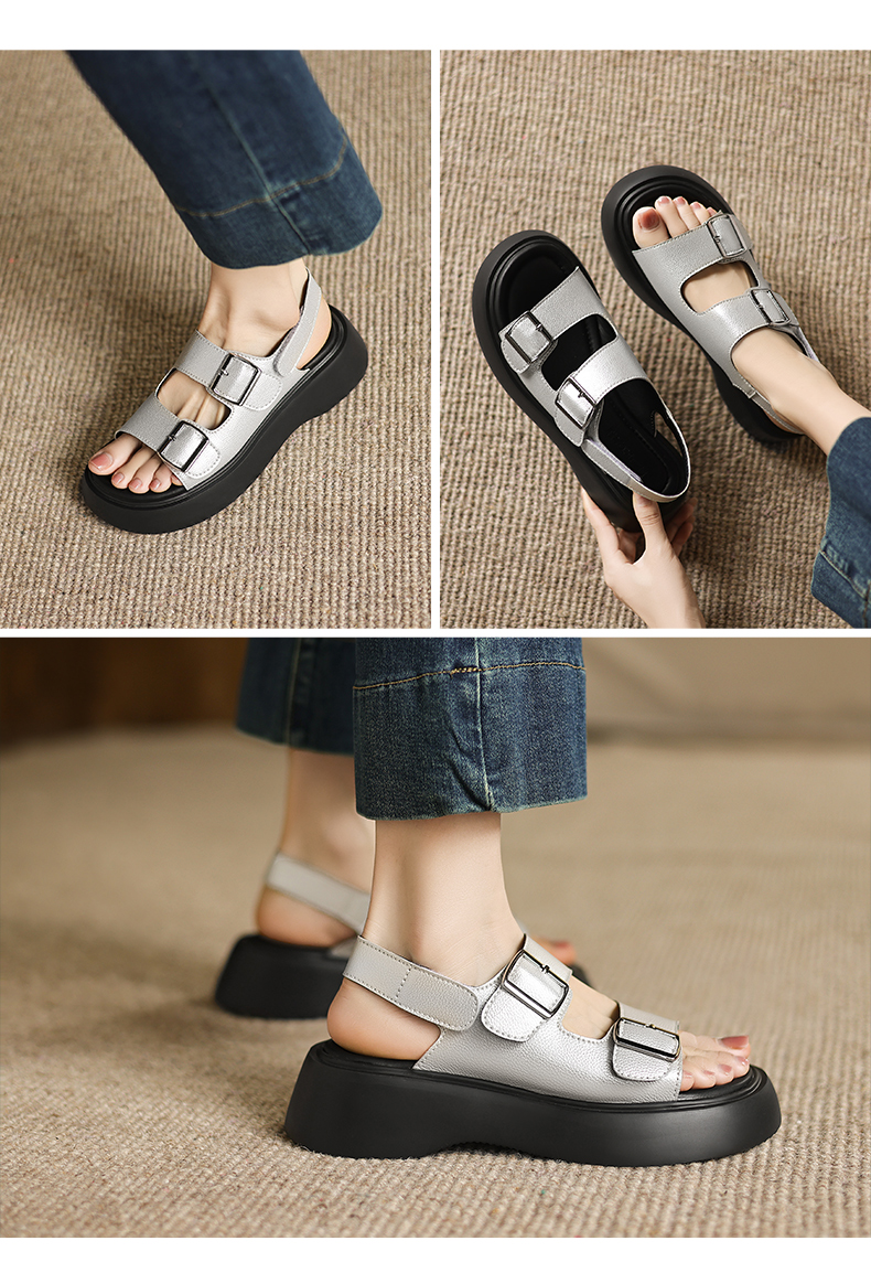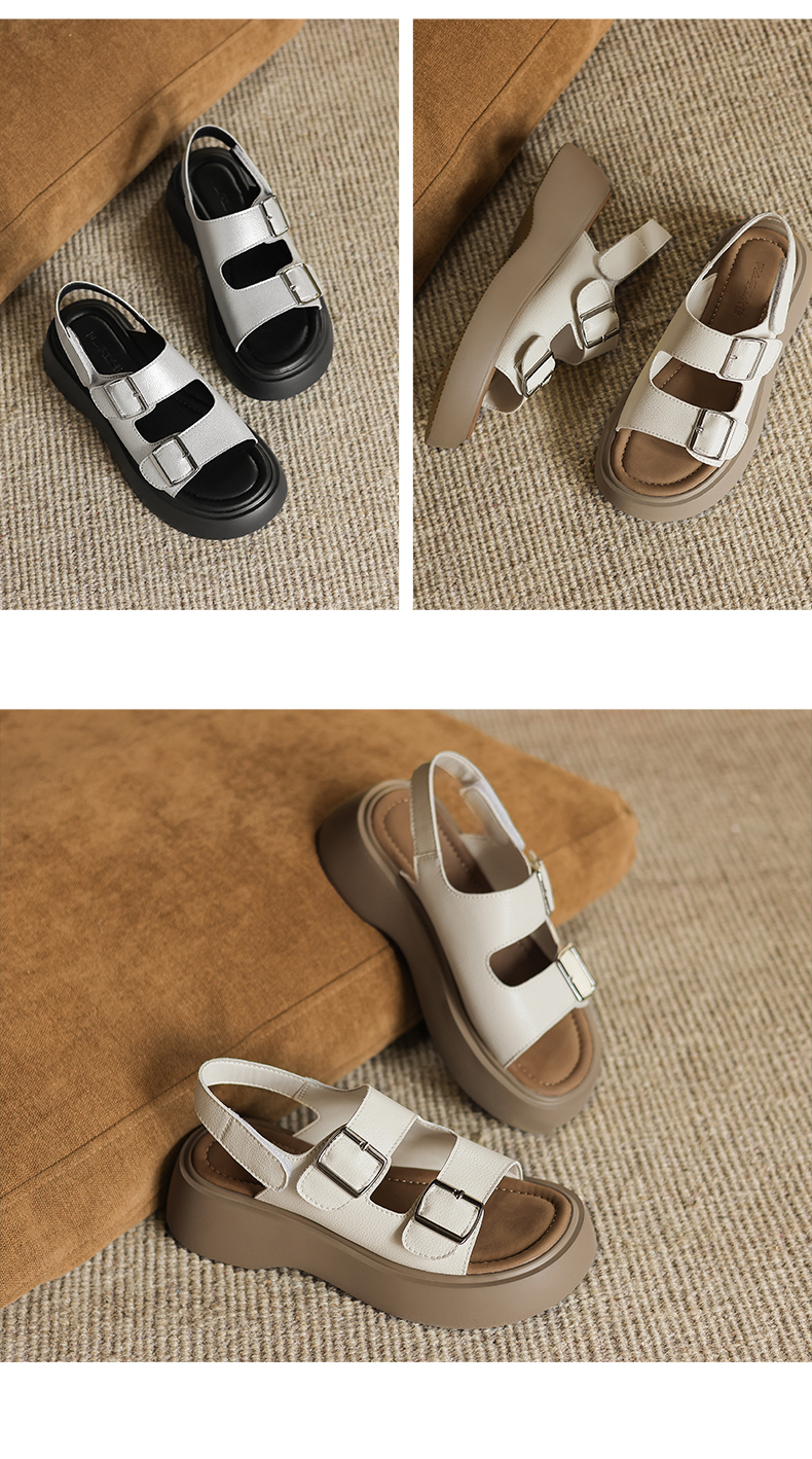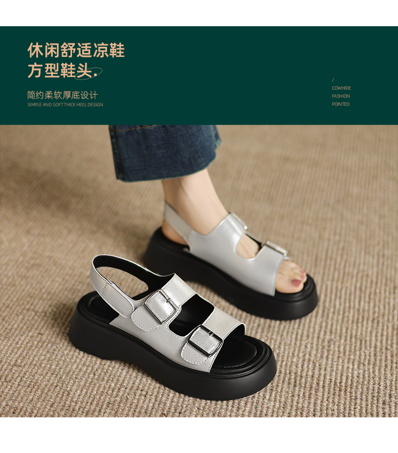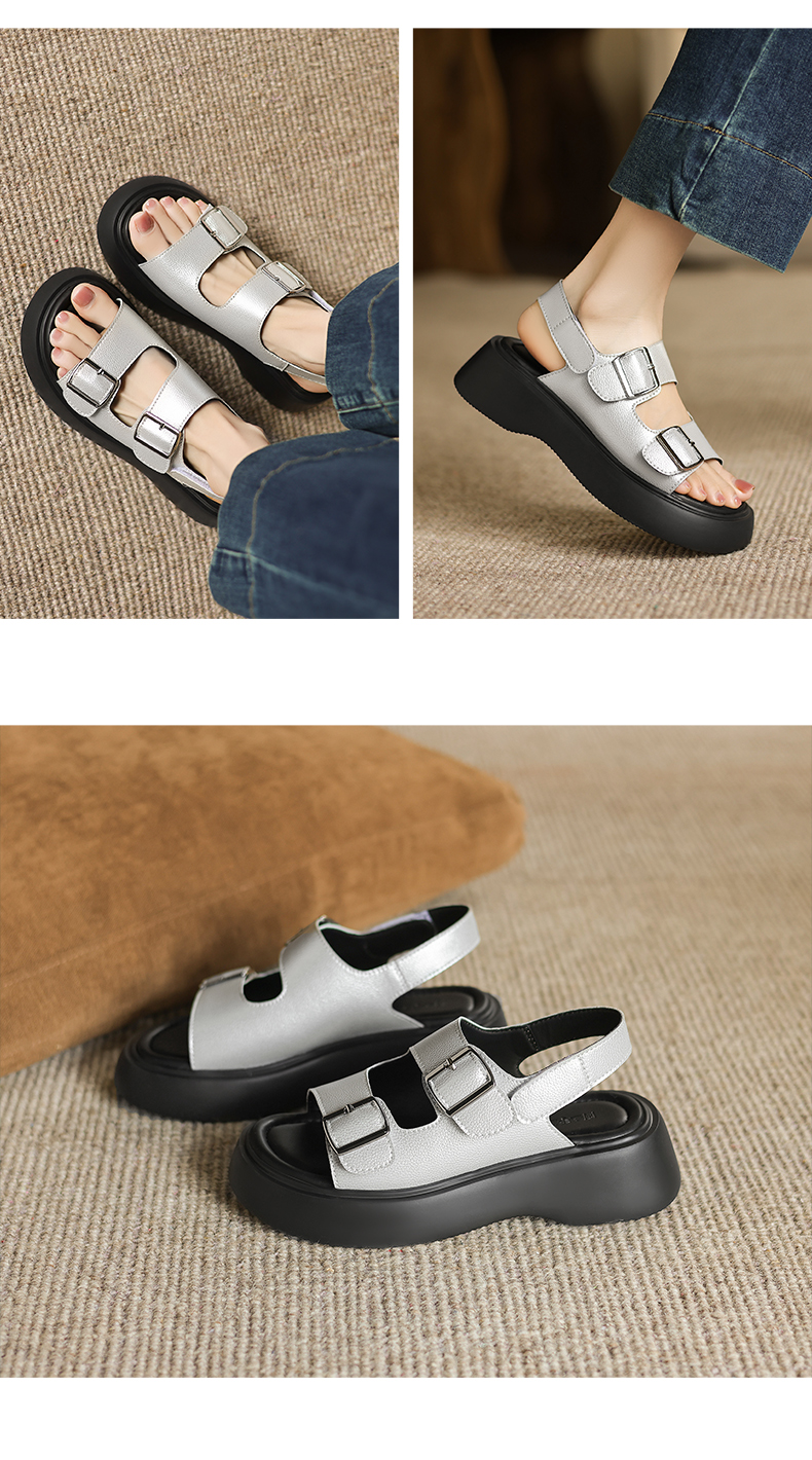 阿么手工女鞋厚底2025新款一字带露趾罗马凉鞋女夏季外穿勃肯5CM