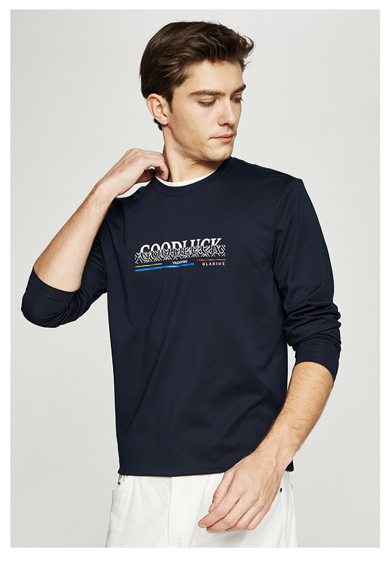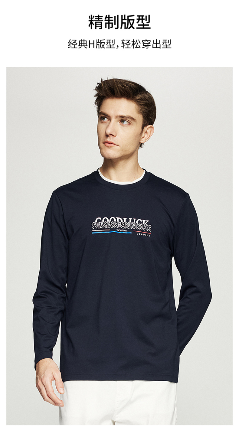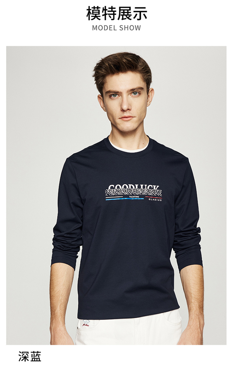 德鲨2026春新款长袖圆领T恤男青年时尚休闲上衣男装打底衫