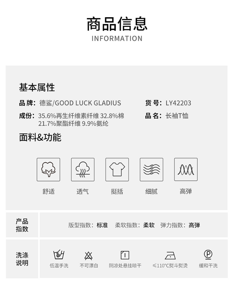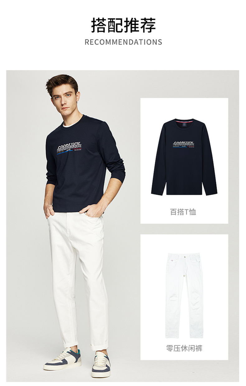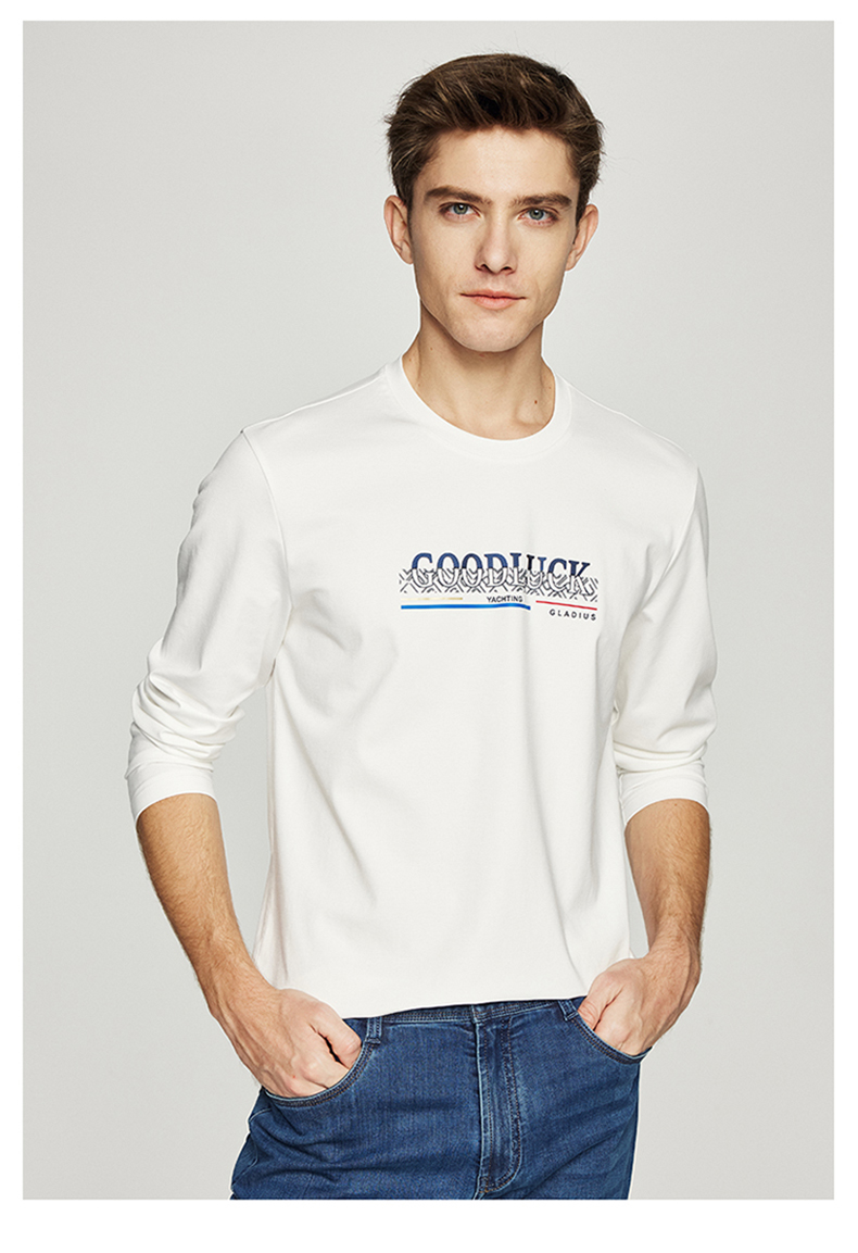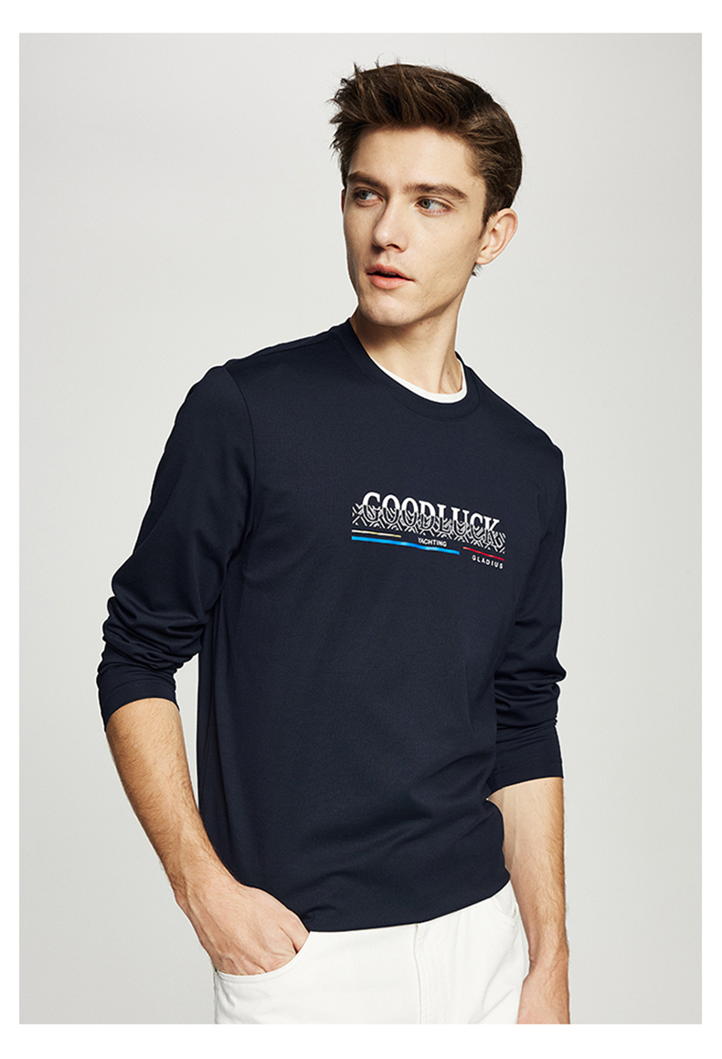 德鲨2026春新款长袖圆领T恤男青年时尚休闲上衣男装打底衫