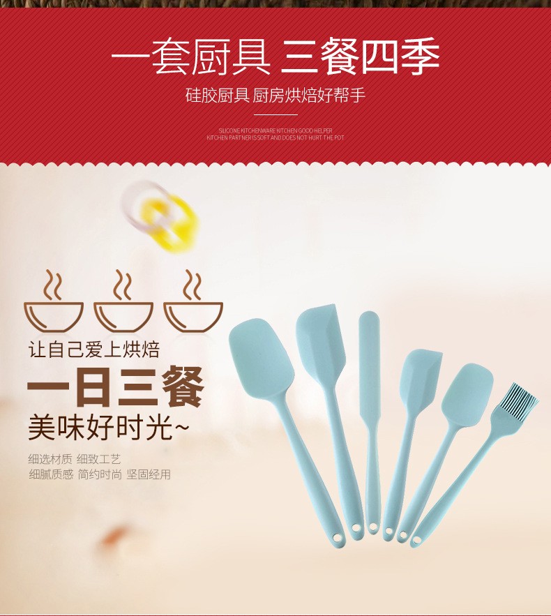 硅胶刮刀毛刷6件套 烘焙实用工具 油刷刮刀刮铲刮勺搅拌刀套装